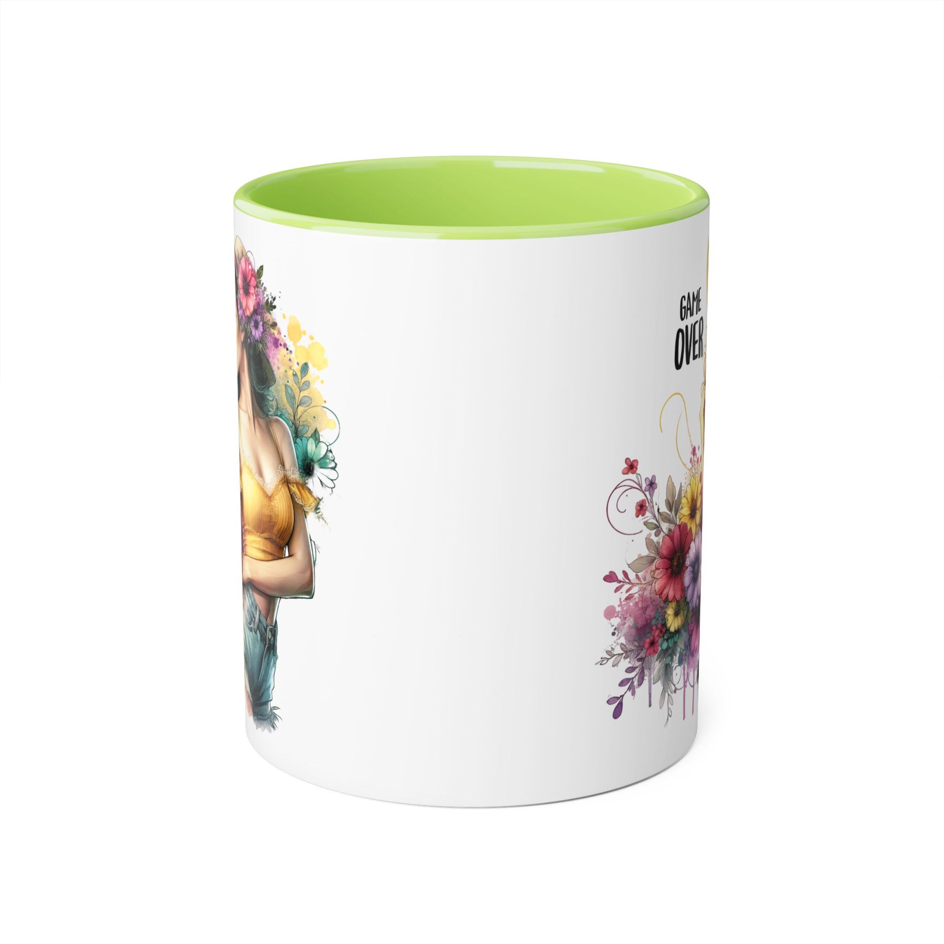Game Over Floral Accent Mug, Gift for Gamers, Coffee Tea Cup, Home Decor, Birthday, Celebration, Unique Mug