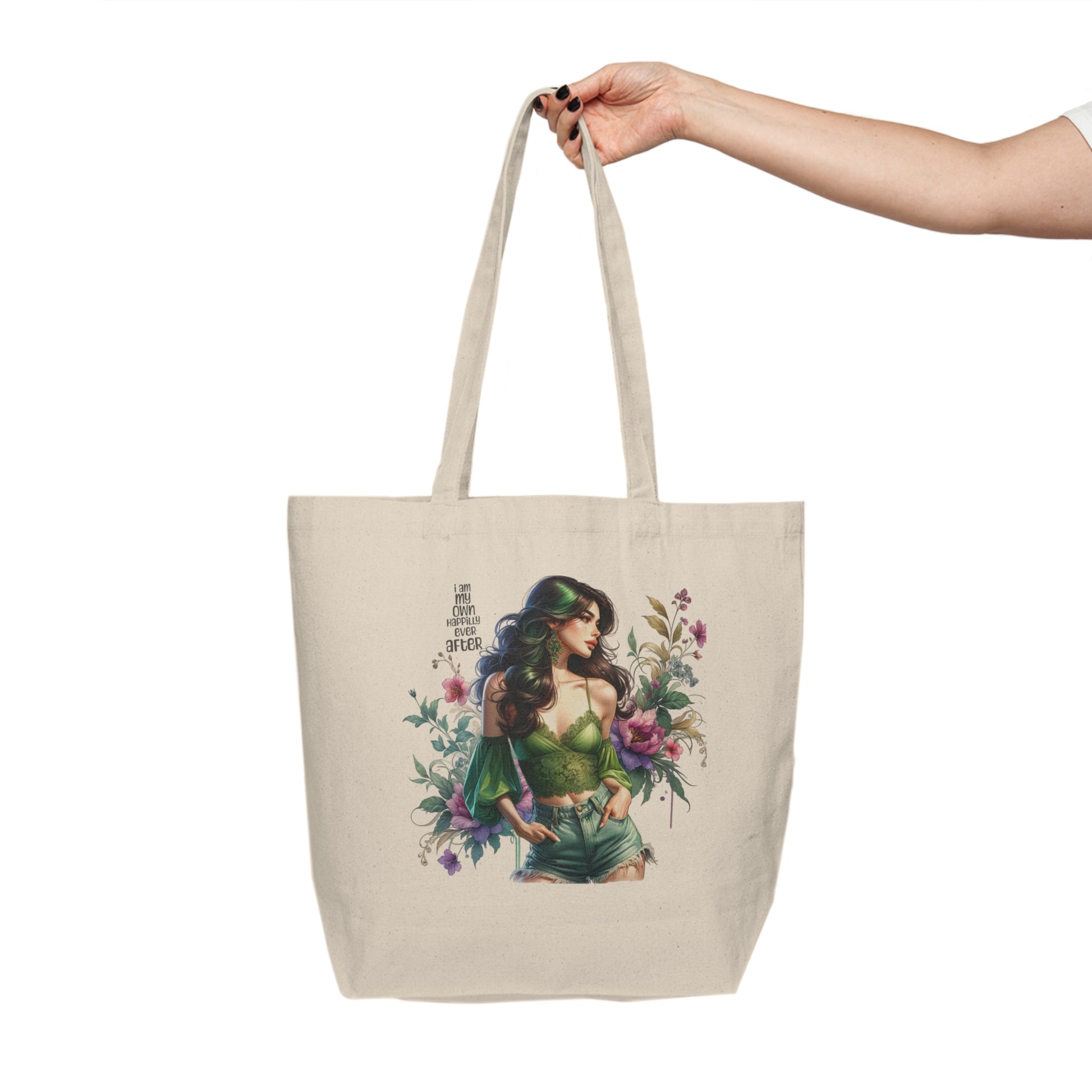 I Am My Own Happily Ever After Empowering Floral Tote Bag with Inspirational Quote, Canvas Shopping Bag, Reusable Grocery Tote, Eco-Friendly Gift for Women, Everyday Use