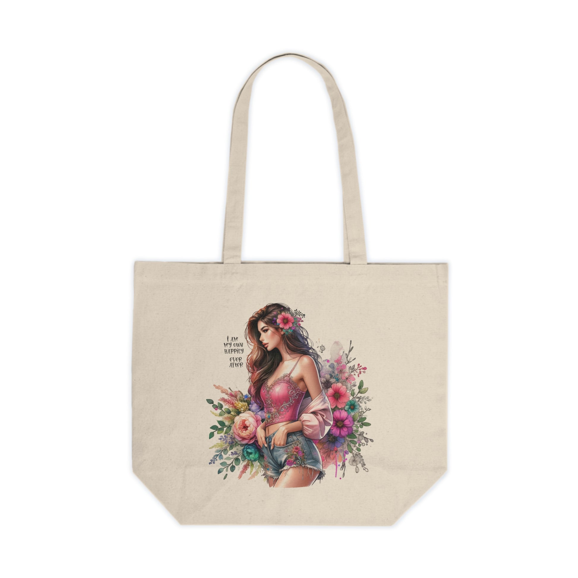 I Am My Own Happily Ever After Floral Chic Canvas Tote Bag, Eco-Friendly Shopping Bag, Summer Beach Tote, Gift for Her, Boho Style Bag