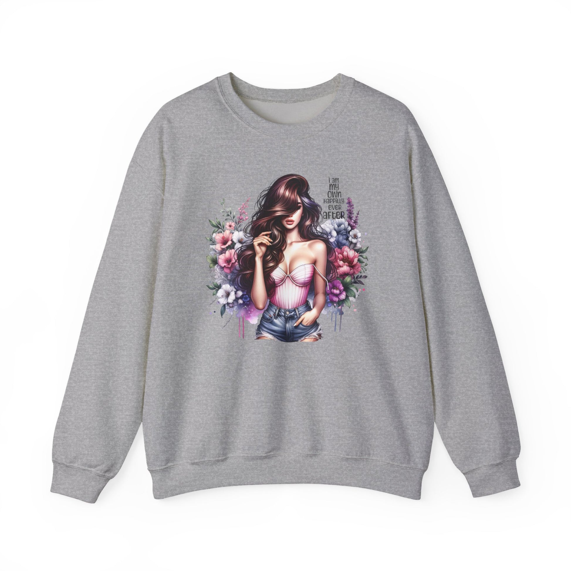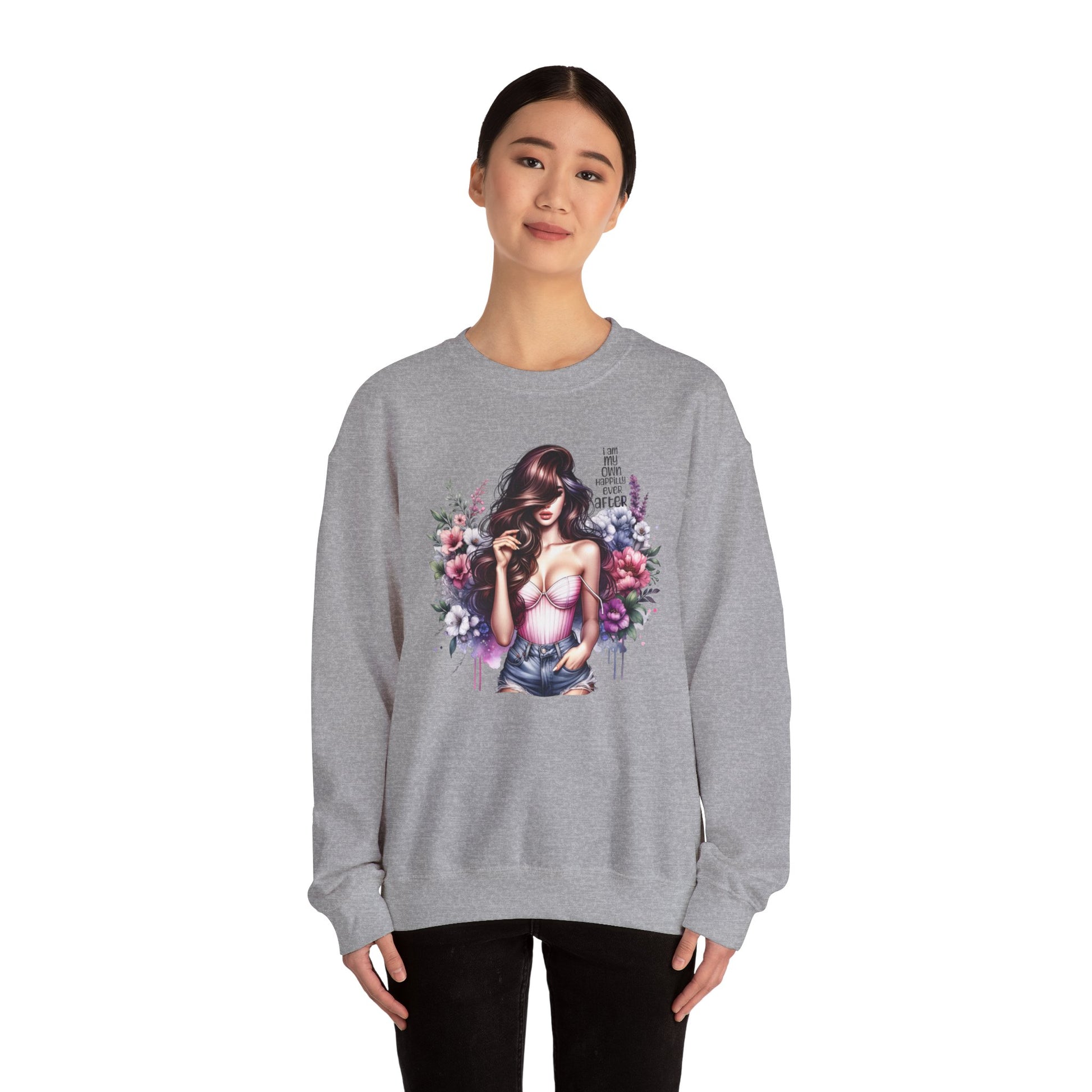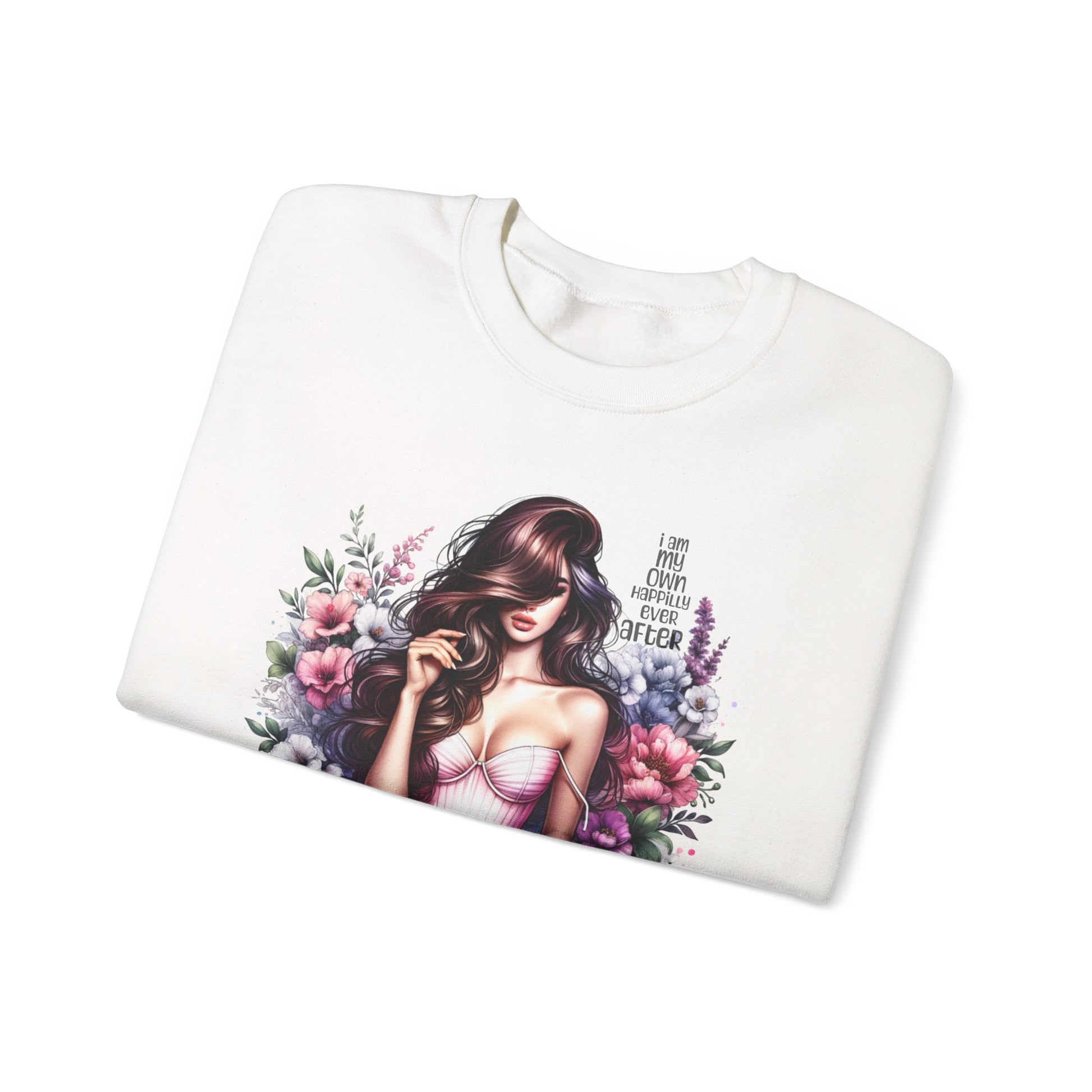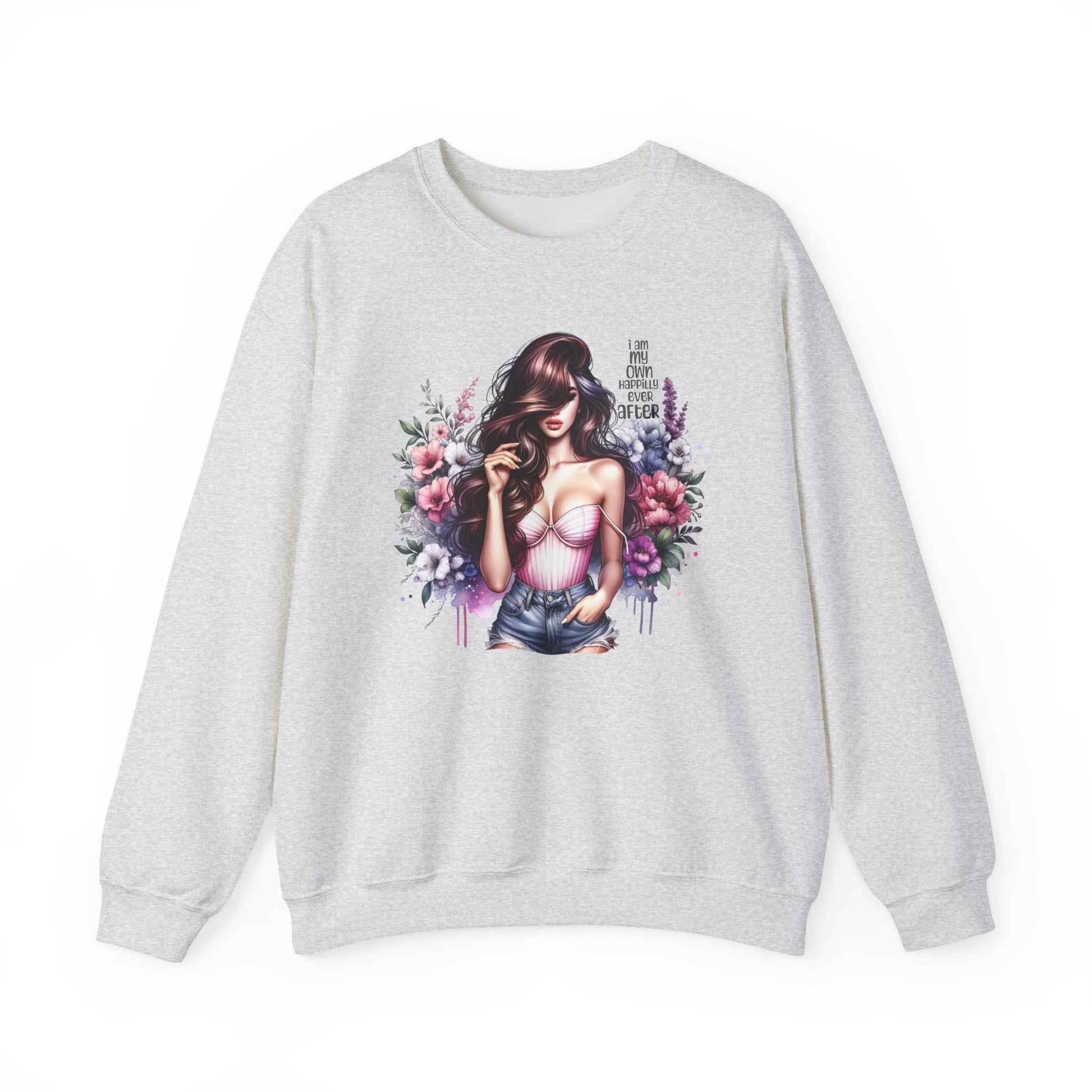 I Am My Own Happily Ever After Floral Goddess Crewneck Sweatshirt, Cozy Women's Apparel, Boho Style, Gift for Her, Trendy Sweatshirt, Chic Layering Piece