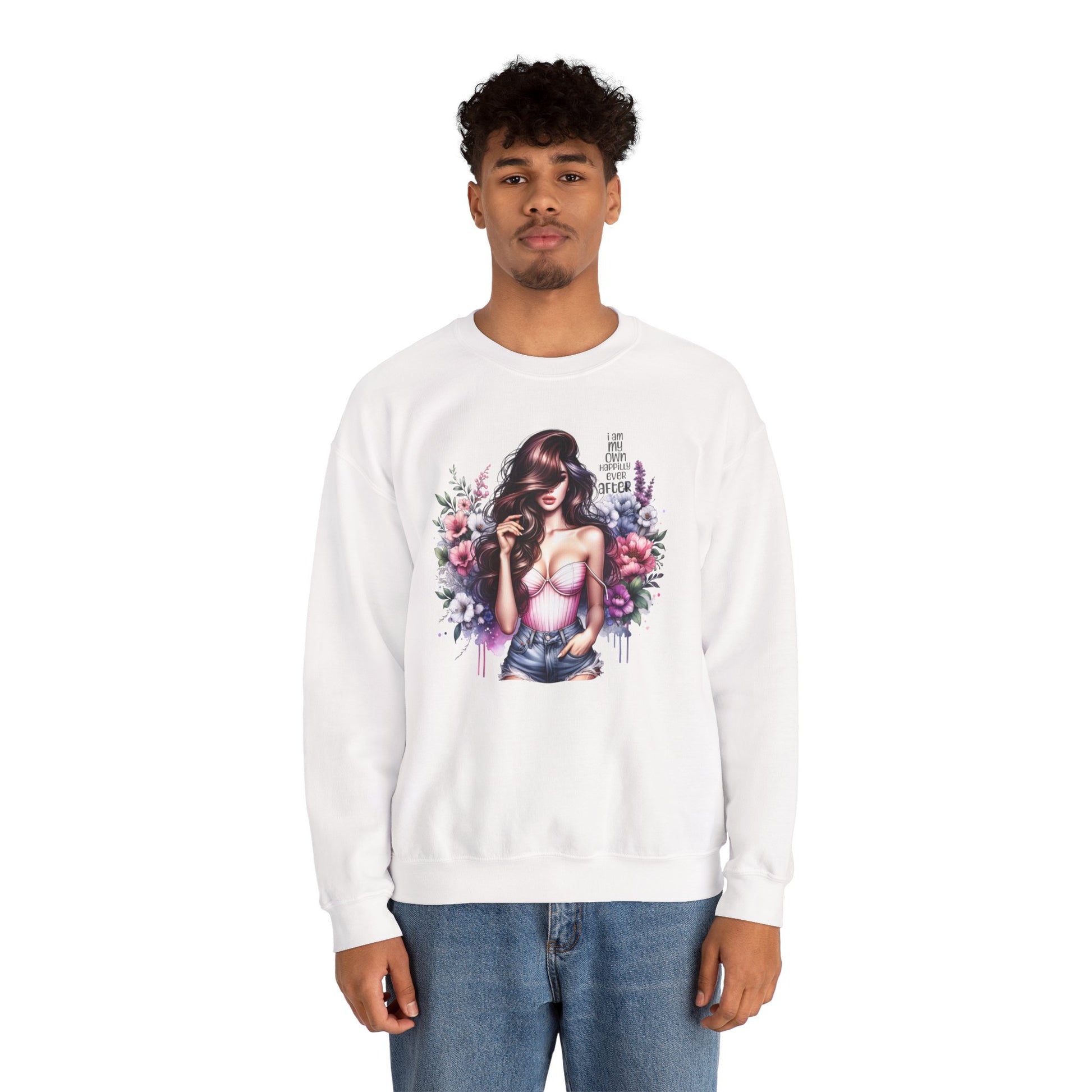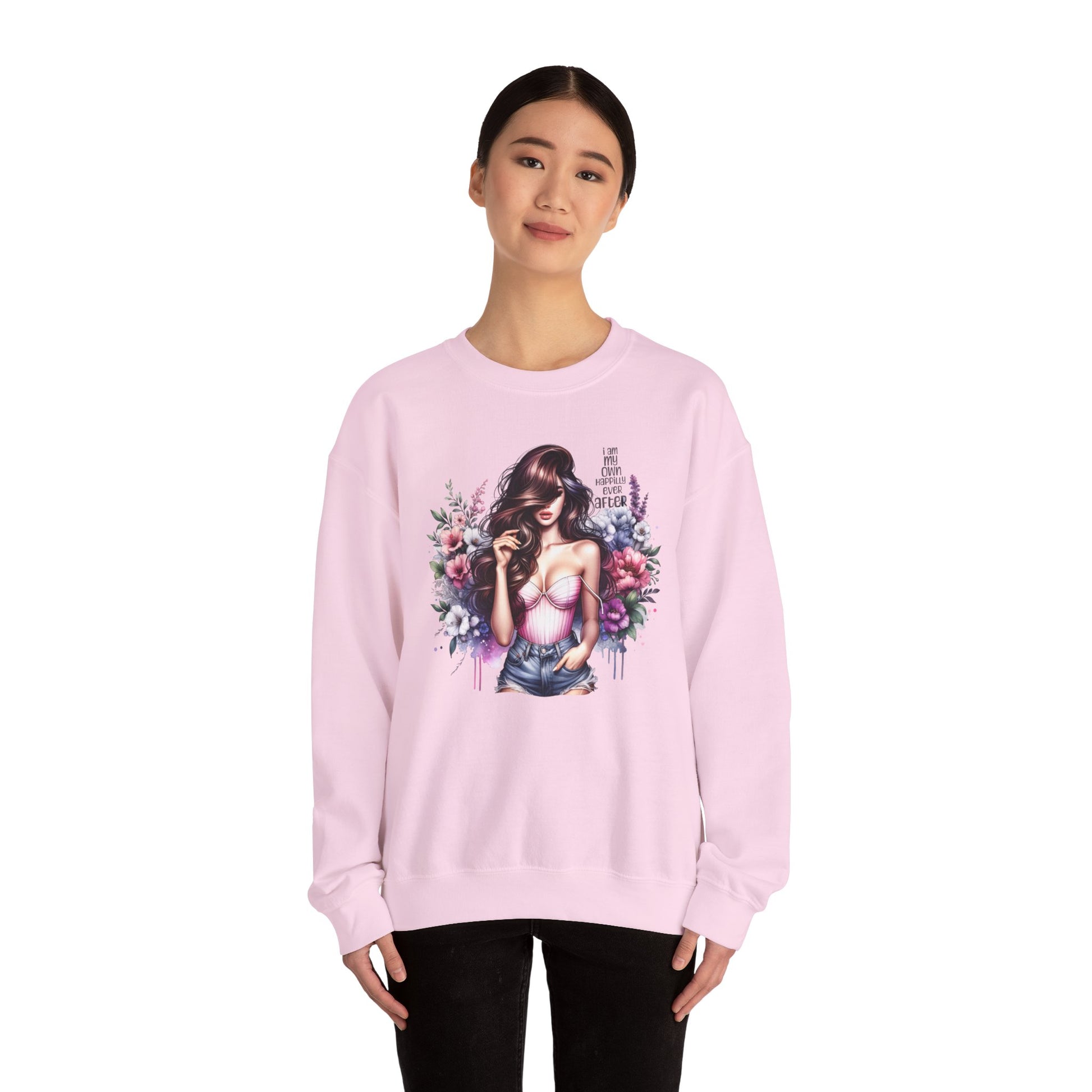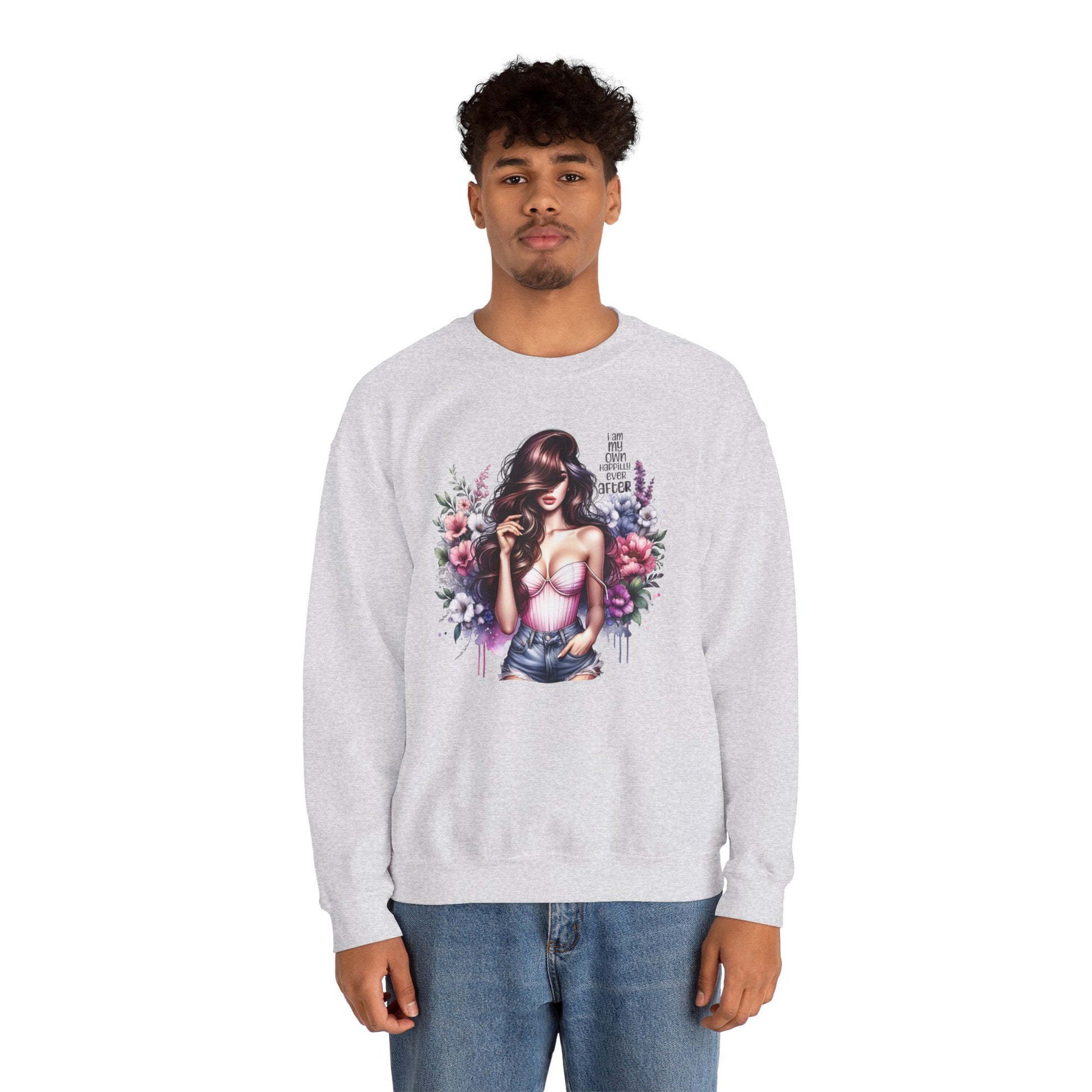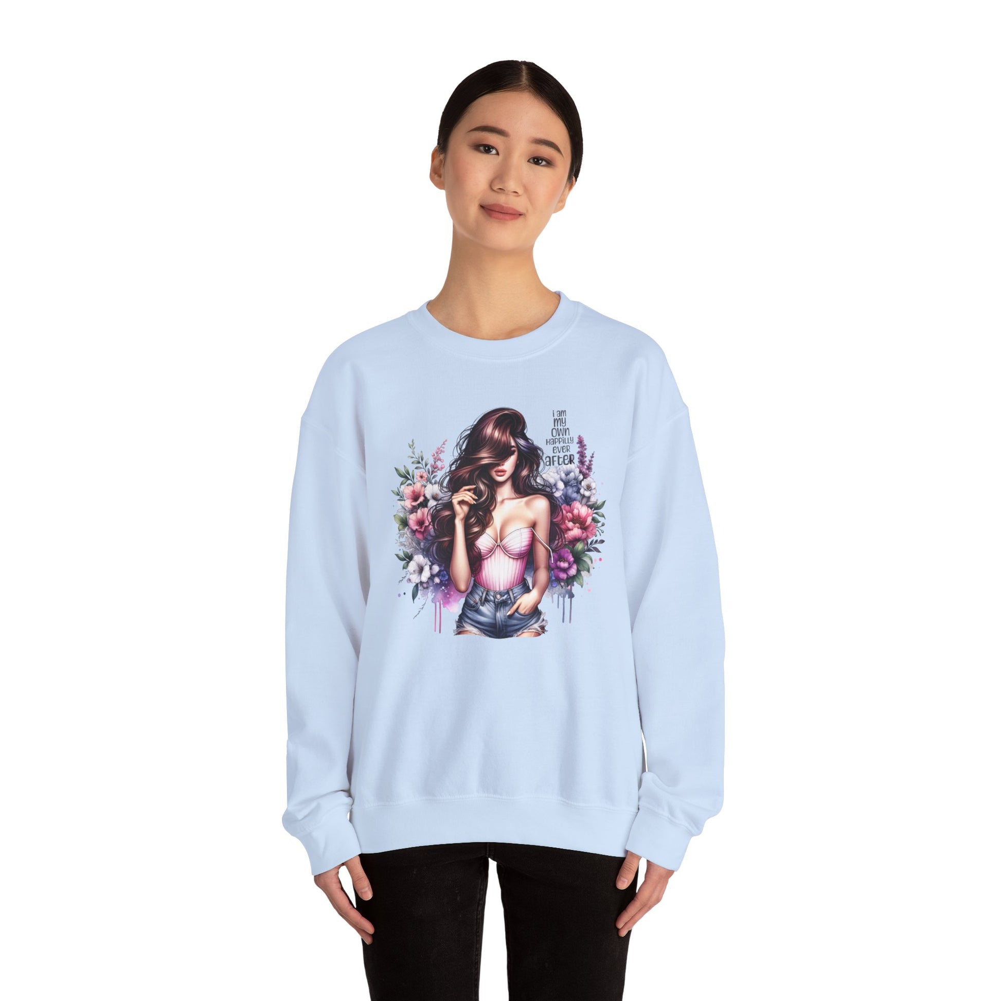 I Am My Own Happily Ever After Floral Goddess Crewneck Sweatshirt, Cozy Women's Apparel, Boho Style, Gift for Her, Trendy Sweatshirt, Chic Layering Piece