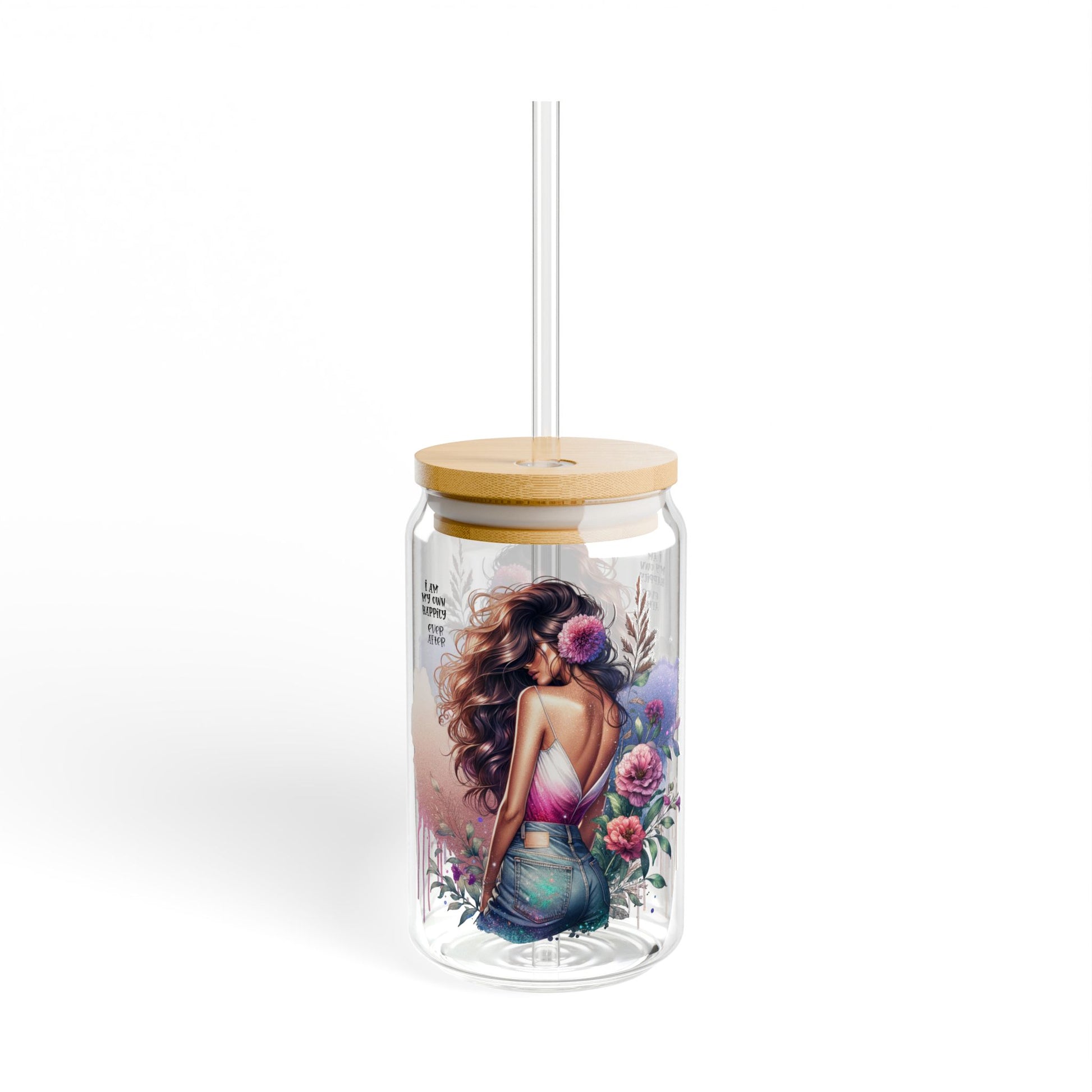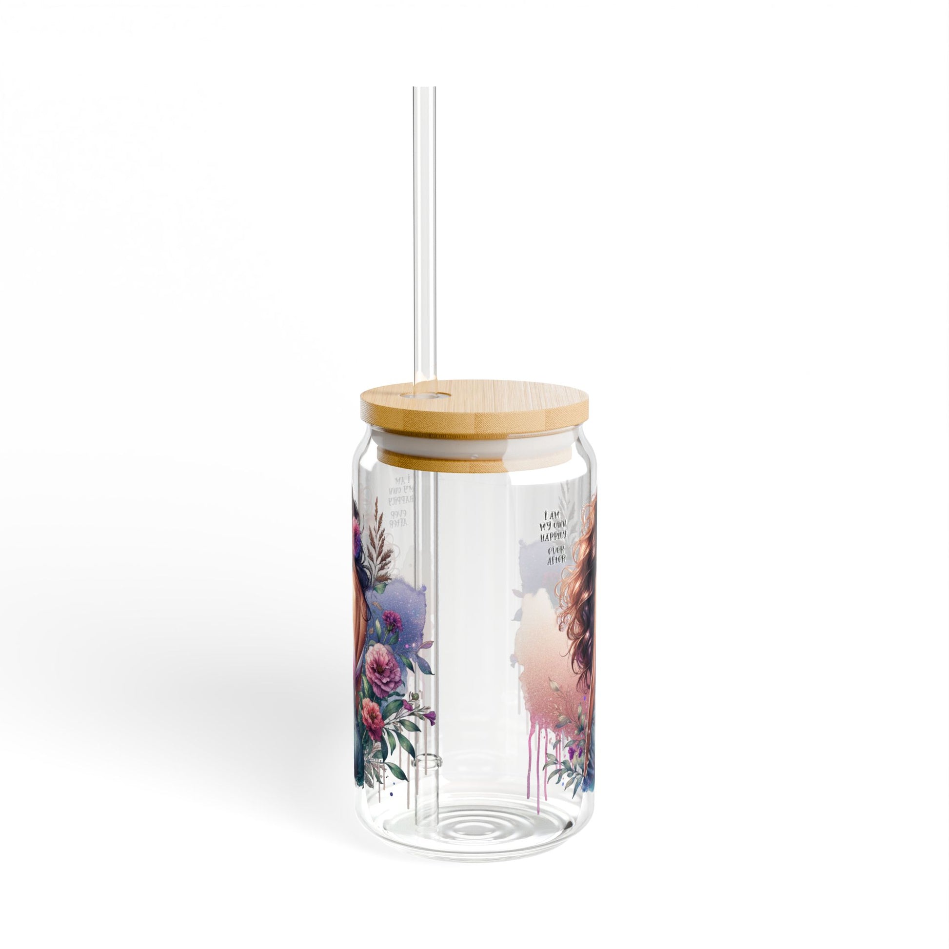 I Am My Own Happily Ever After Floral Sipper Glass, Perfect for Summer Sips, Gifts for Her, Eco-Friendly Drinkware, Boho Home Decor, Unique Water Bottle