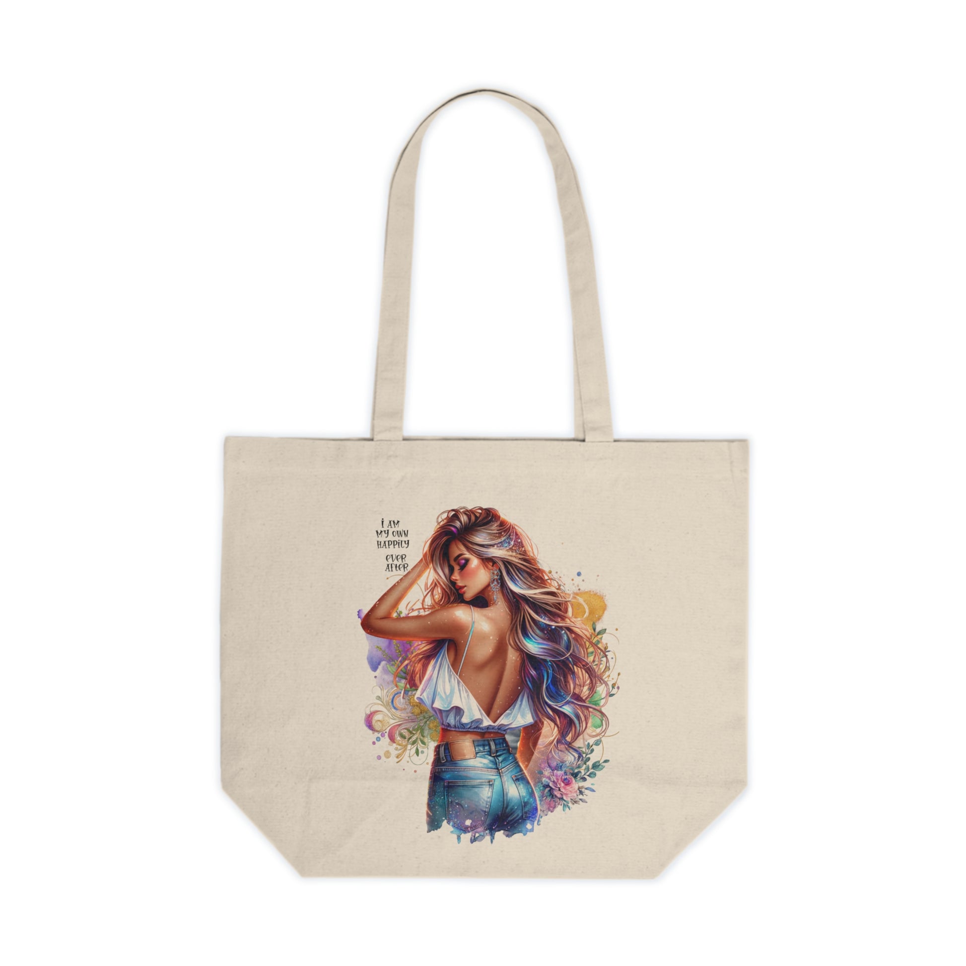 I Am My Own Happily Ever After Stylish Canvas Shopping Tote with Inspirational Quote | Eco-Friendly Fashion Bag, Reusable Grocery Bag, Summer Tote, Gift for Her