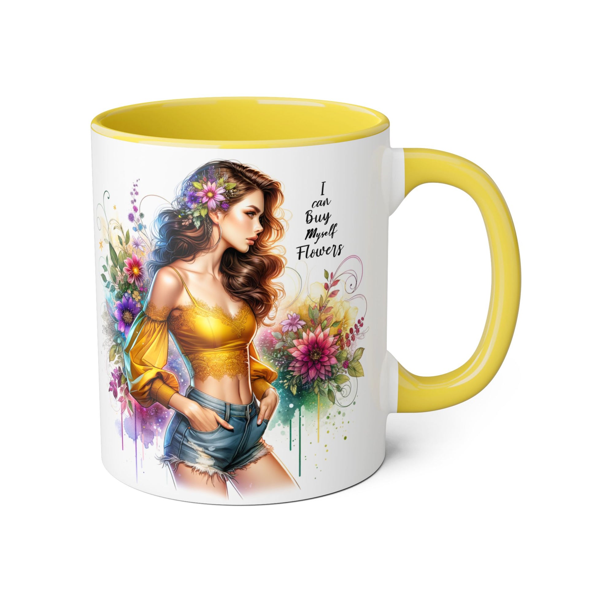 I Can Buy Myself Flowers Floral Art Accent Mug, Inspirational Coffee Cup, Unique Gift for Her, Flower Lover’s Mug, Home Decor Kitchenware