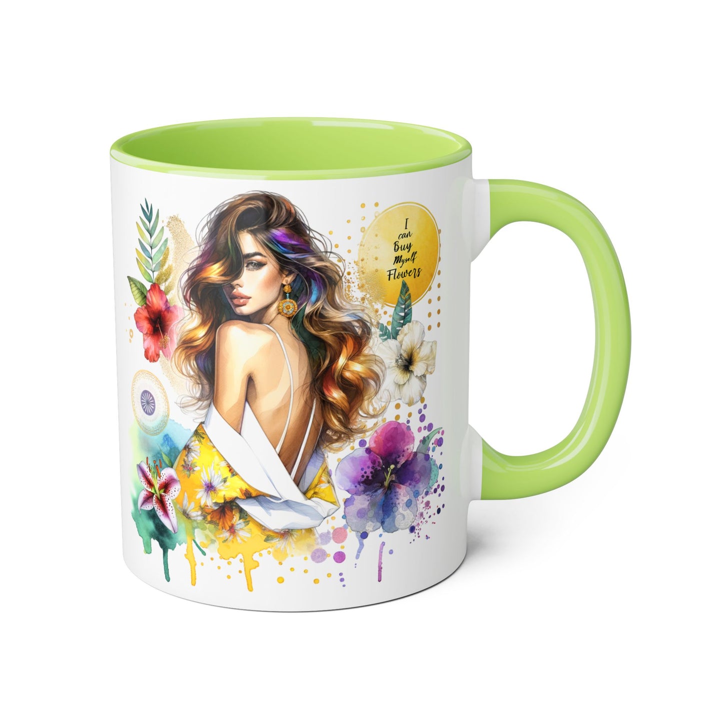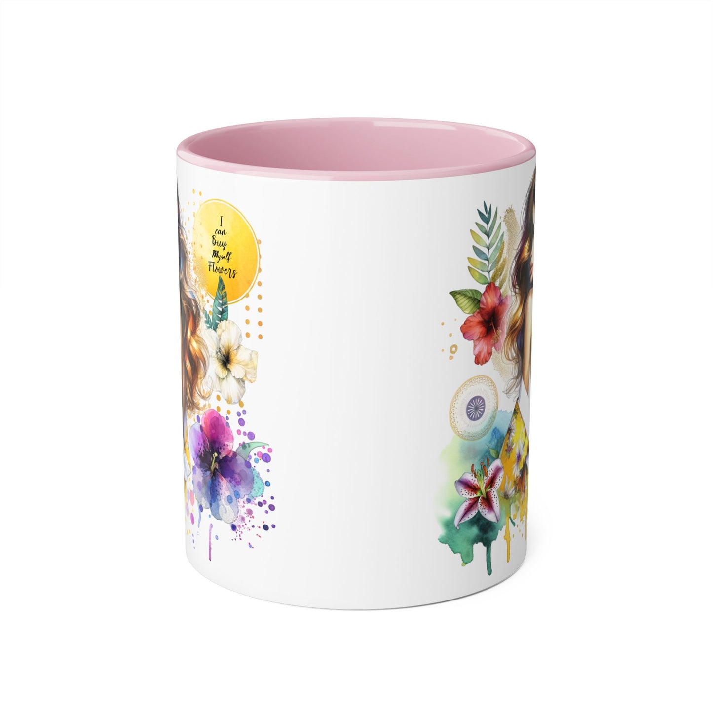 I Can Buy Myself Flowers Whimsical Floral Accent Mug, Inspirational Coffee Cup, Perfect Gift for Her, Unique Artwork for Home or Office, Women's Day Gift