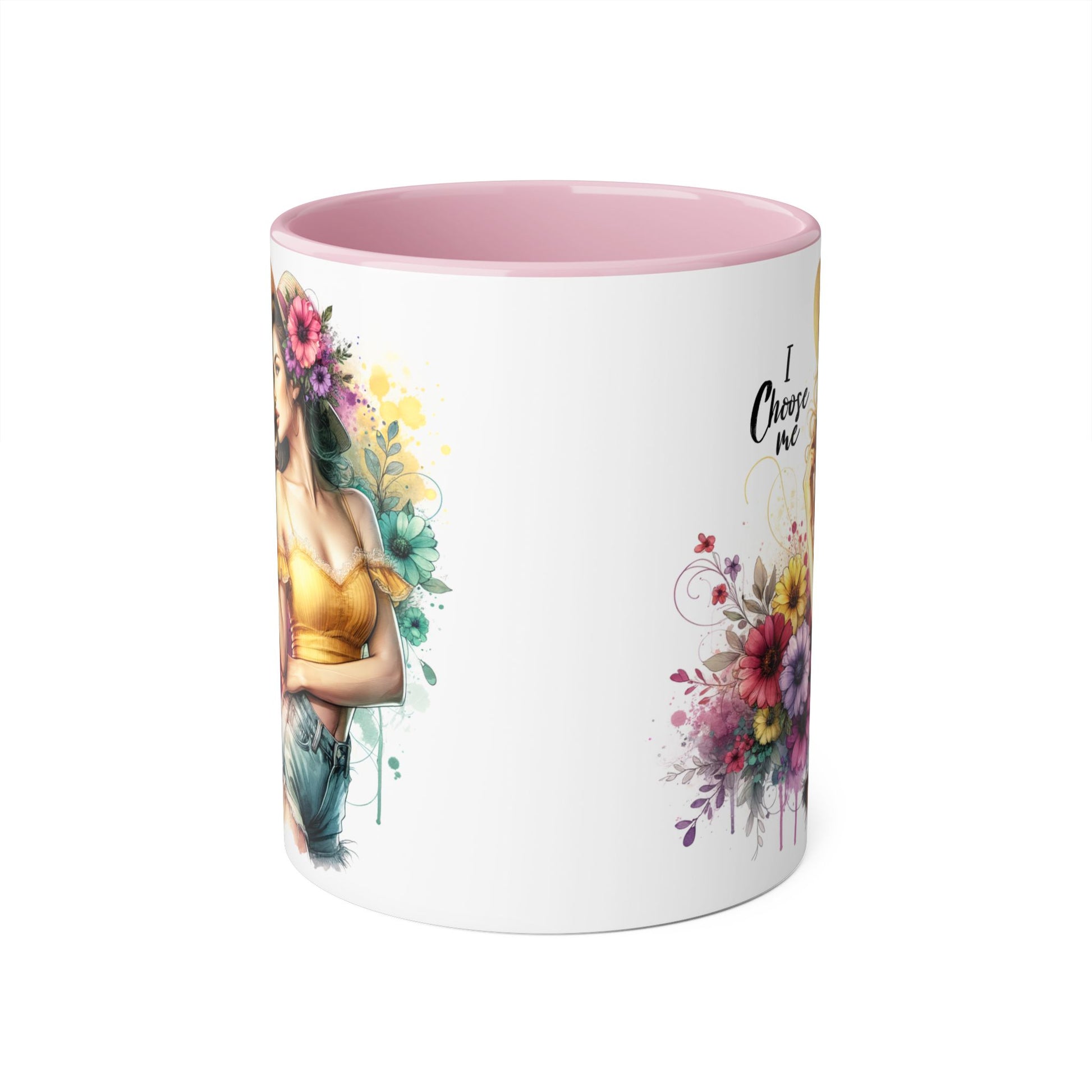 I Choose Me Chic Floral Accent Mug, Inspirational Gift for Her, Coffee Tea Lover, Birthday Present, Colorful Art Mug