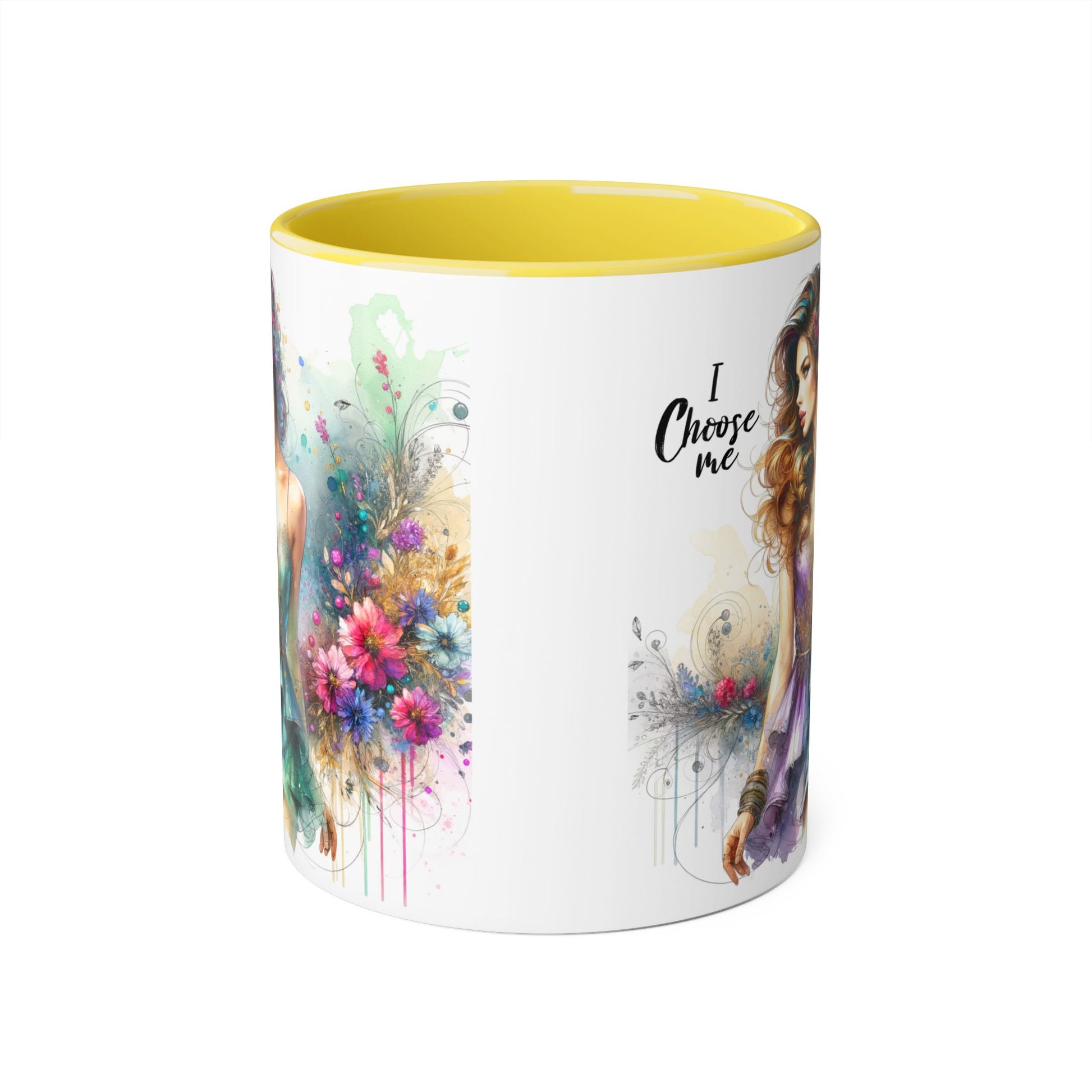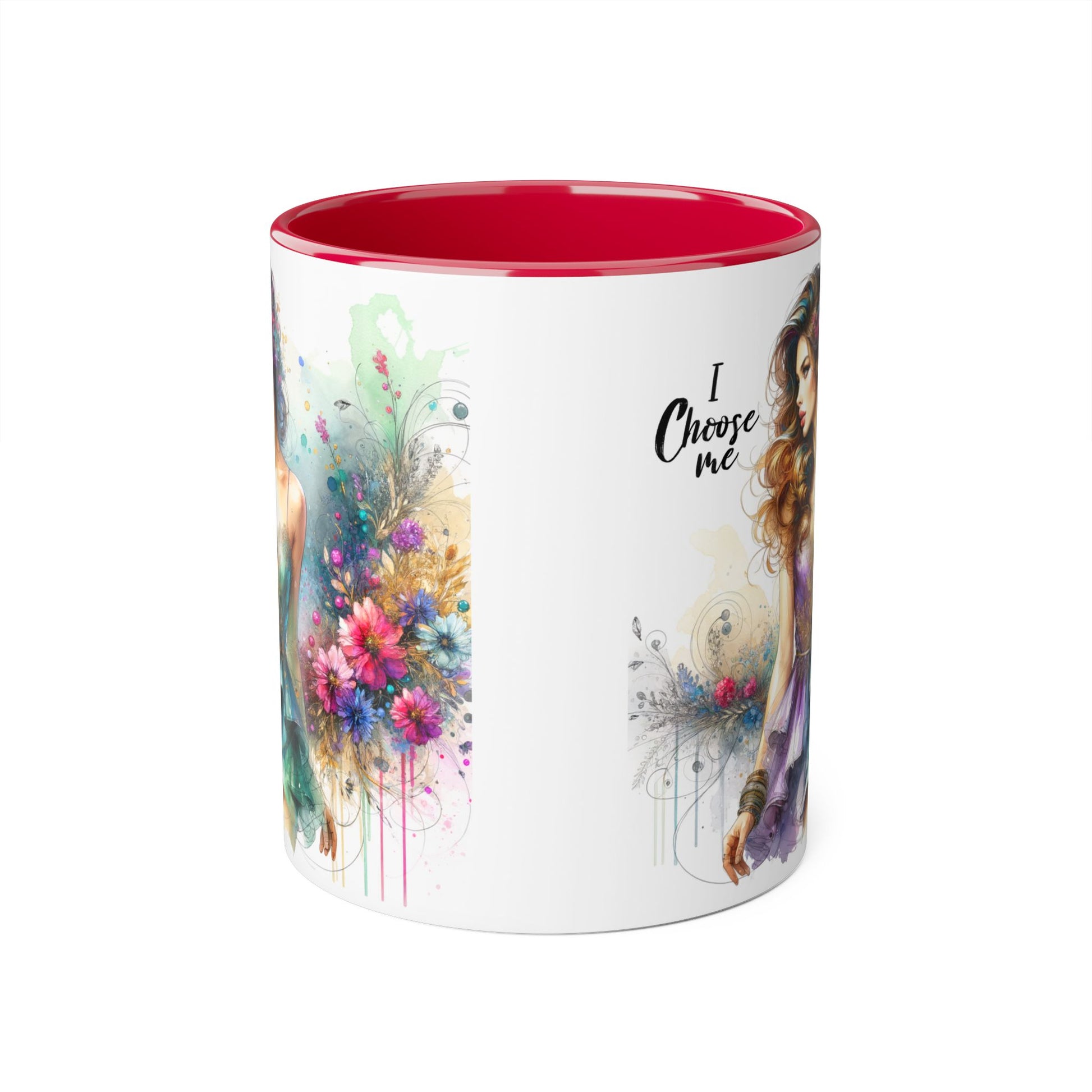 I Choose Me Empowerment Accent Mug - I Choose Me, Inspirational Coffee Cup, Self-Love Gift, Women’s Empowerment, Floral Décor, Motivational Drinkware