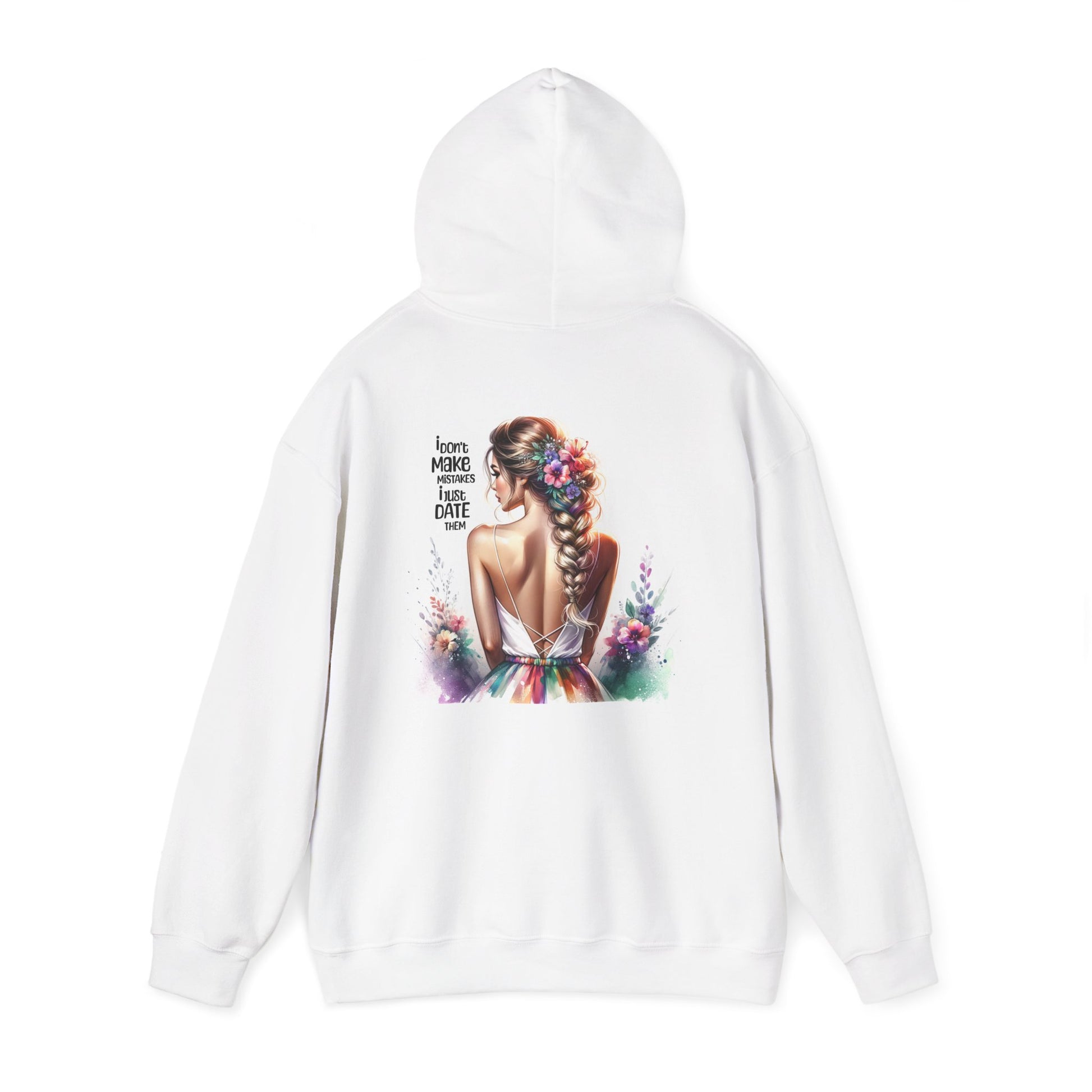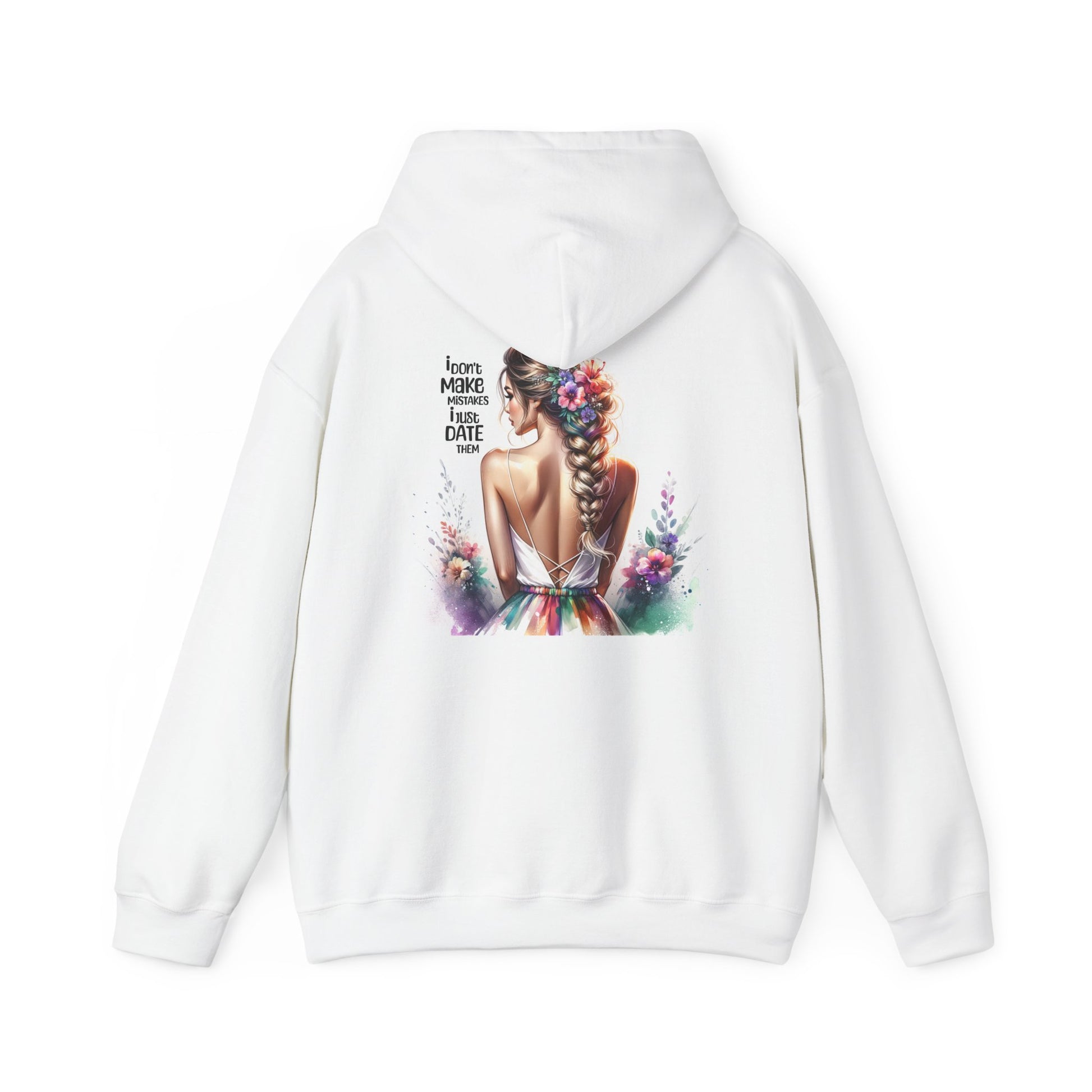 I Don`t Make Mistake, I Just Date Them Colorful Boho Sweatshirt - Girl Back Design, Cozy Gift for Spring, Art Lover's Hoodie, Perfect for Birthdays, Festivals, Casual Wear