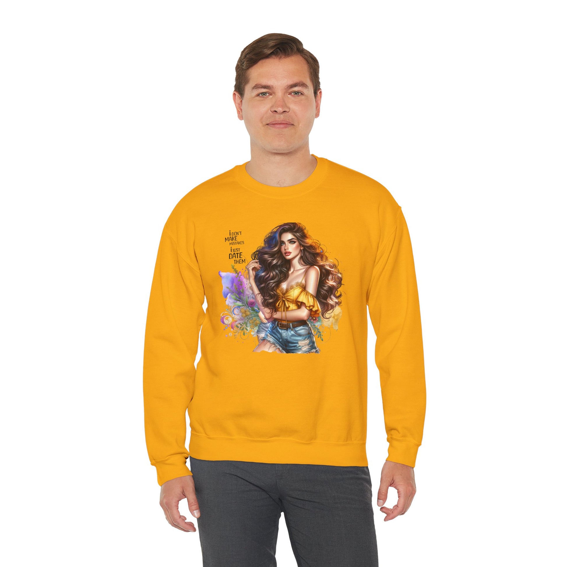 I Don`t Make Mistakes, I Just Date Them Artistic Crewneck Sweatshirt - Perfect for Casual Outings, Gifts, Festivities, and Everyday Comfort, Featuring Colorful Designs