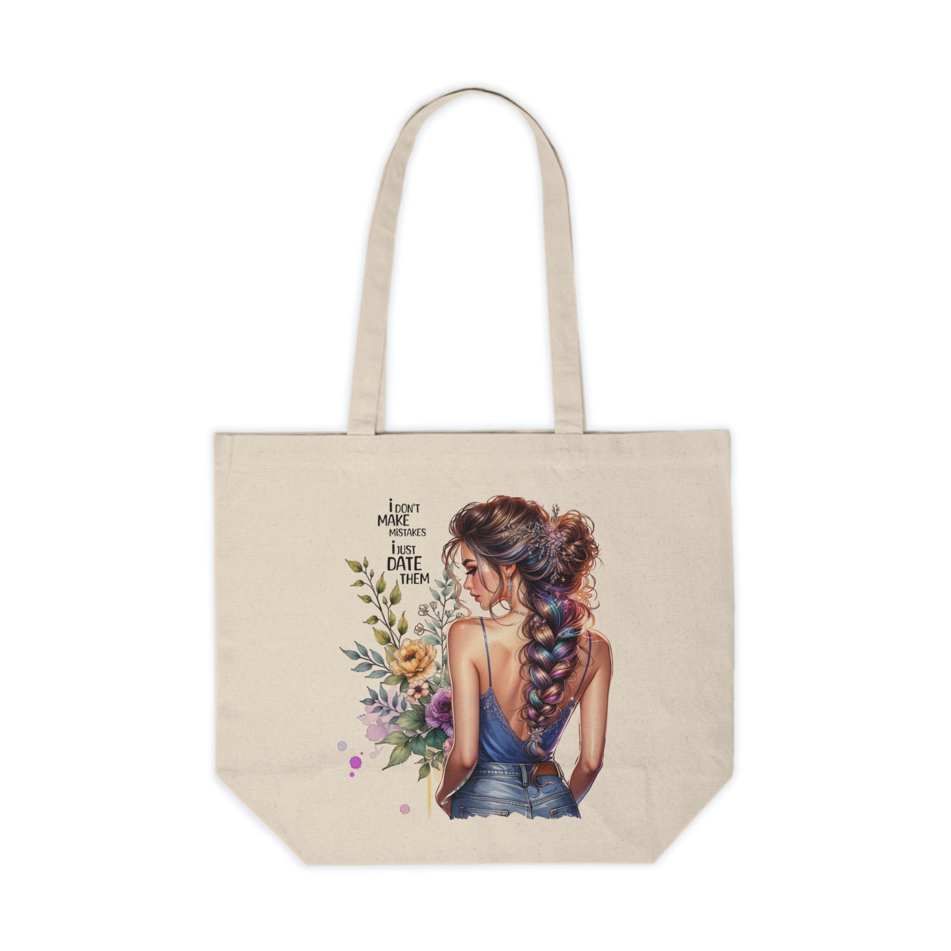 I Don`t Make Mistakes, I Just Date Them Beautiful Floral Canvas Shopping Tote, Stylish Grocery Bag, Eco-Friendly Tote, Gift for Her, Nature Lover Bag, Everyday Use