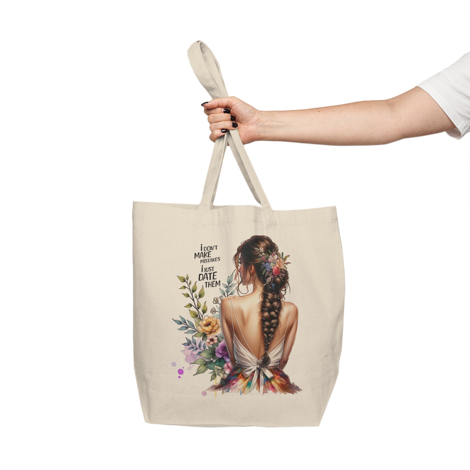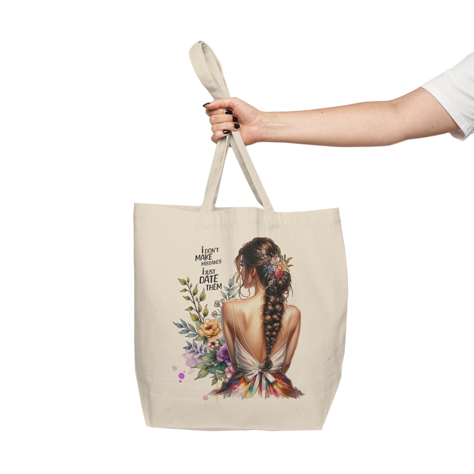 I Don`t Make Mistakes, I Just Date Them Bohemian Floral Canvas Tote Bag, Eco-friendly Shopping Bag, Gift for Her, Beach or Grocery Tote, Unique Art Tote