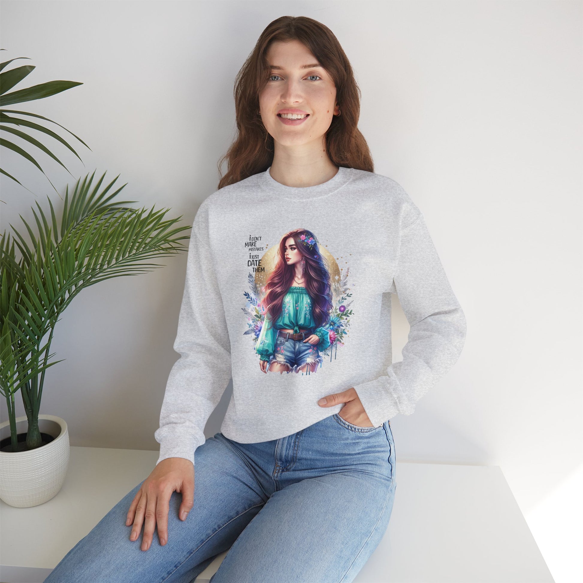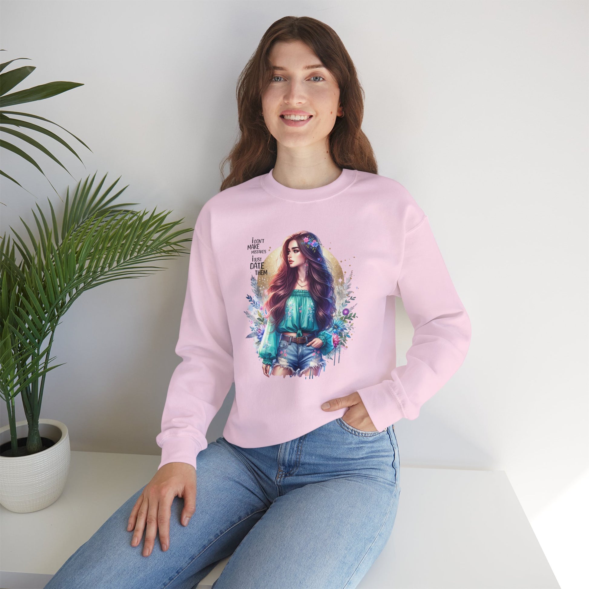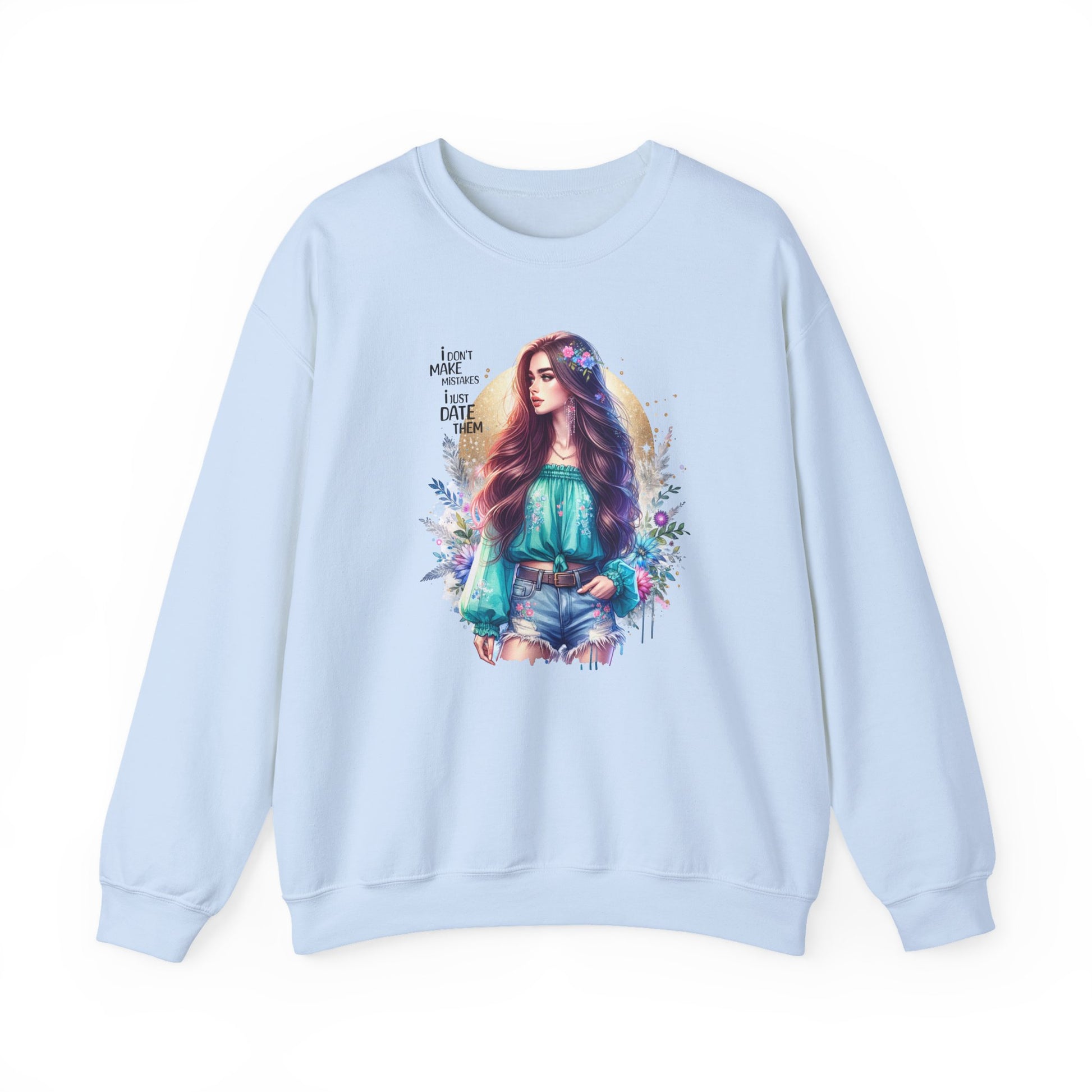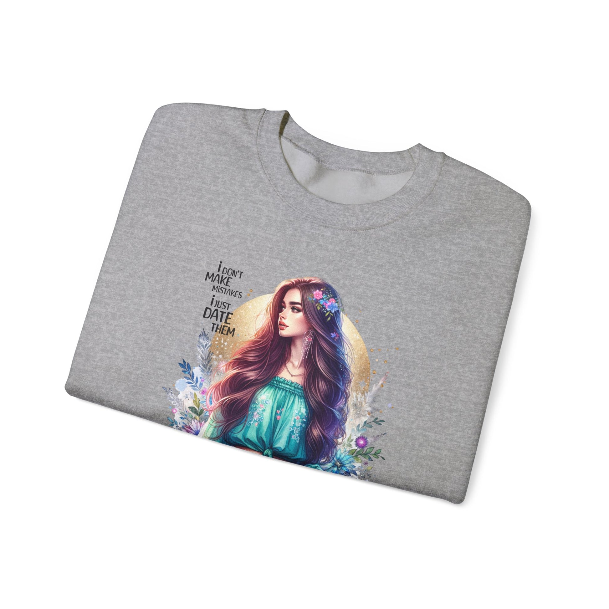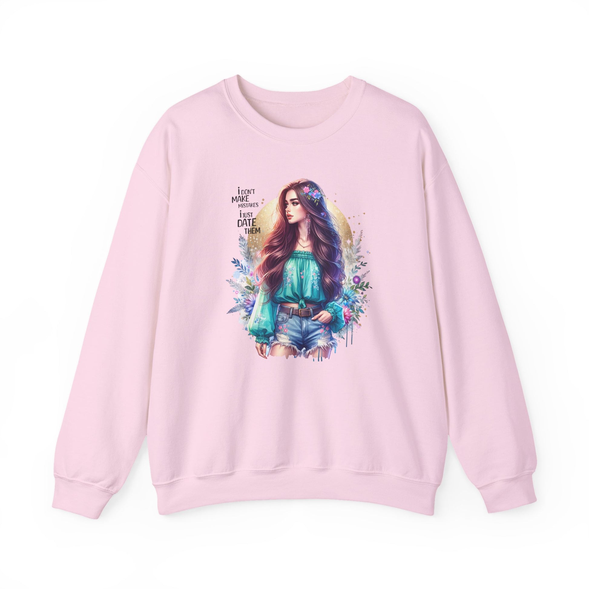 I Don`t Make Mistakes, I Just Date Them Colorful Bohemian Crewneck Sweatshirt, Cozy Apparel, Unique Gift, Casual Wear, Inspirational Fashion, Artist Design