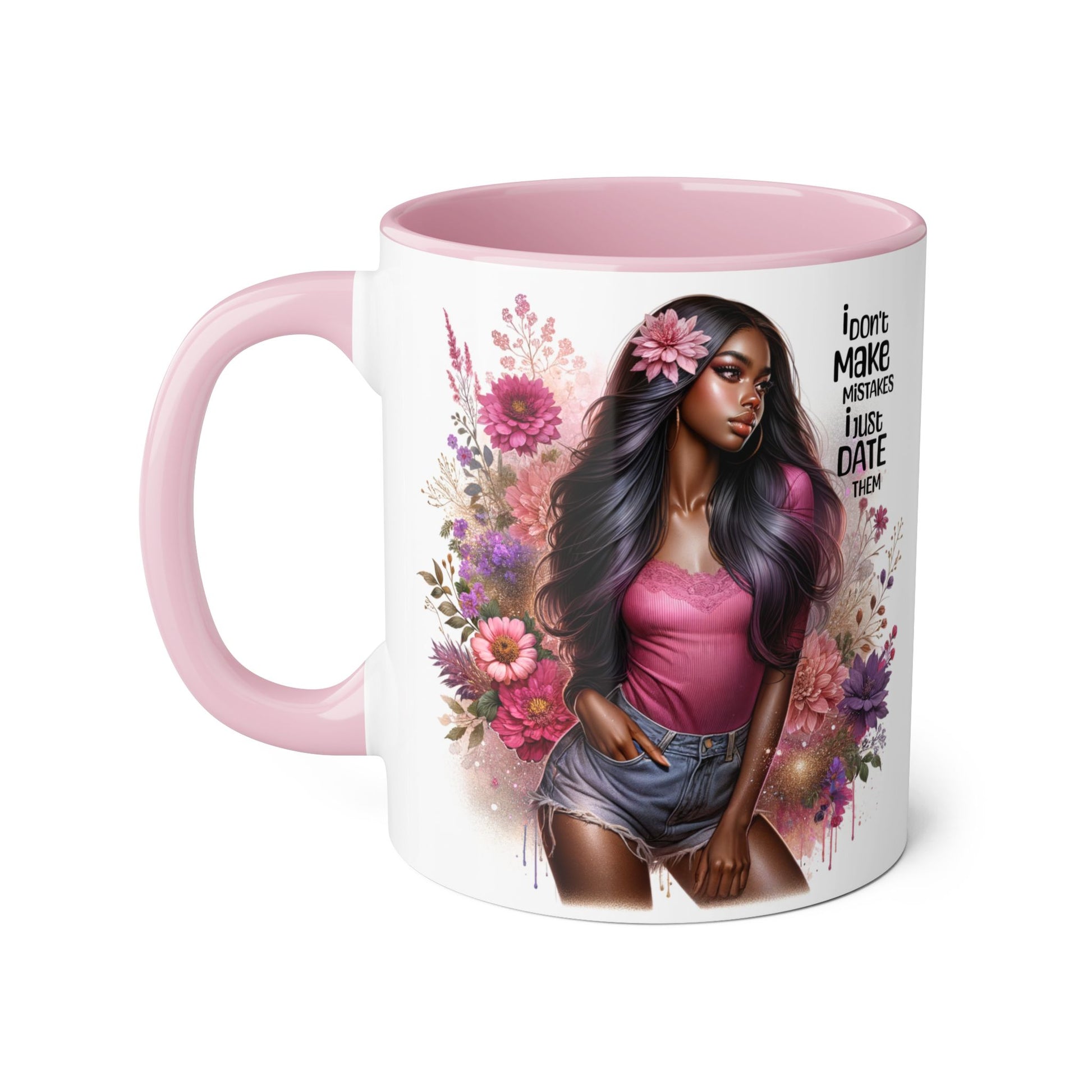 This mug with the fun quote 'I Don't Make Mistakes, I Date Them' is perfect for the coffee or tea lover with a sense of humor. It's a great addition to your morning routine and adds a touch of wit to your day. Ideal for anyone who enjoys a good laugh with their hot beverage, this mug is a great gift for birthdays, holidays, or just because.