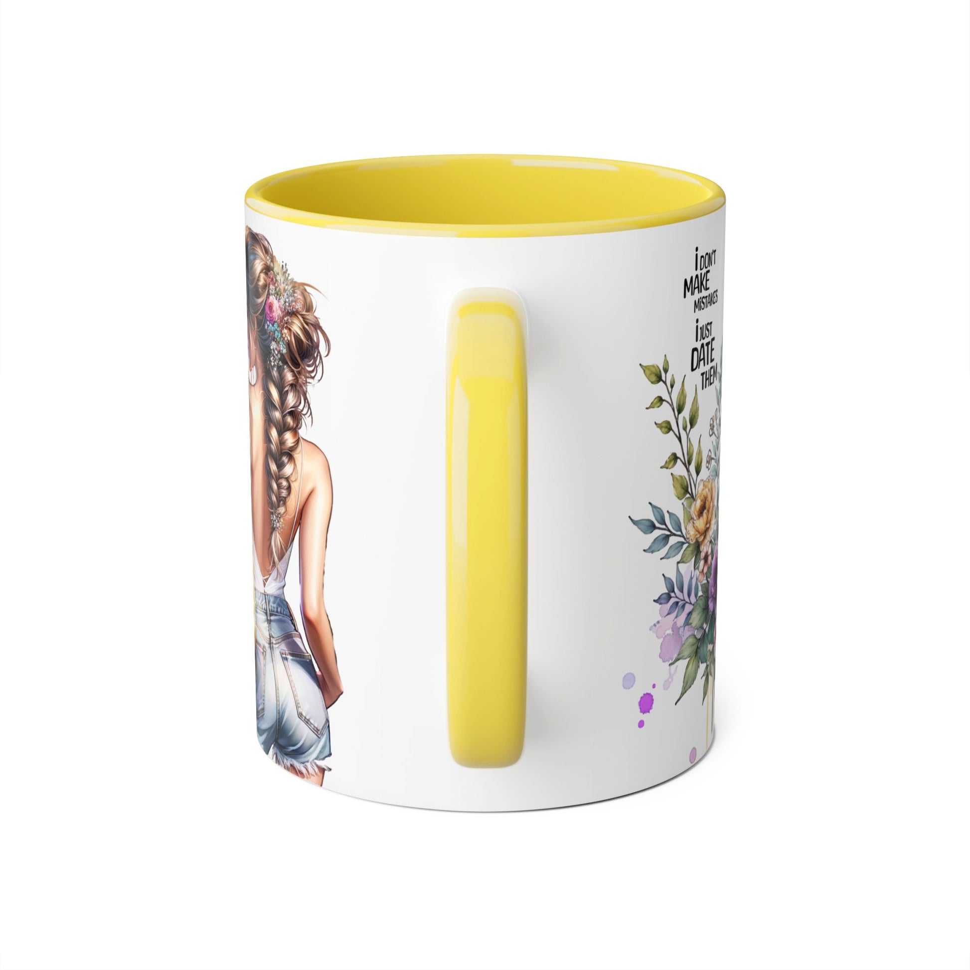 I Don't Make Mistakes, I Date Them Chic Floral Accent Mug for Her, Coffee Lover Gift, Fun Quote Mug, Stylish Kitchen Decor, Best Friend Gift