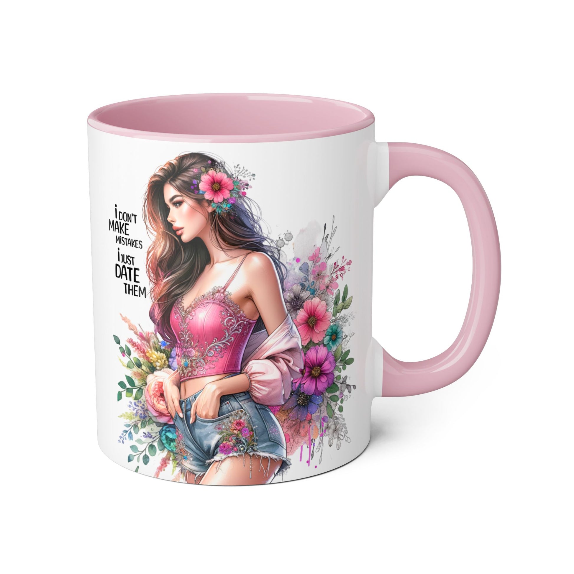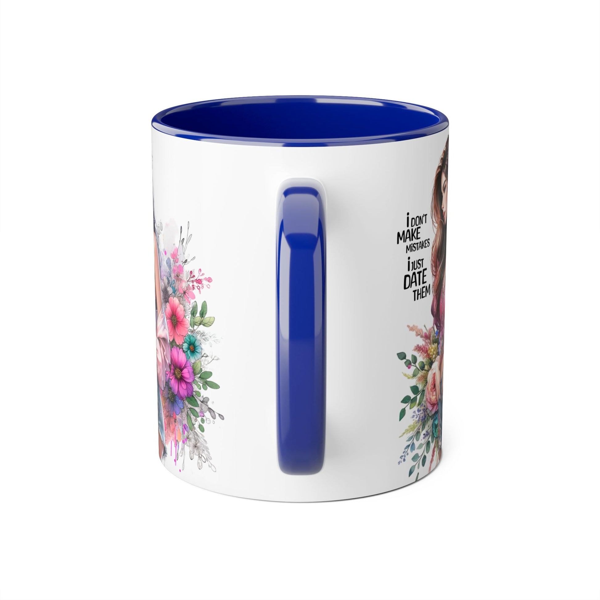 I Don't Make Mistakes, I Date Them Floral Accent Mug, Coffee Lover Gift, Tea Time Delight, Beautiful Floral Cup, Unique Gift for Her, Coffee Mug with Woman Design