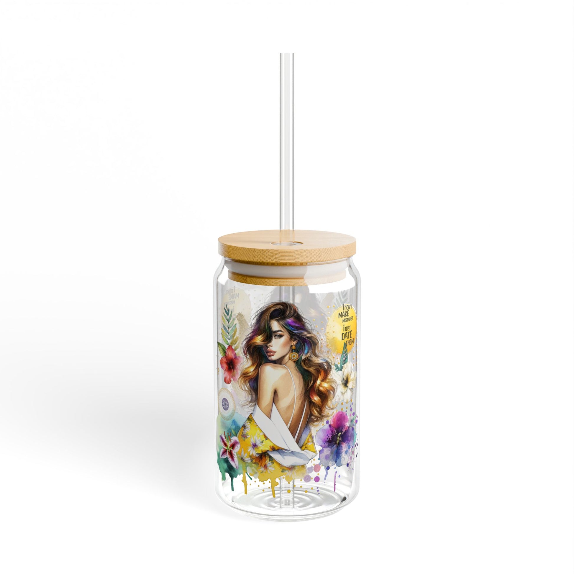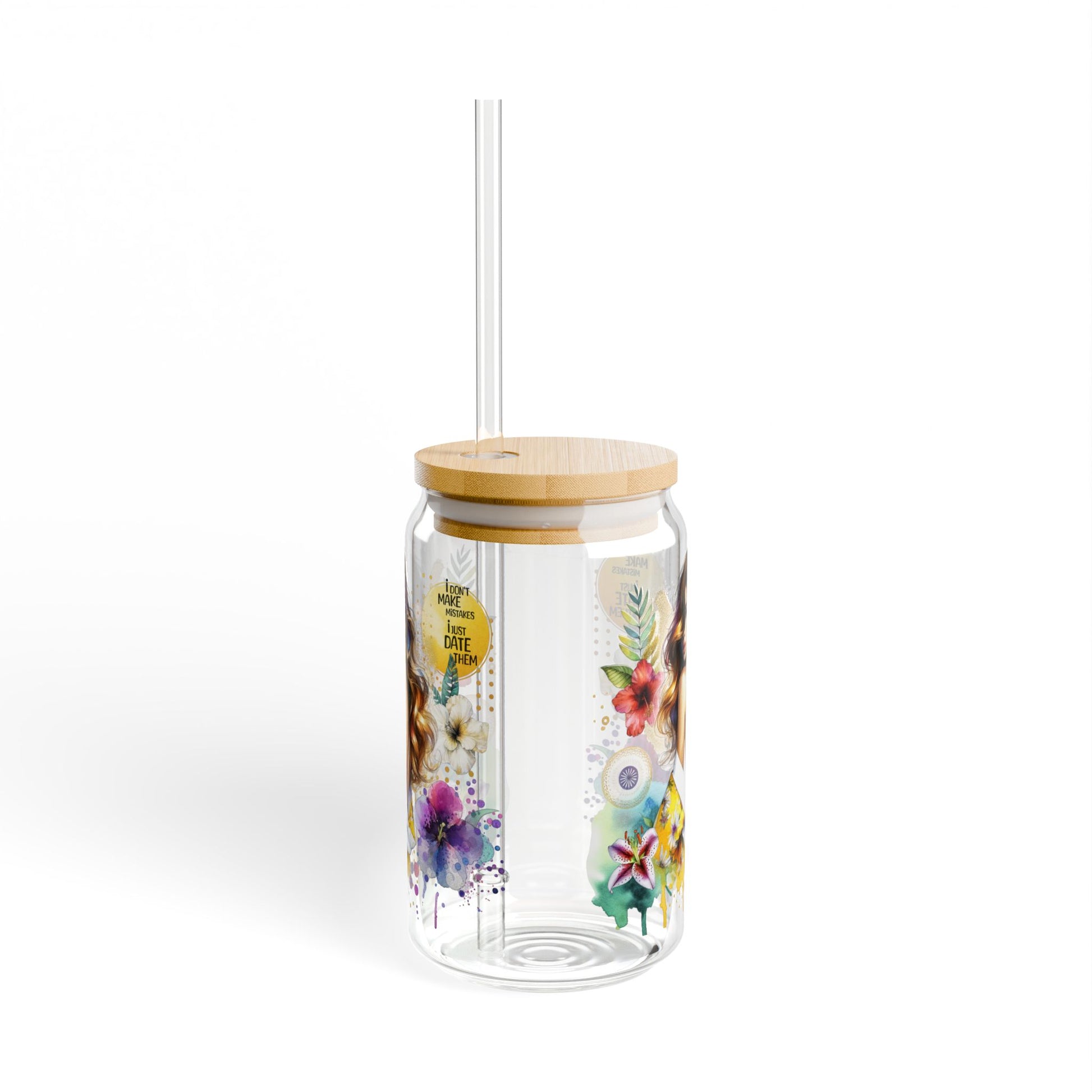 I Don't Make Mistakes, I Date Them Floral Art Sipper Glass, 16oz - Vibrant Drinkware for Garden Parties, Birthdays, Weddings, Eco-Friendly Gifts, Home Decor