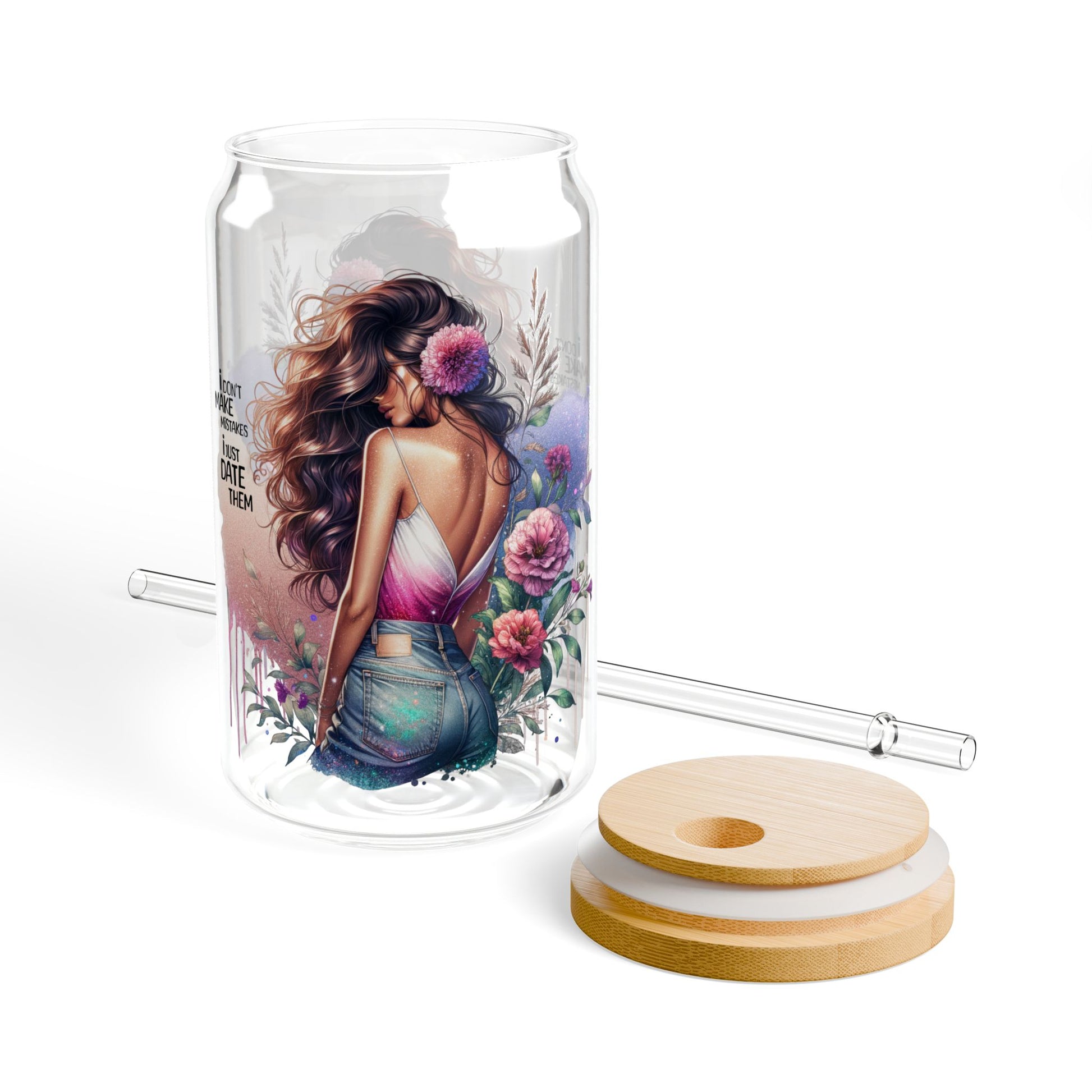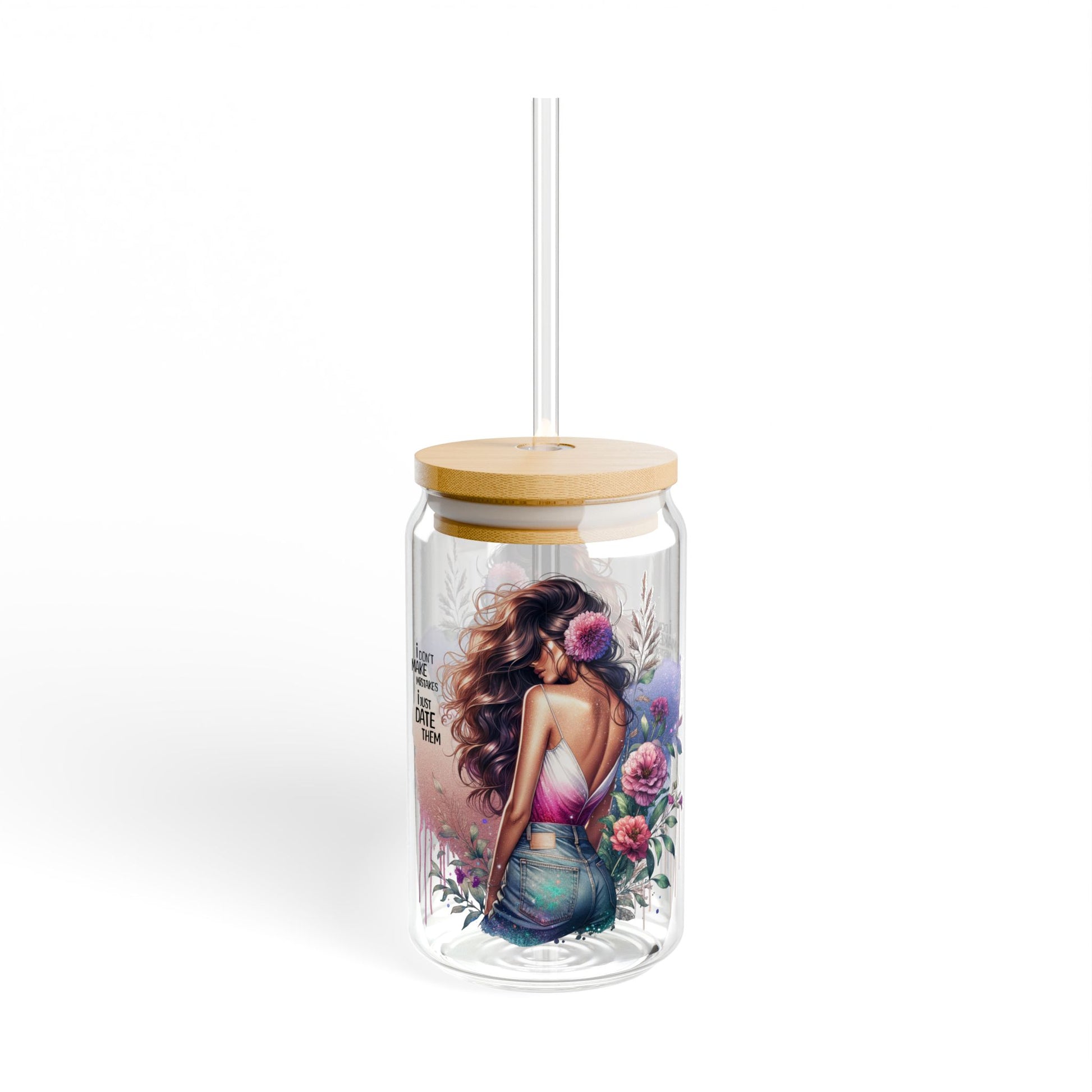 I Don't Make Mistakes, I Date Them Floral Sipper Glass | 16oz Decorative Drinkware, Eco-Friendly, Perfect for Summer, Events, Gifts, Home Decor