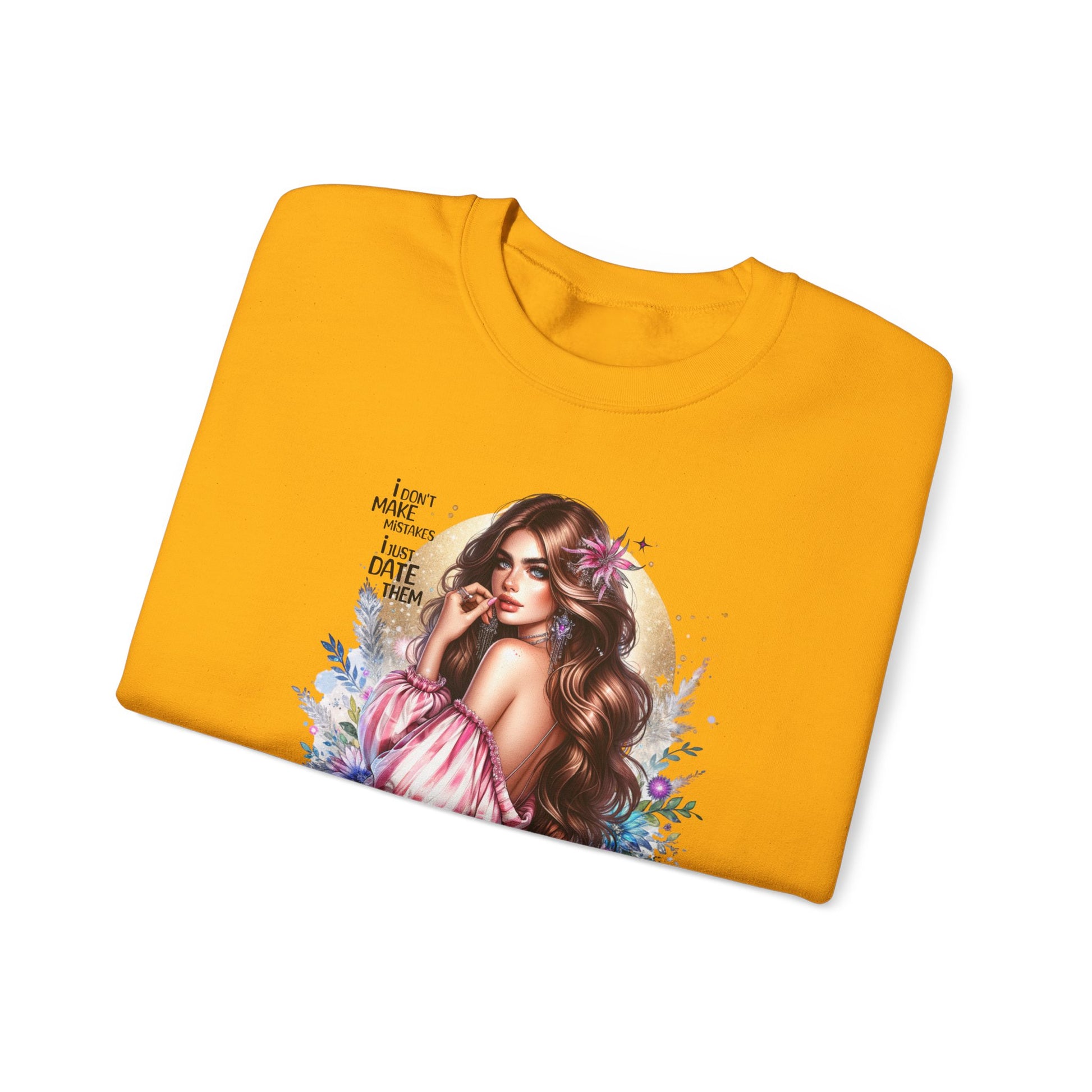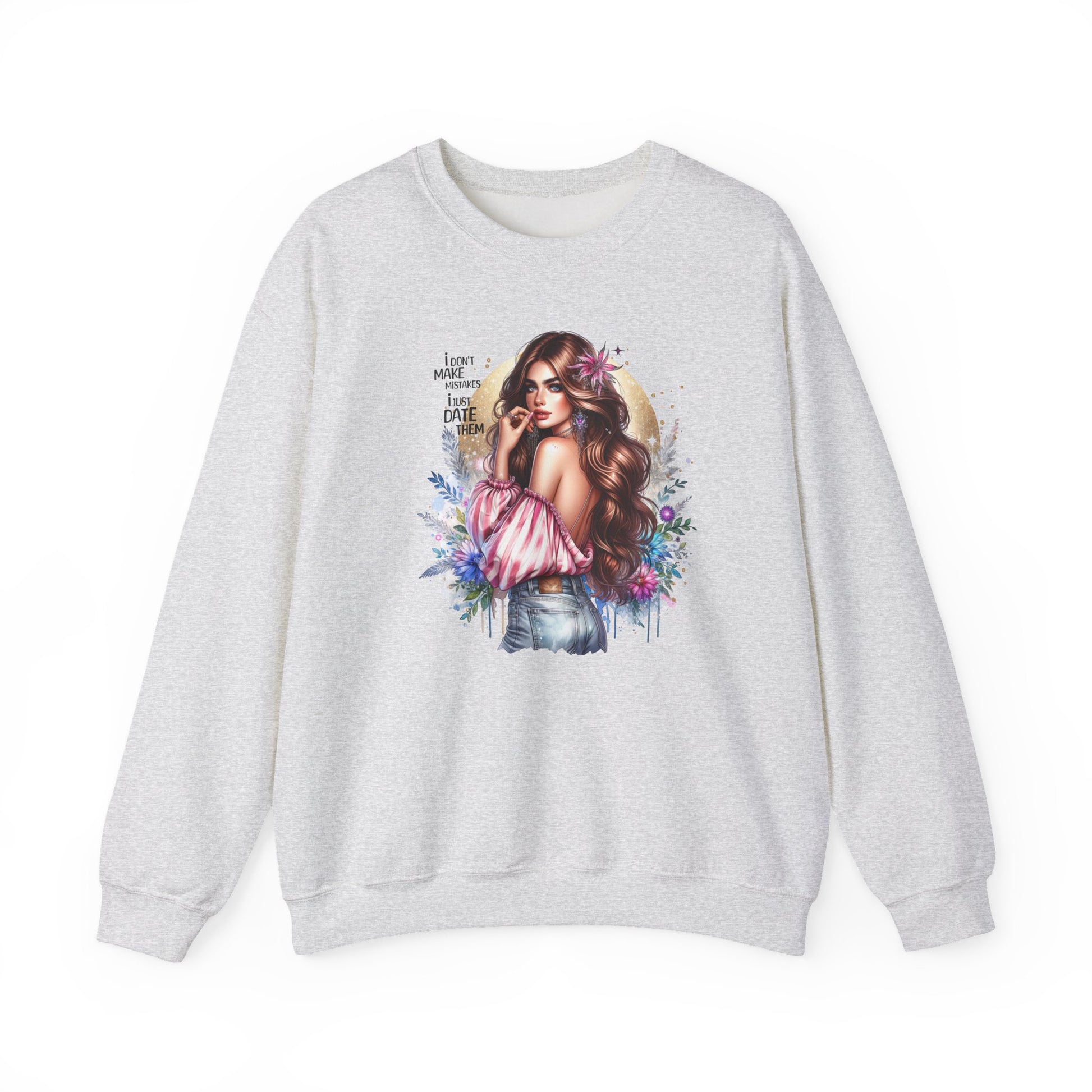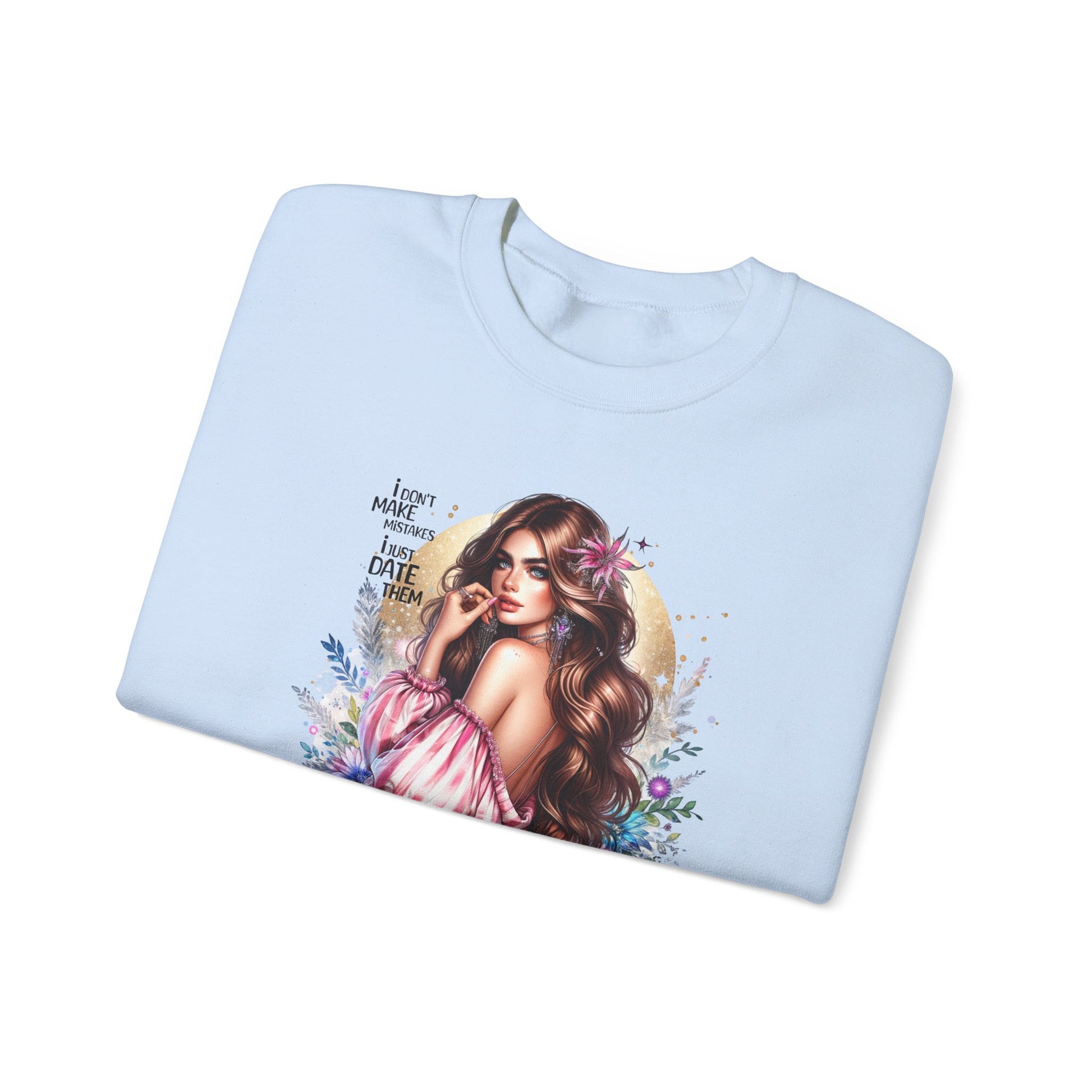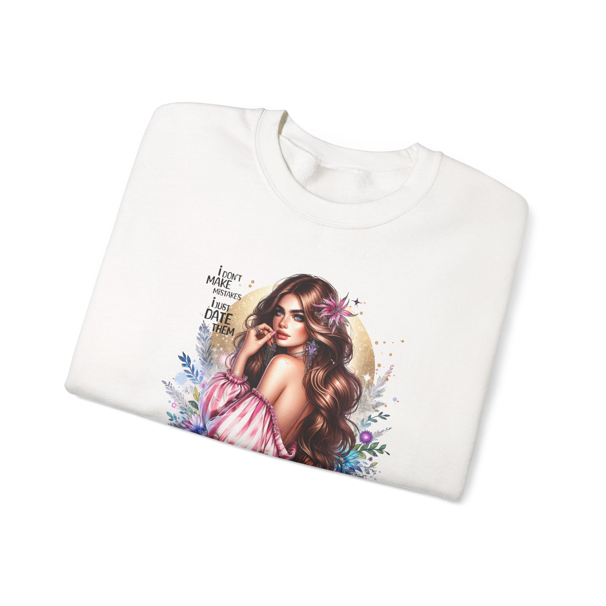 I Don't Make Mistakes, I Just Date Them Boho Chic Crewneck Sweatshirt, Cozy Gift for Her, Fashionable Layering Piece, Art-Inspired Apparel, Perfect for Special Occasions