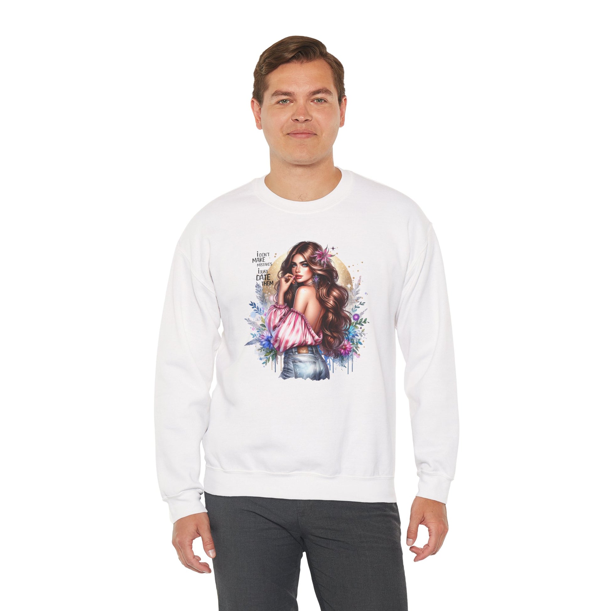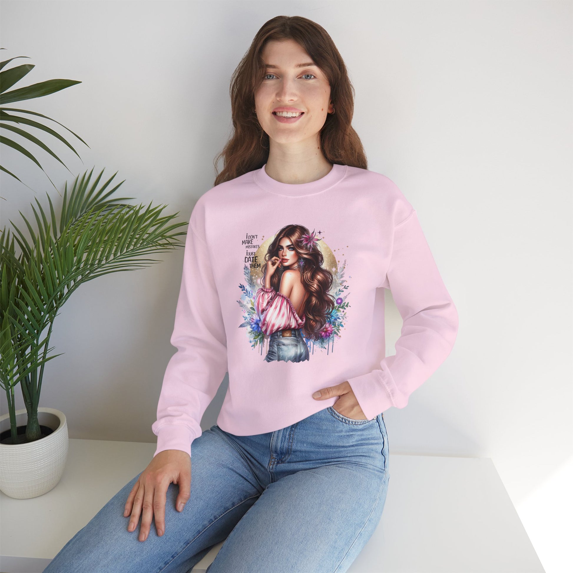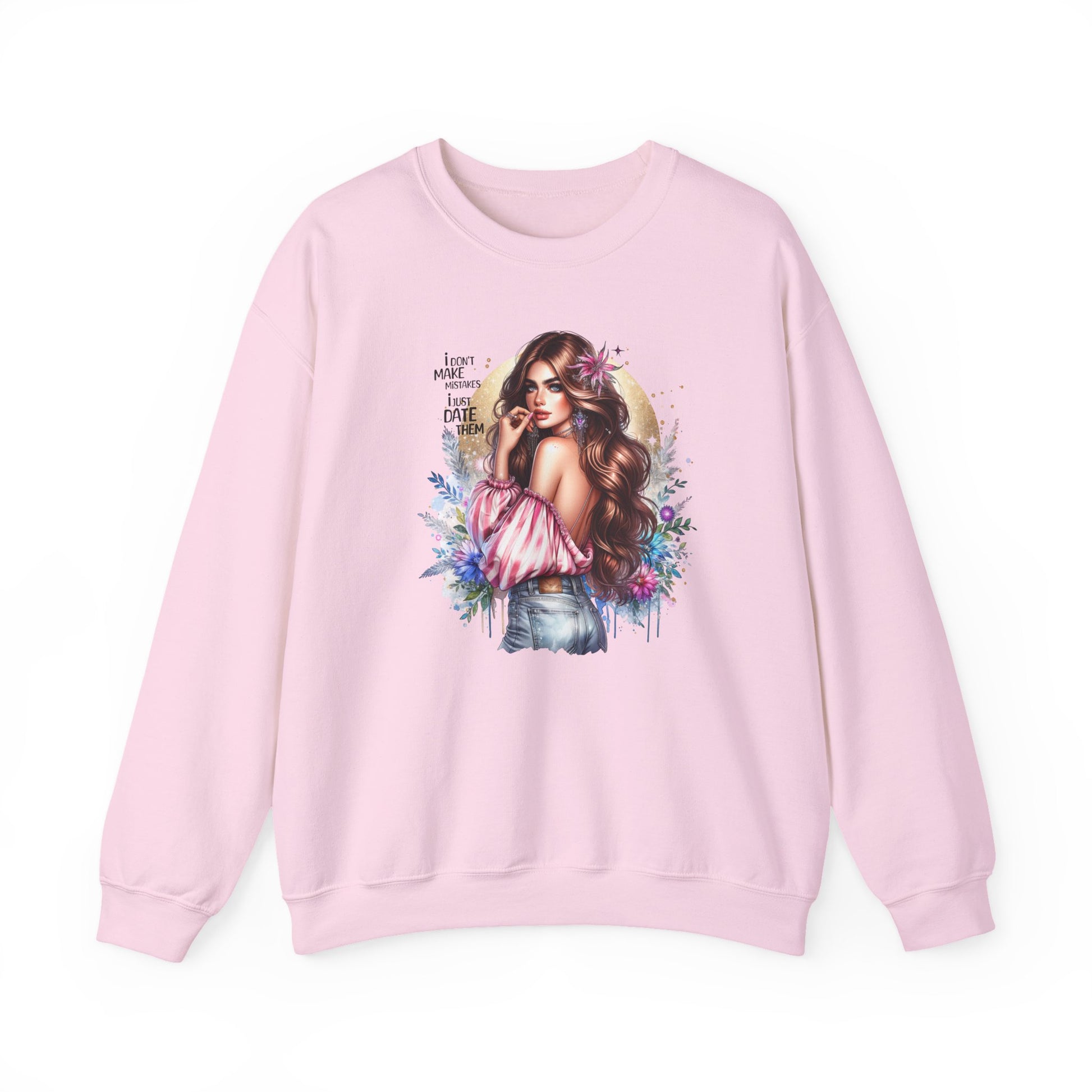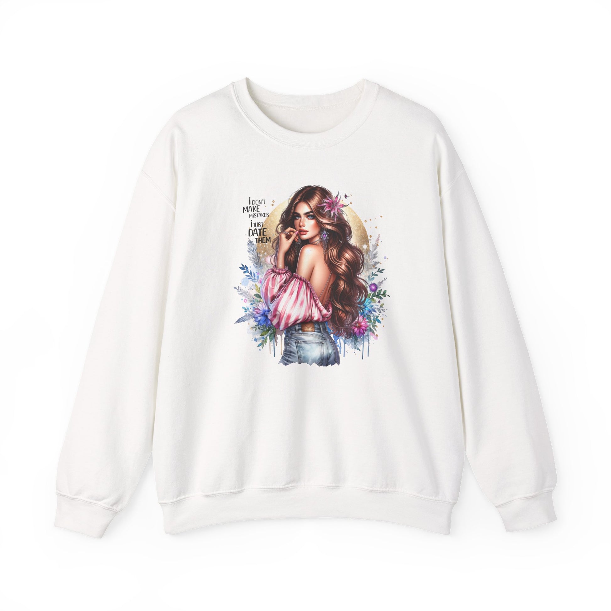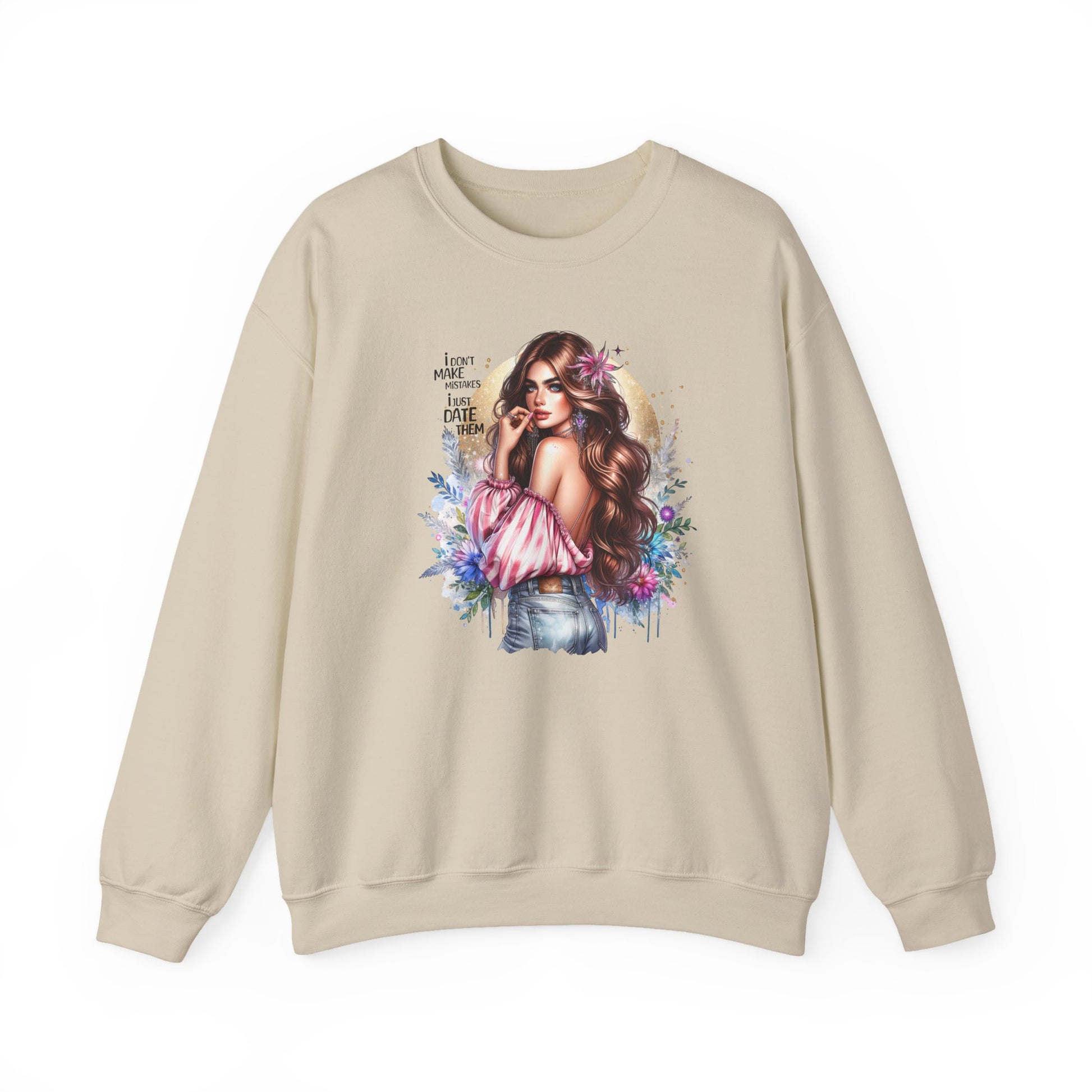 I Don't Make Mistakes, I Just Date Them Boho Chic Crewneck Sweatshirt, Cozy Gift for Her, Fashionable Layering Piece, Art-Inspired Apparel, Perfect for Special Occasions