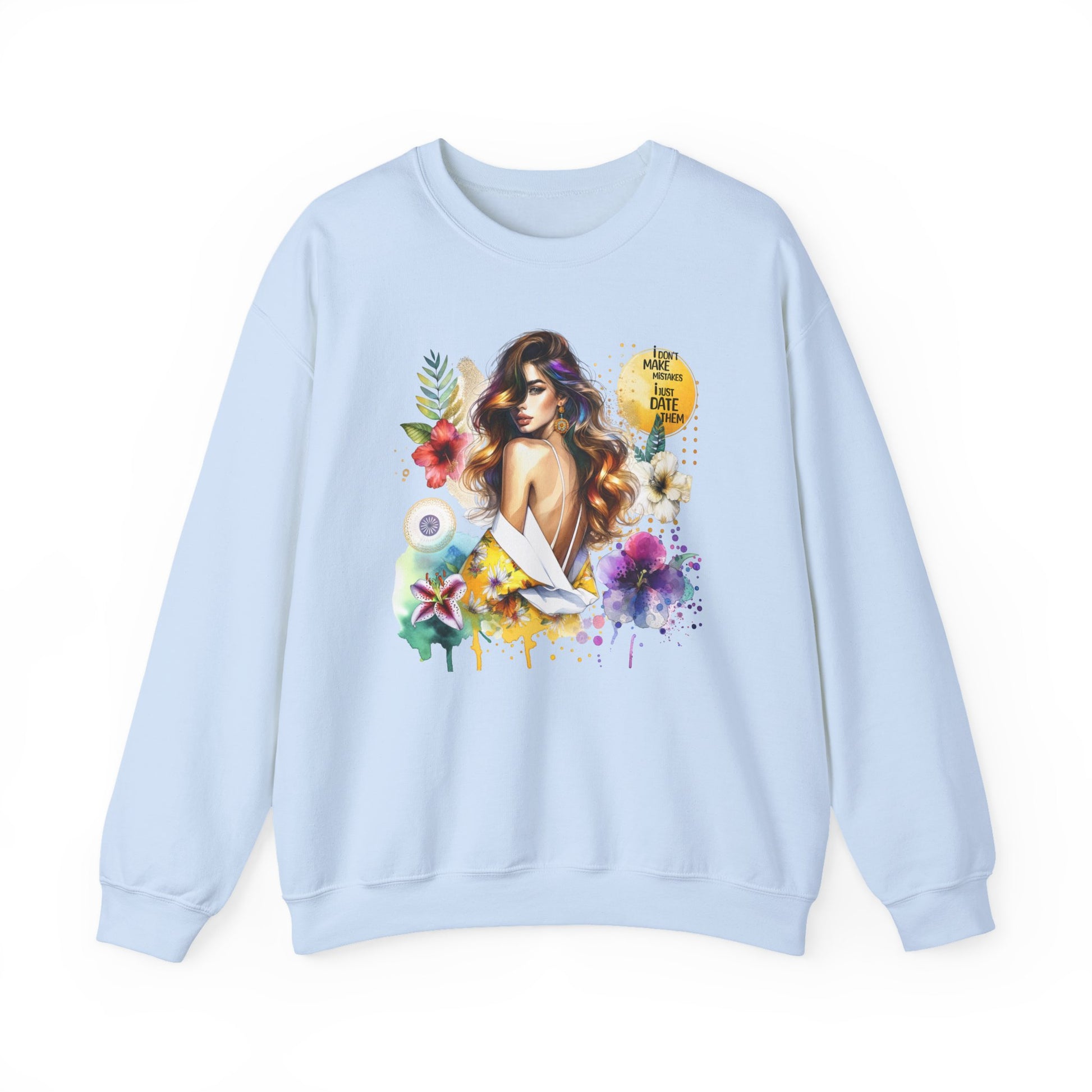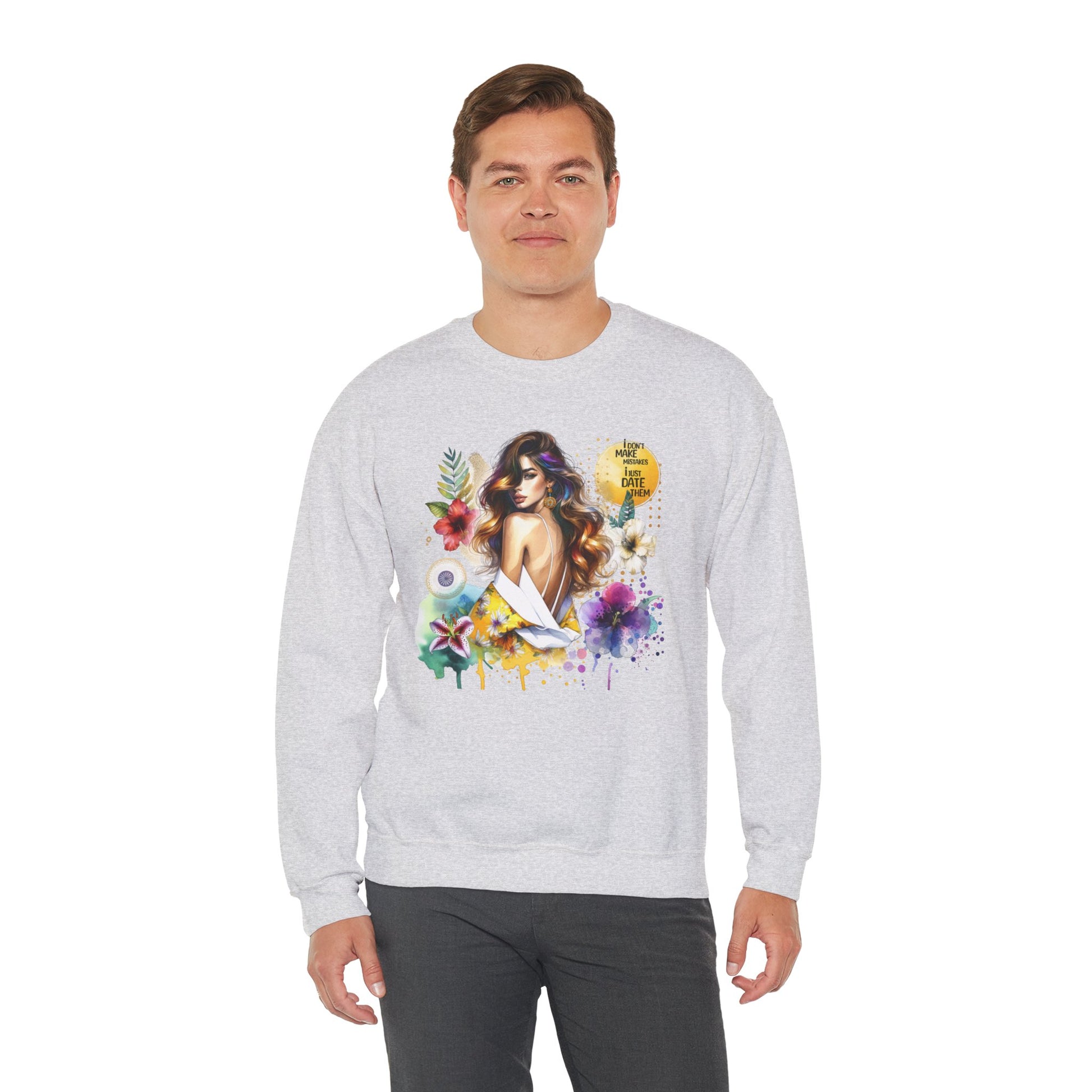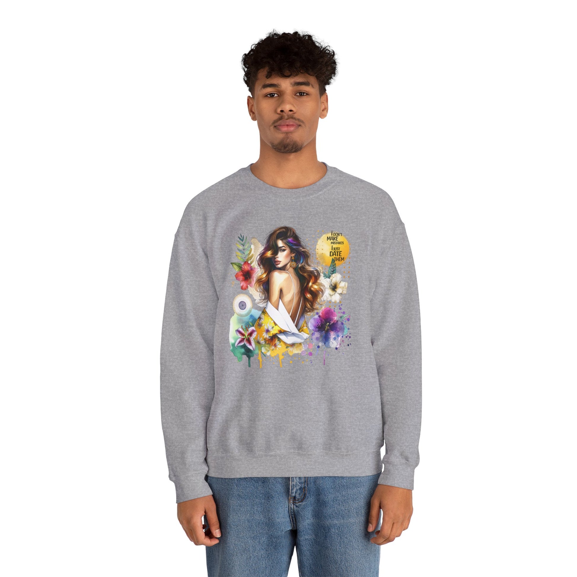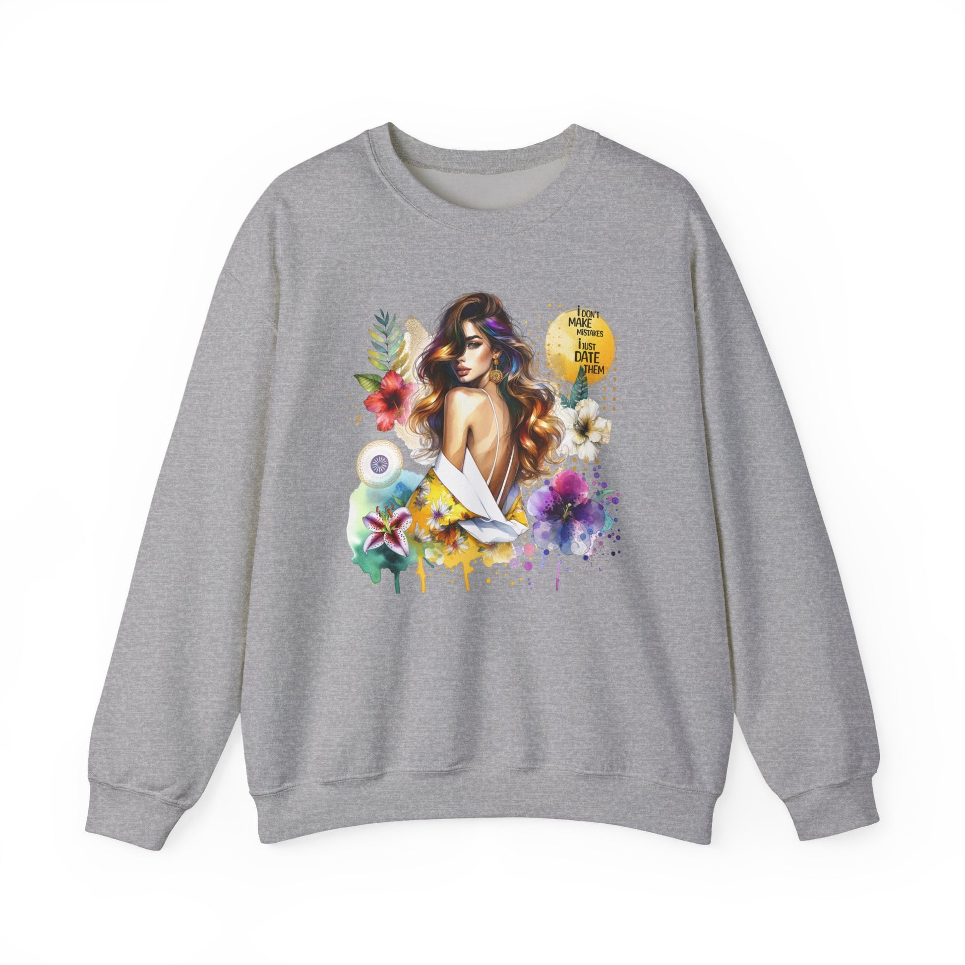 I Don't Make Mistakes, I Just Date Them Floral Art Crewneck Sweatshirt, Comfortable Ladies Fashion, Gift for Her, Boho Style, Casual Outfit, Cozy Sweater