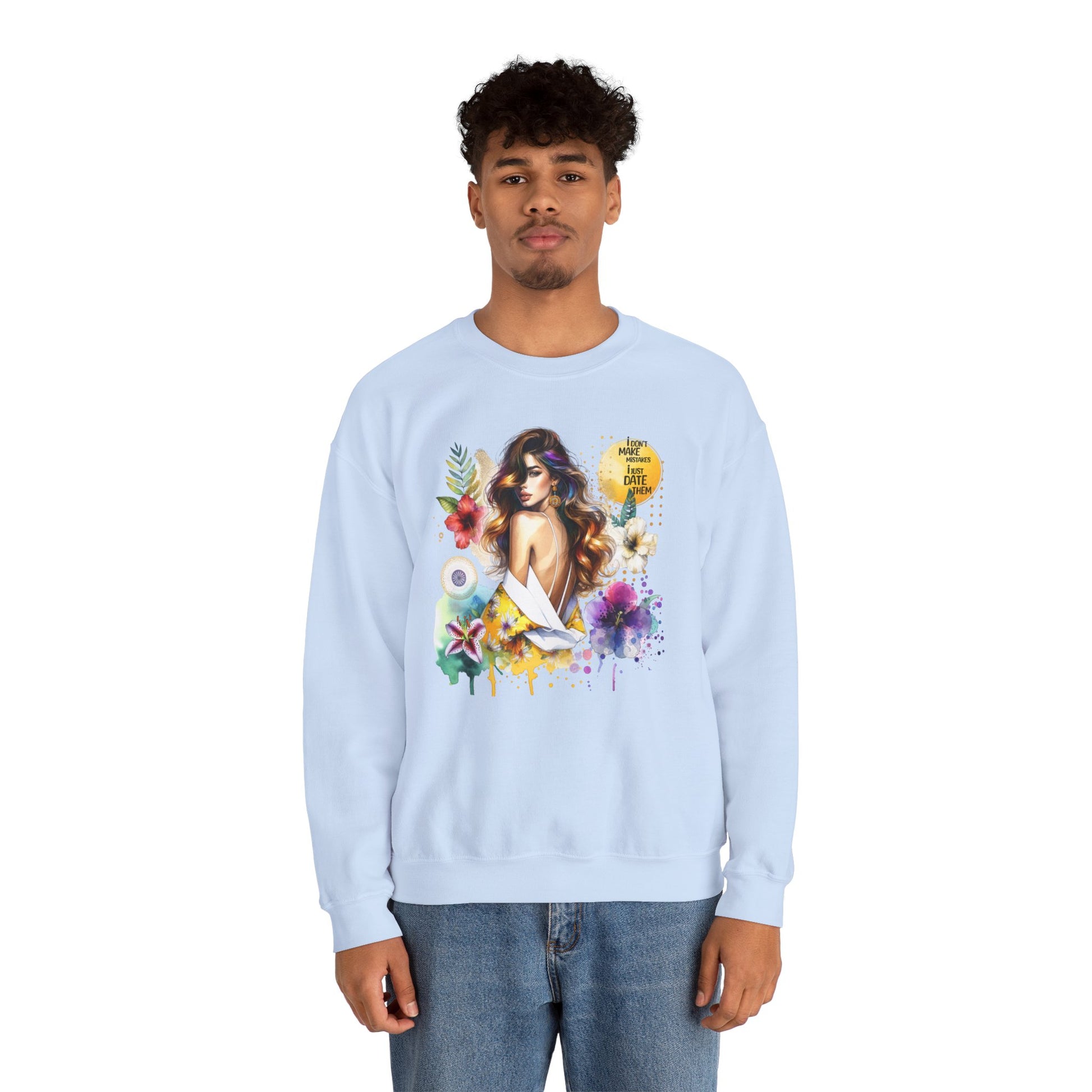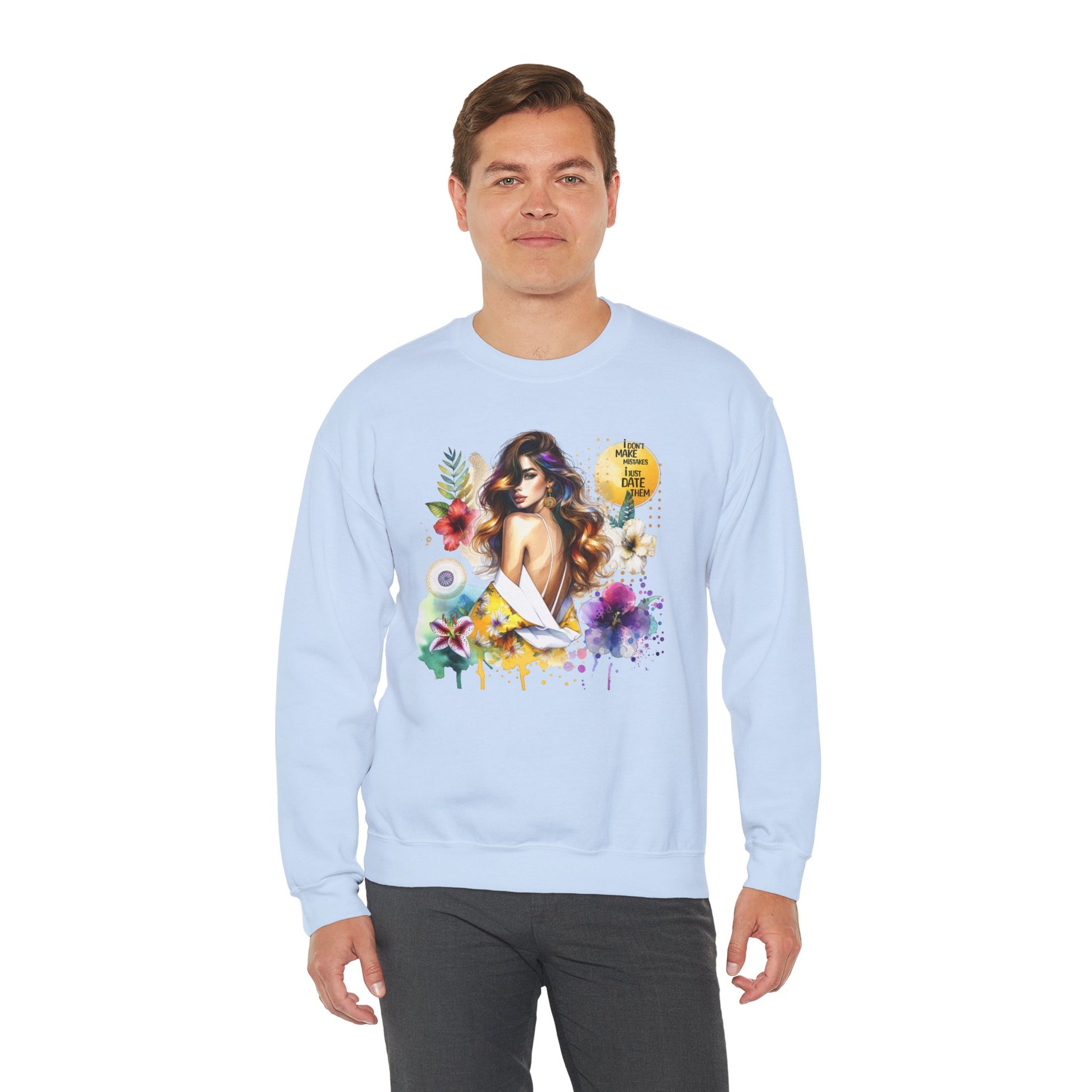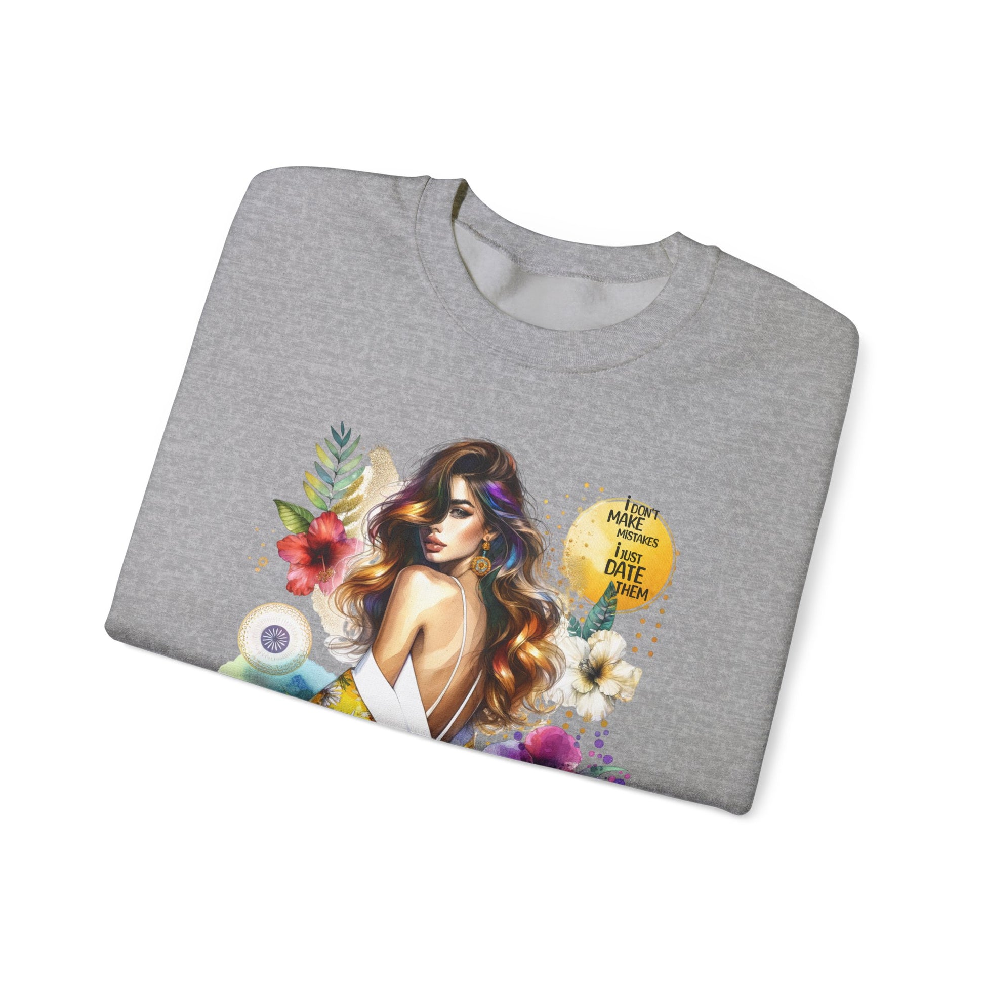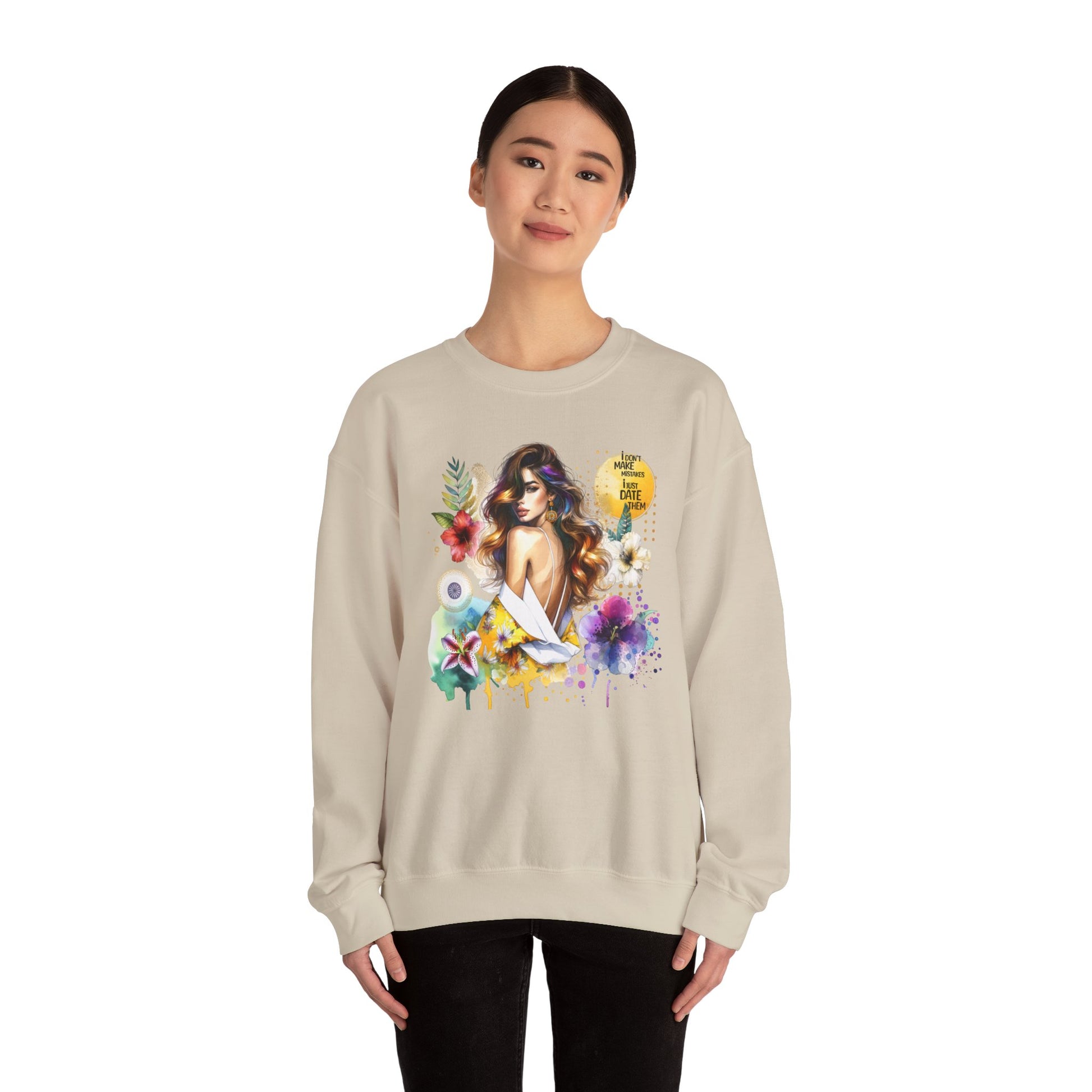 I Don't Make Mistakes, I Just Date Them Floral Art Crewneck Sweatshirt, Comfortable Ladies Fashion, Gift for Her, Boho Style, Casual Outfit, Cozy Sweater