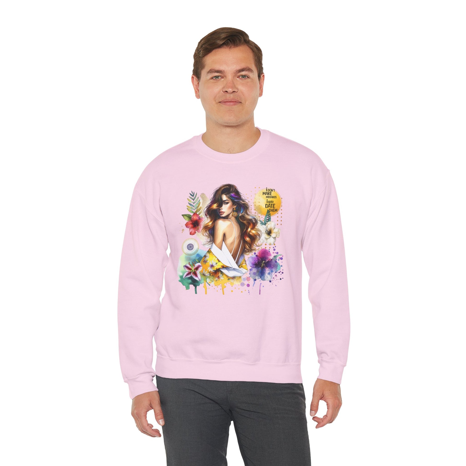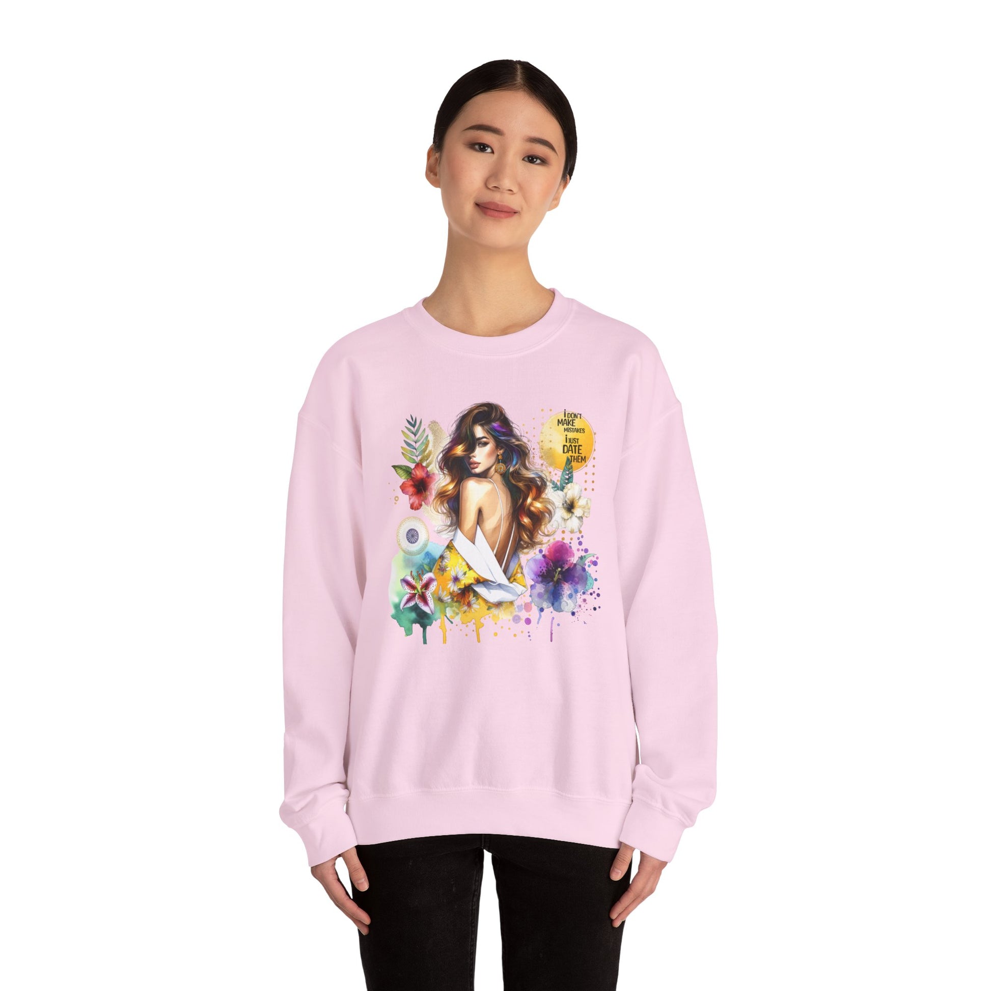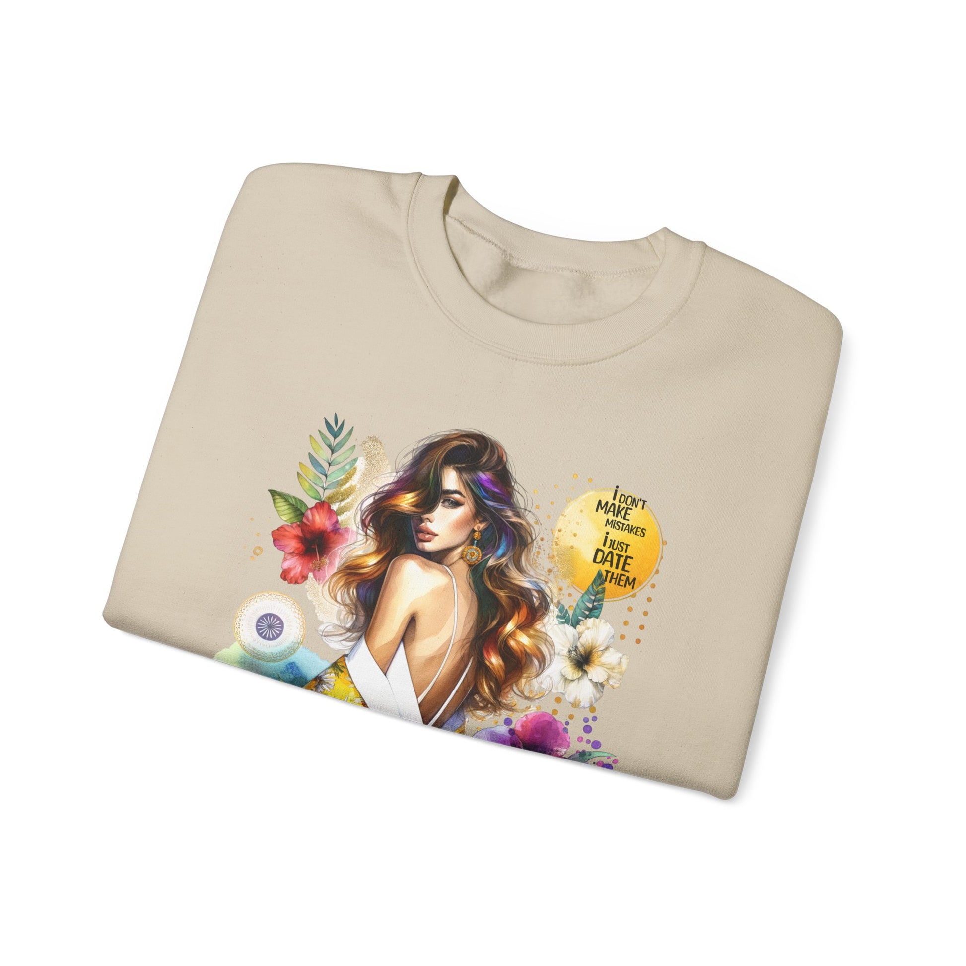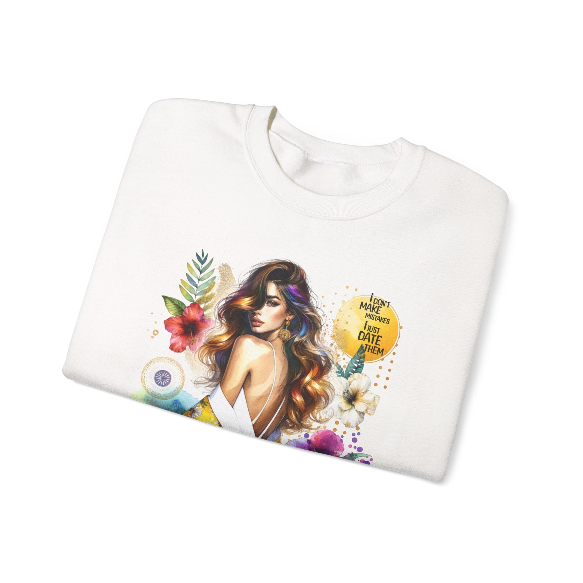 I Don't Make Mistakes, I Just Date Them Floral Art Crewneck Sweatshirt, Comfortable Ladies Fashion, Gift for Her, Boho Style, Casual Outfit, Cozy Sweater