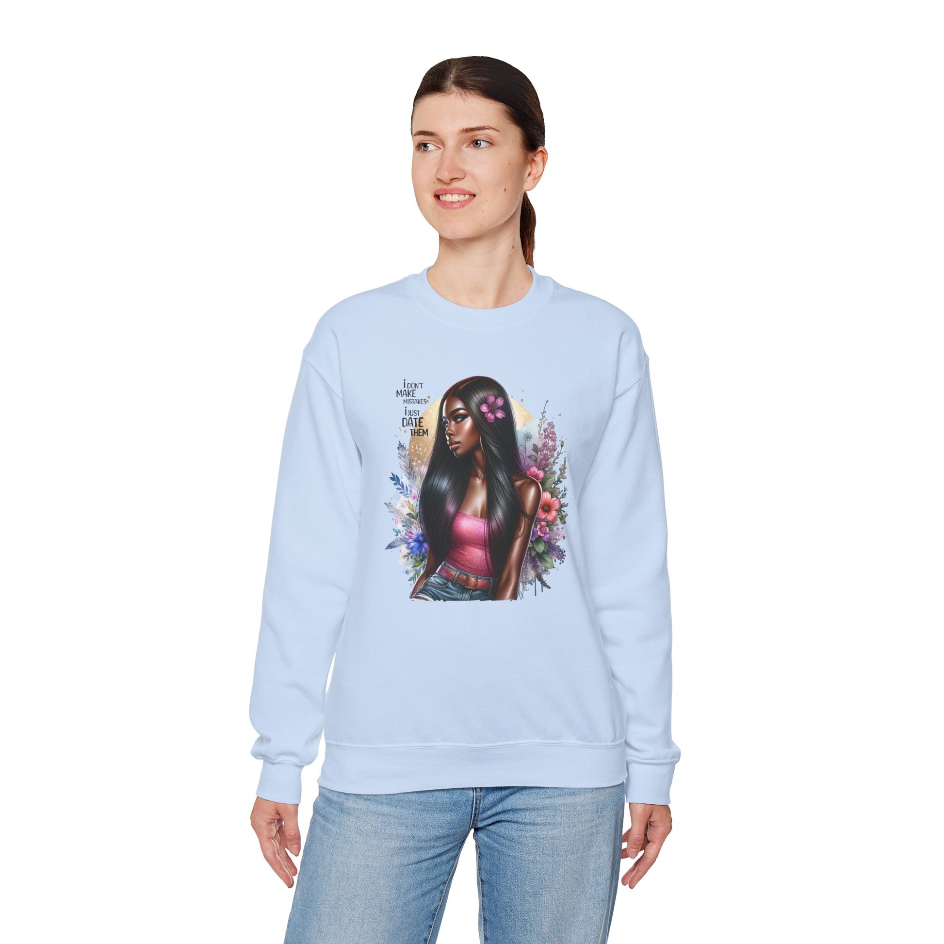 I Don't Make Mistakes, I Just Date Them Vibrant Art Crewneck Sweatshirt - Inspirational Women's Sweatshirt, Unique Gift for Her, Cozy Pullover, Casual Fashion