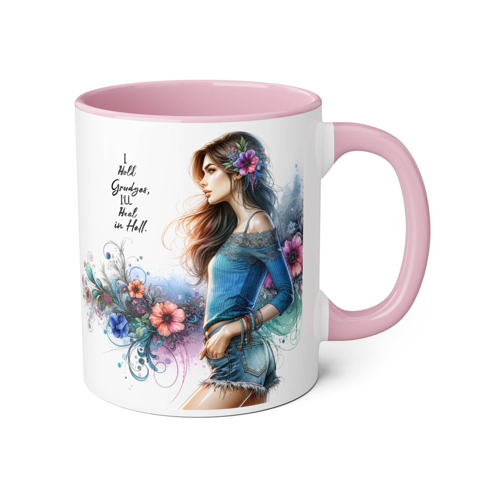 I Hold Grudges, I'll Heal in Hell Colorful Floral Accent Mug - Perfect Gift for Grandmas, Coffee Lovers, Tea Enthusiasts, Birthday & Special Occasions, Inspirational Quotes