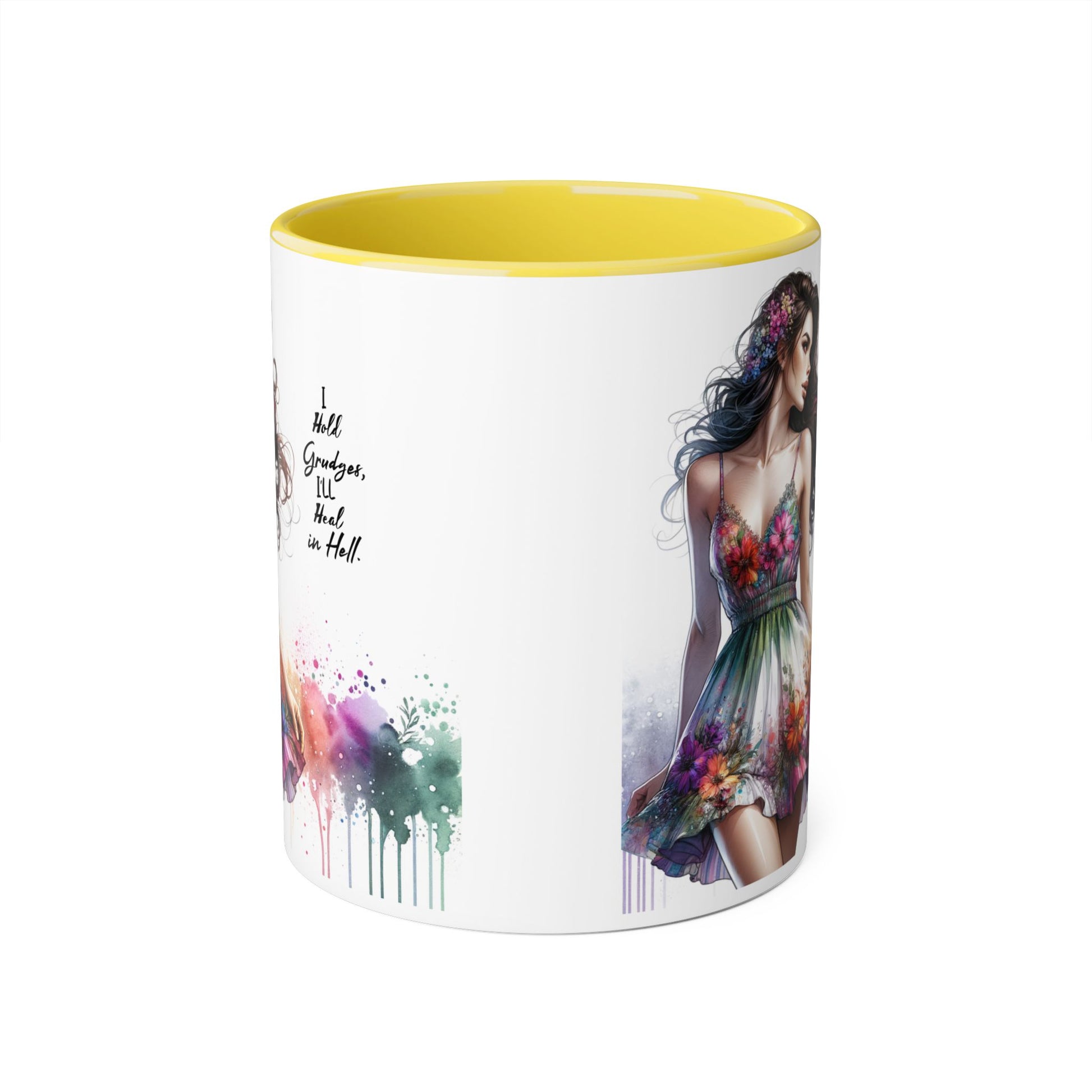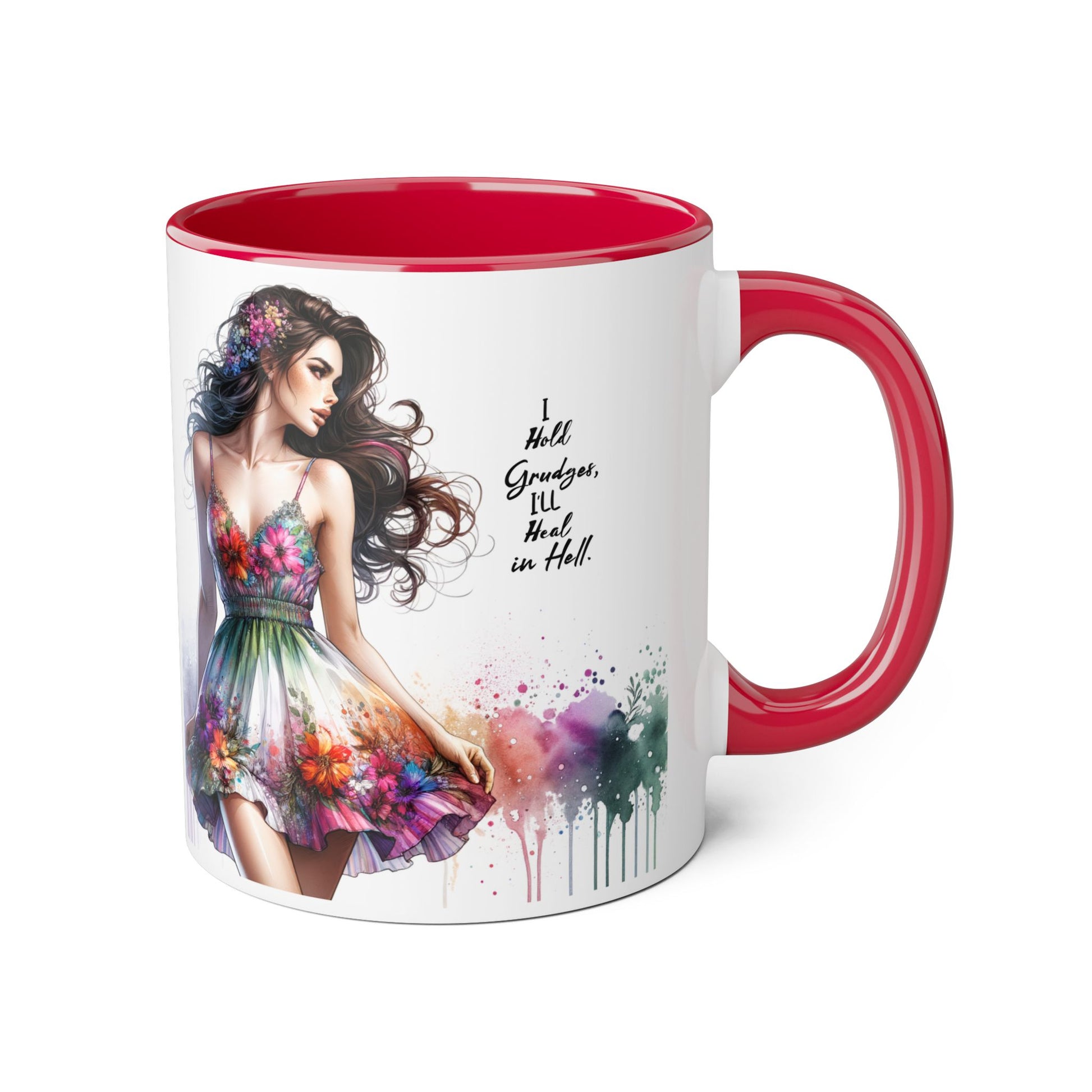 I Hold Grudges, I'll Heal in Hell Floral Art Accent Mug | Inspirational Gift for Her, Coffee Lover, Tea Time, Home Decor, Unique Birthday Present