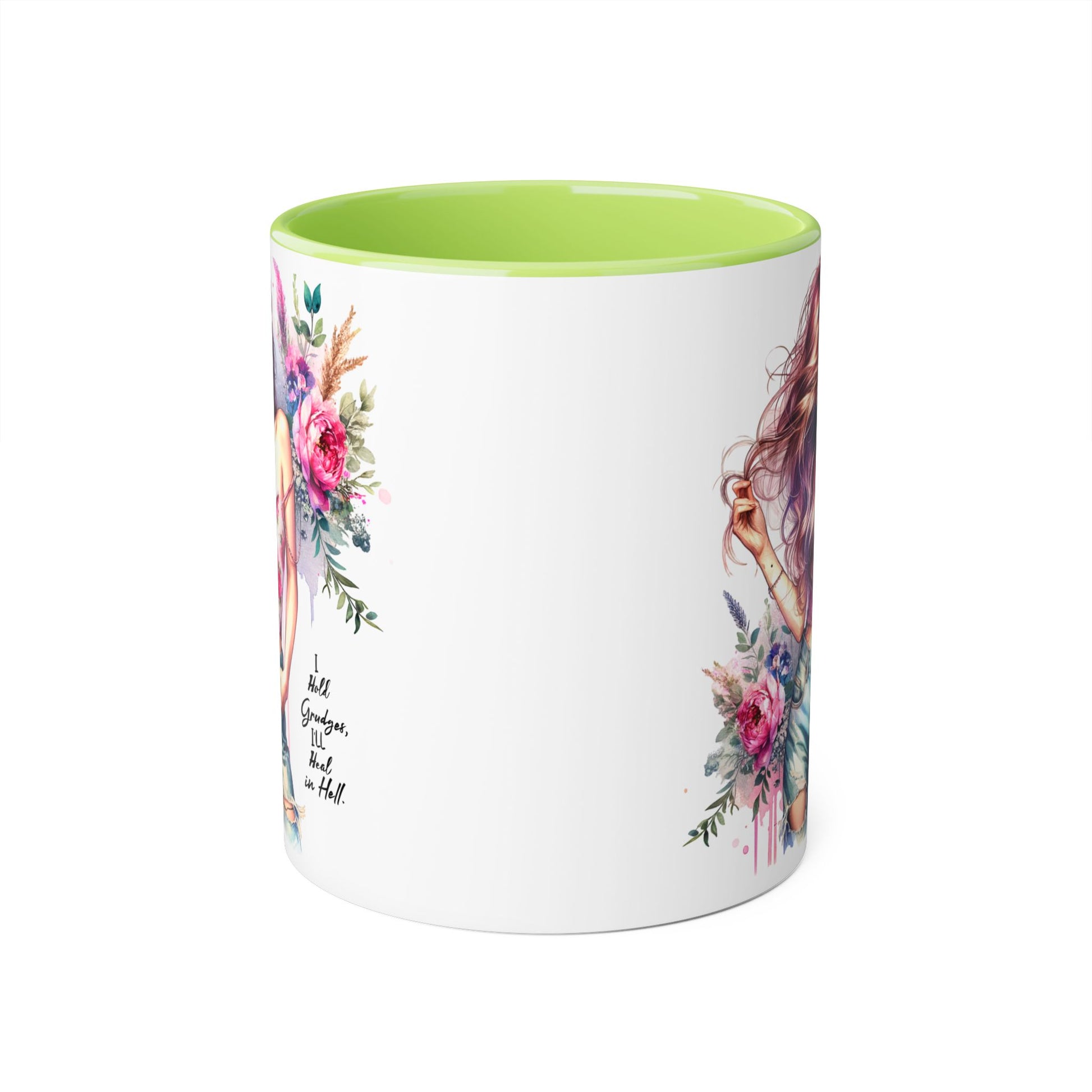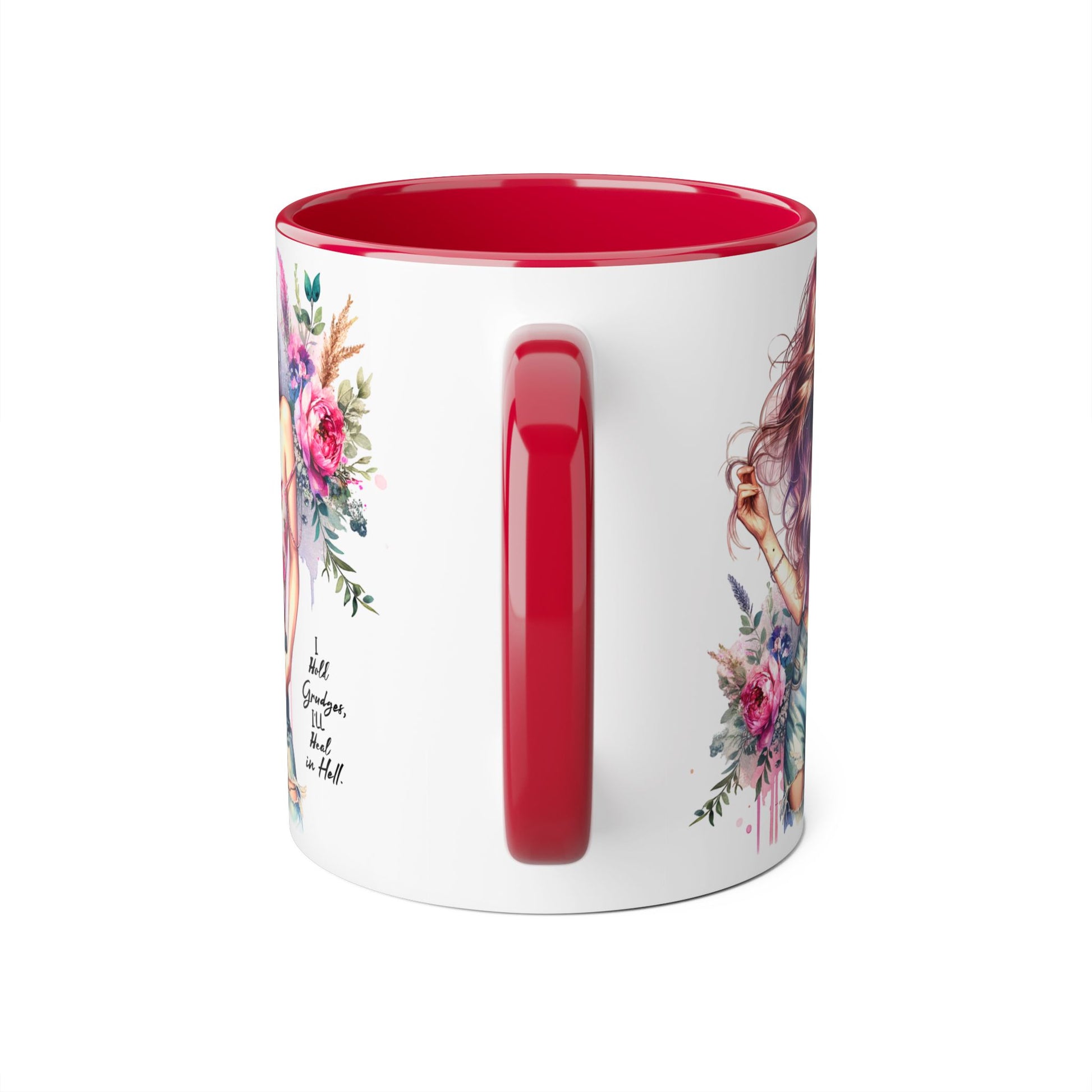 I Hold Grudges, I'll Heal in Hell Humoristic Bohemian Floral Accent Mug - Drinkware for Tea Lovers, Coffee Enthusiasts, Gift for Friends, Home Decor, Artful Mugs