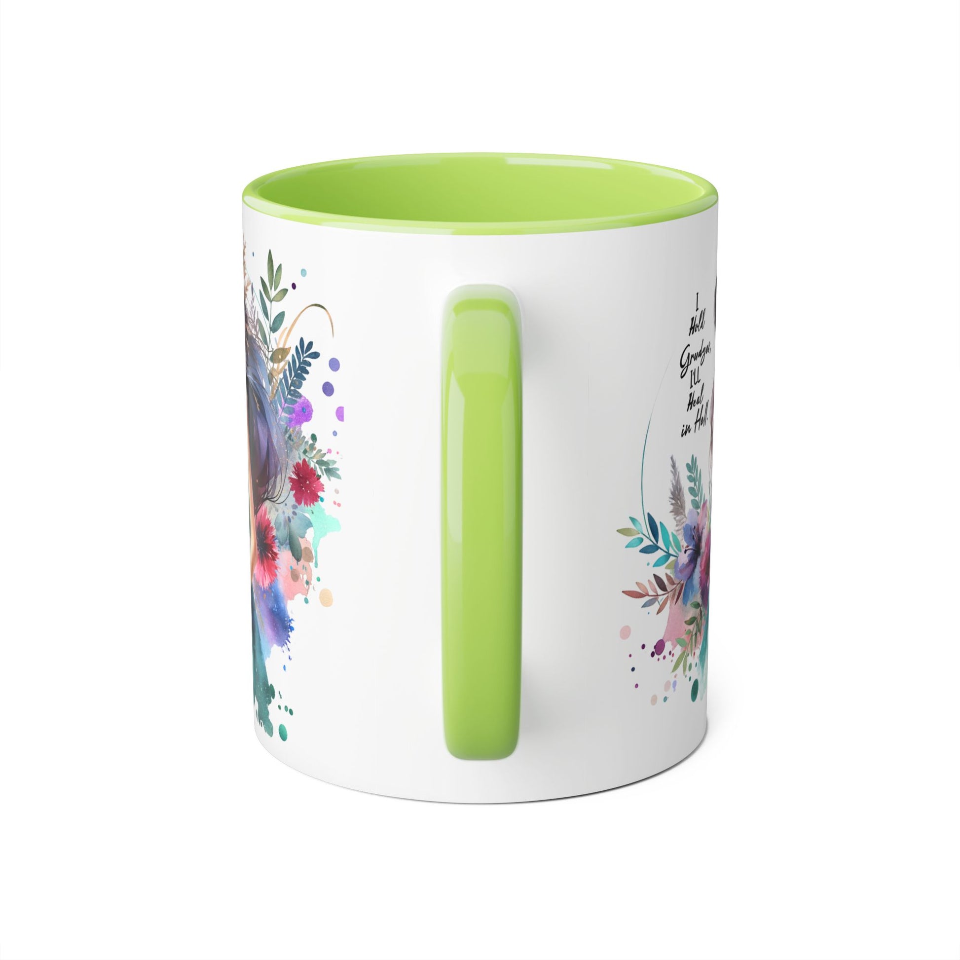 I Hold Grudges, I'll Heal in Hell Humoristic Colorful Accent Mug - Perfect Gift for Grandma, Artistic Coffee Cup, Floral Design Mug, Inspirational Quote Mug, Unique Drinkware