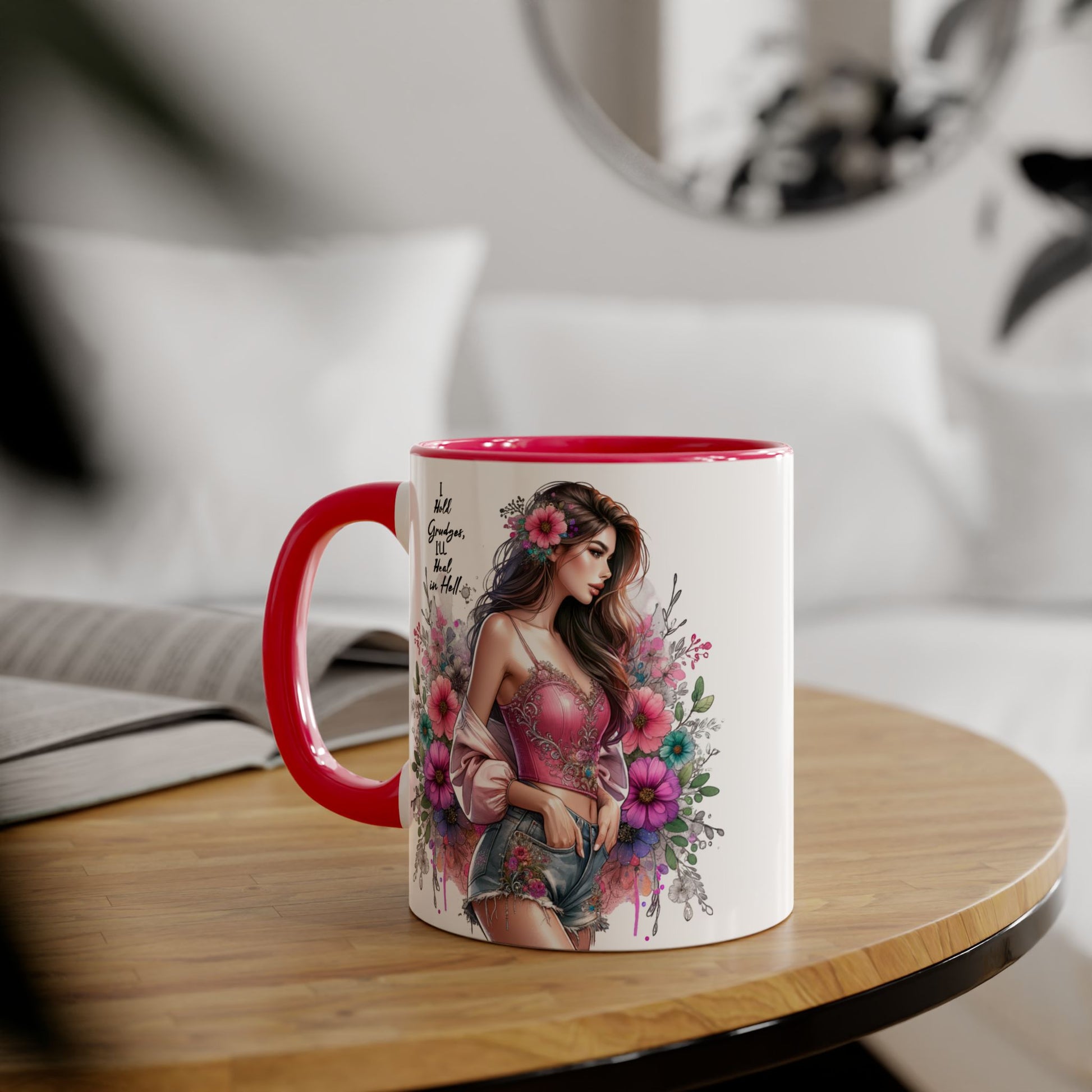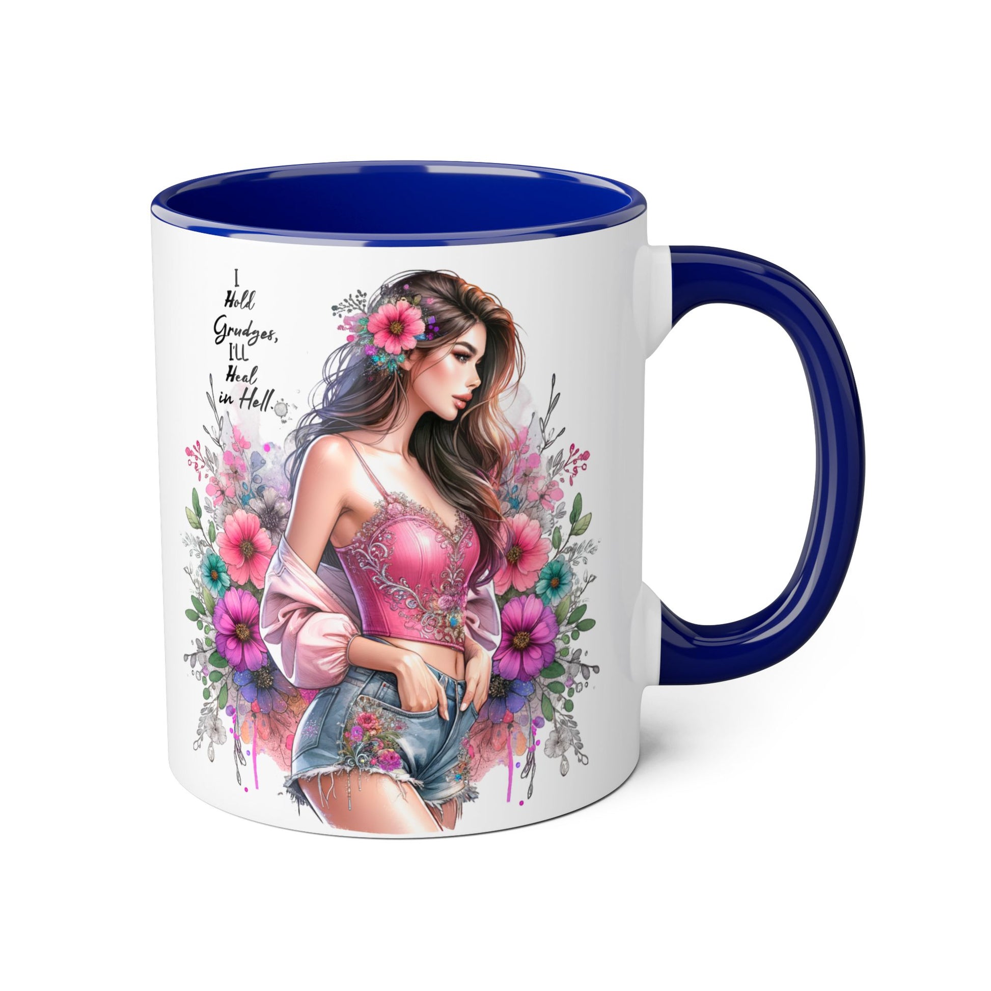 I Hold Grudges, I'll Heal in Hell Humoristic Floral Accent Mug