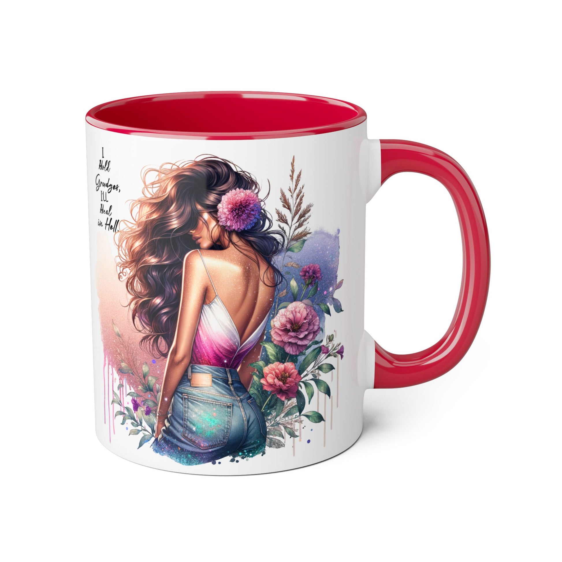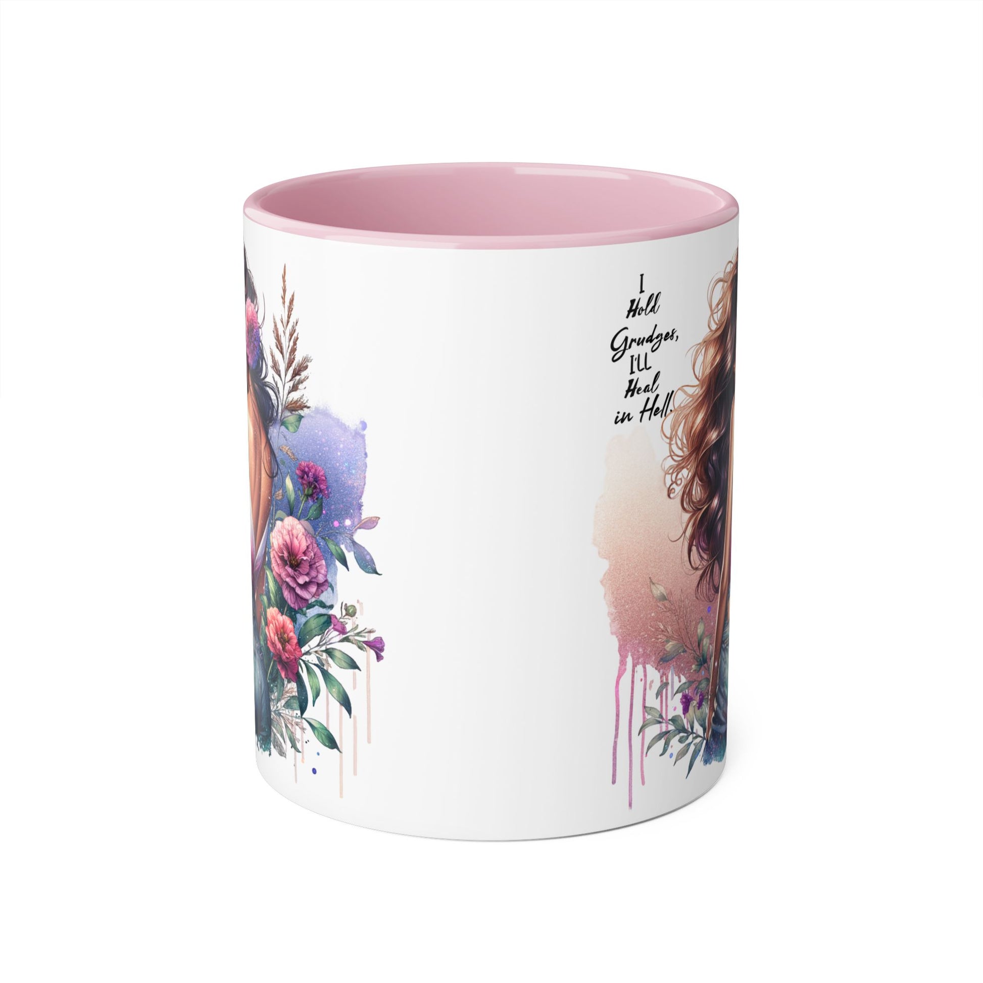I Hold Grudges, I'll Heal in Hell Humoristic Floral Accent Mug with Inspirational Quote, Coffee Cup, Gift for Friends, Home Decor, Motivational Mug