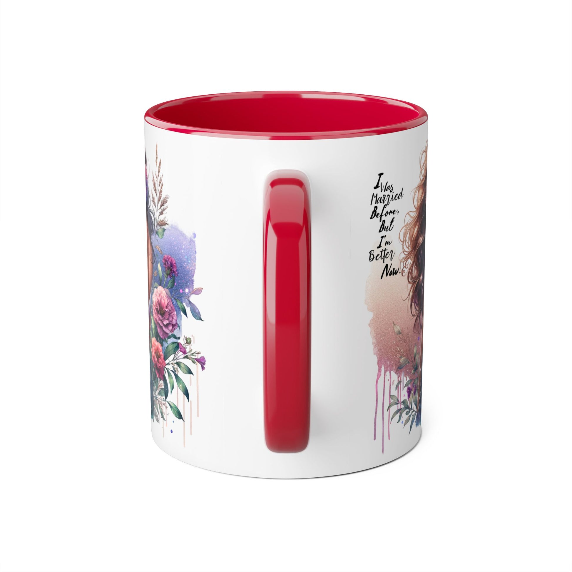 I Was Married Before But I'm Better Now Artistic Accent Mug, Inspirational Coffee Cup, Floral Design Gift, Empowering Mug for Women, Thoughtful Home Decor, Unique Tea Cup