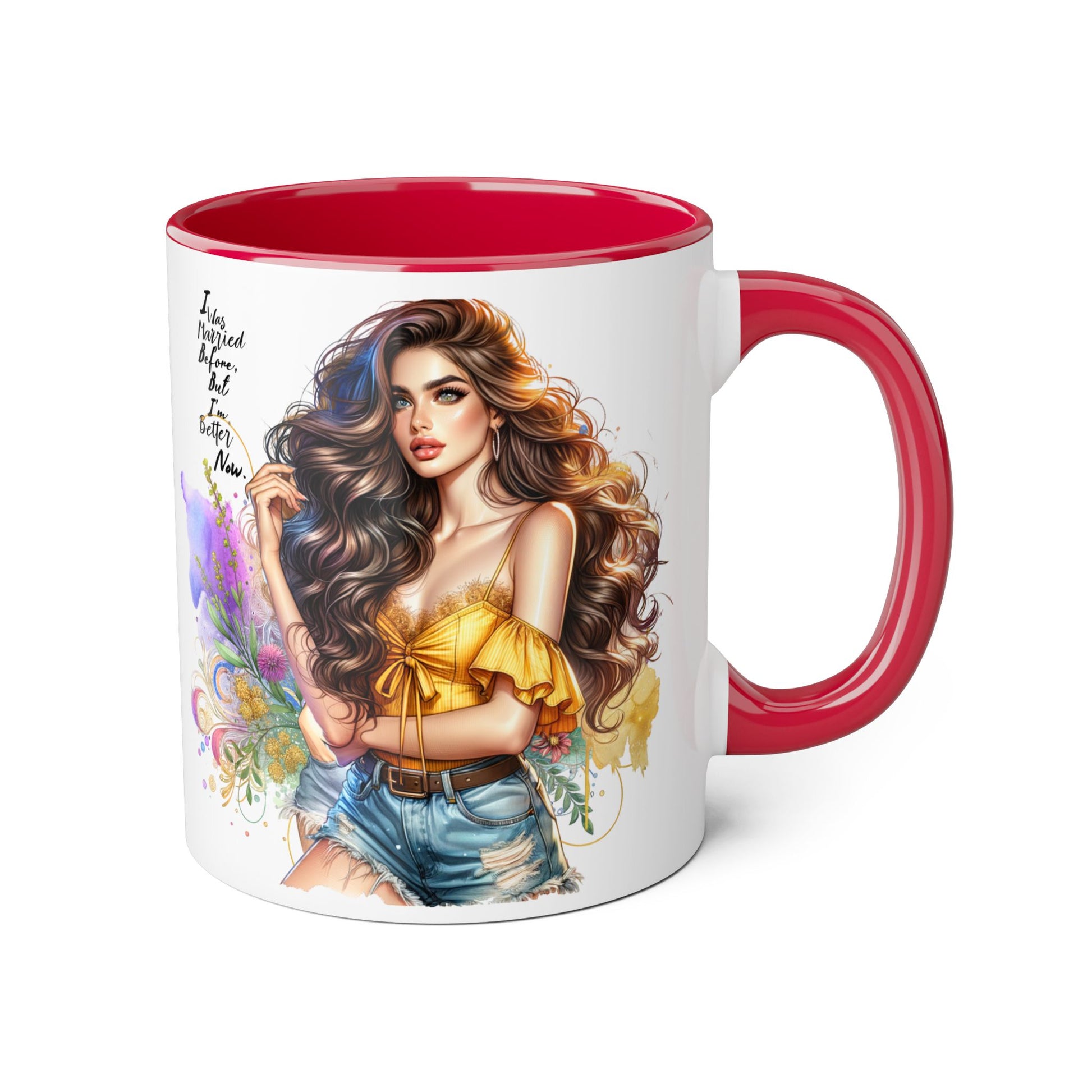 I Was Married Before But I'm Better Now Boho Chic Accent Mugs, Inspirational Coffee Cup, Gift for Her, Unique Art Mug, Home Decor, Vibrant Floral Design