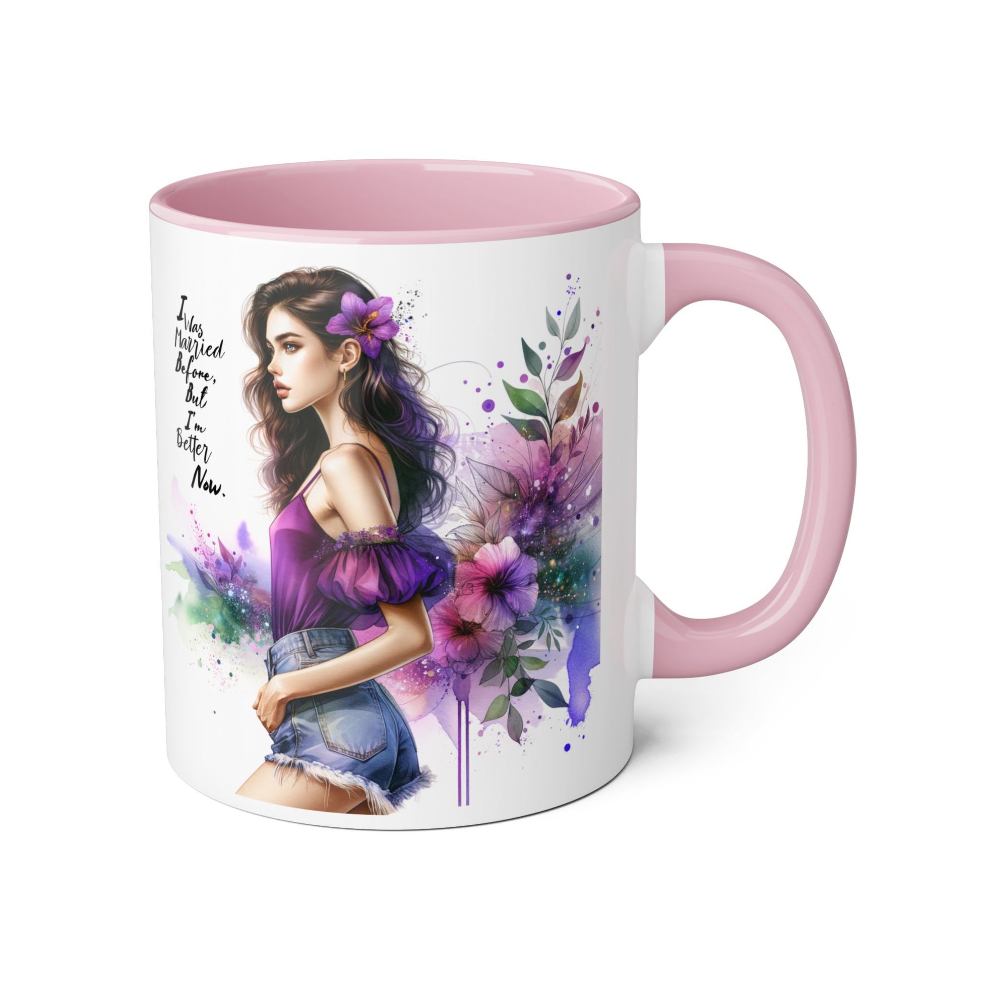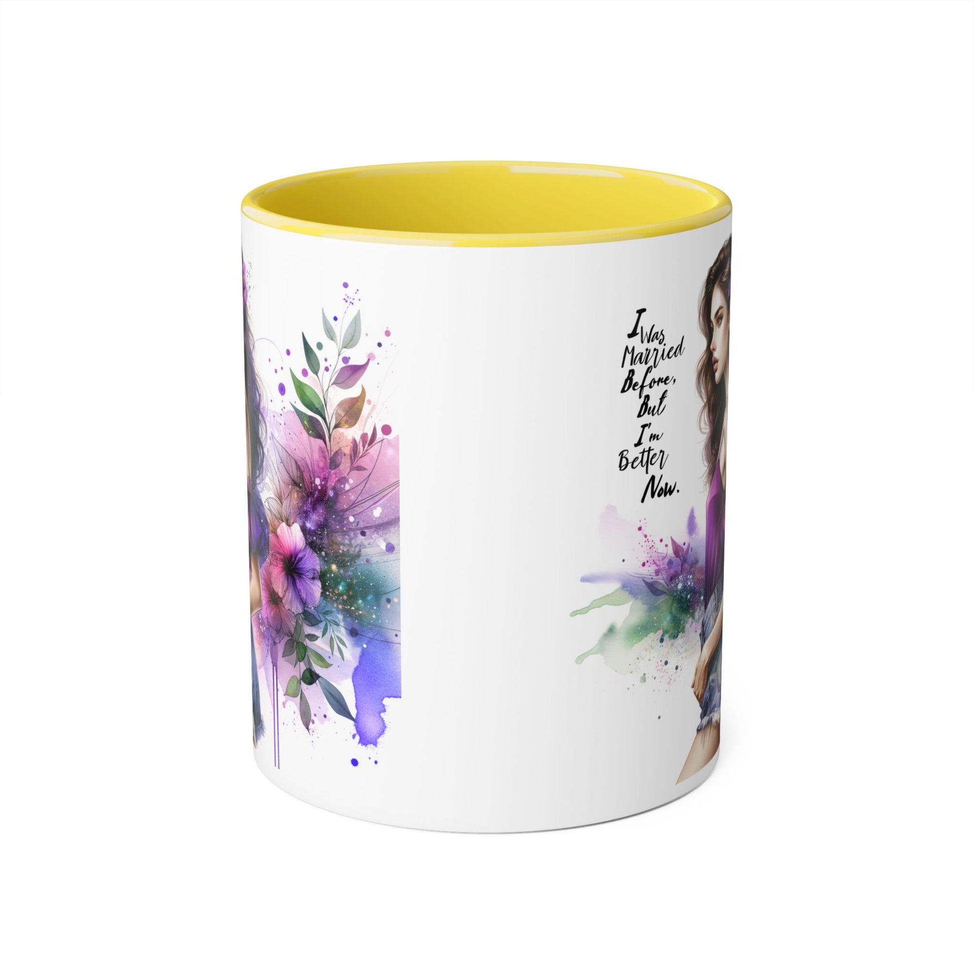 I Was Married Before But I'm Better Now Humoristic Empowered Woman Mug, Inspirational Coffee Cup, Motivational Gift for Her, Affirmation Mug, Unique Artwork Mug