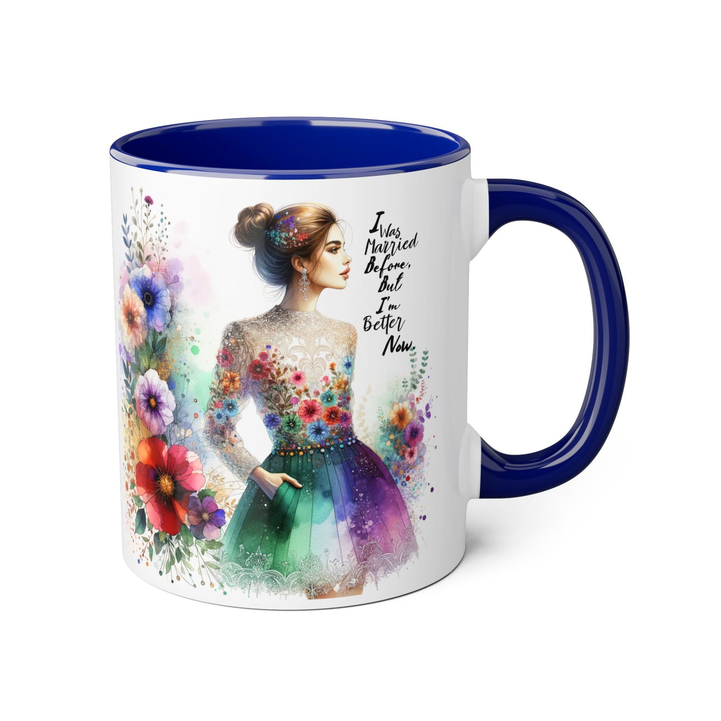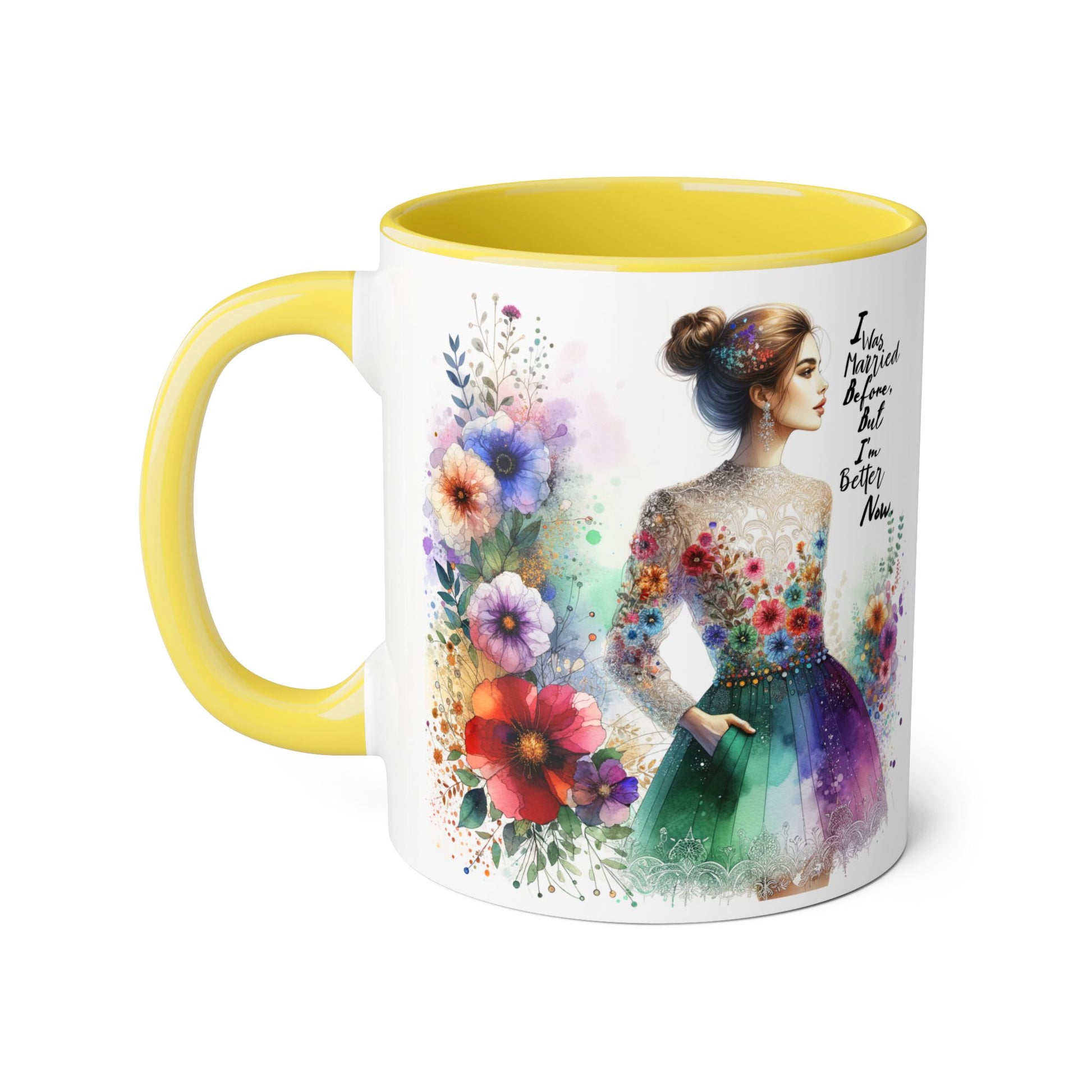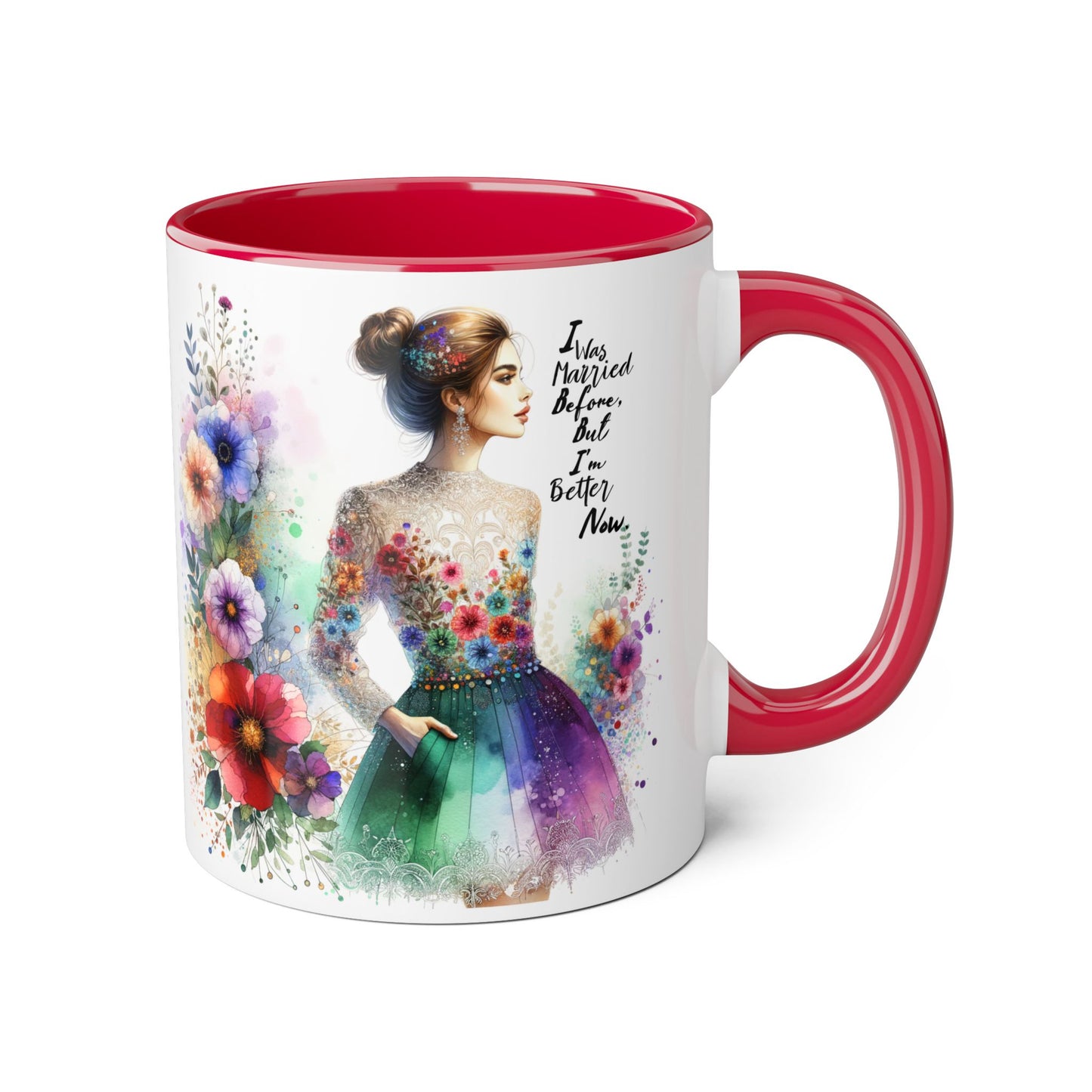 I Was Married Before But I'm Better Now Humoristic Floral Art Accent Mug - Inspiring Gift for Art Lovers, Coffee and Tea Drinkers, Home Decor, Mother's Day, Birthday