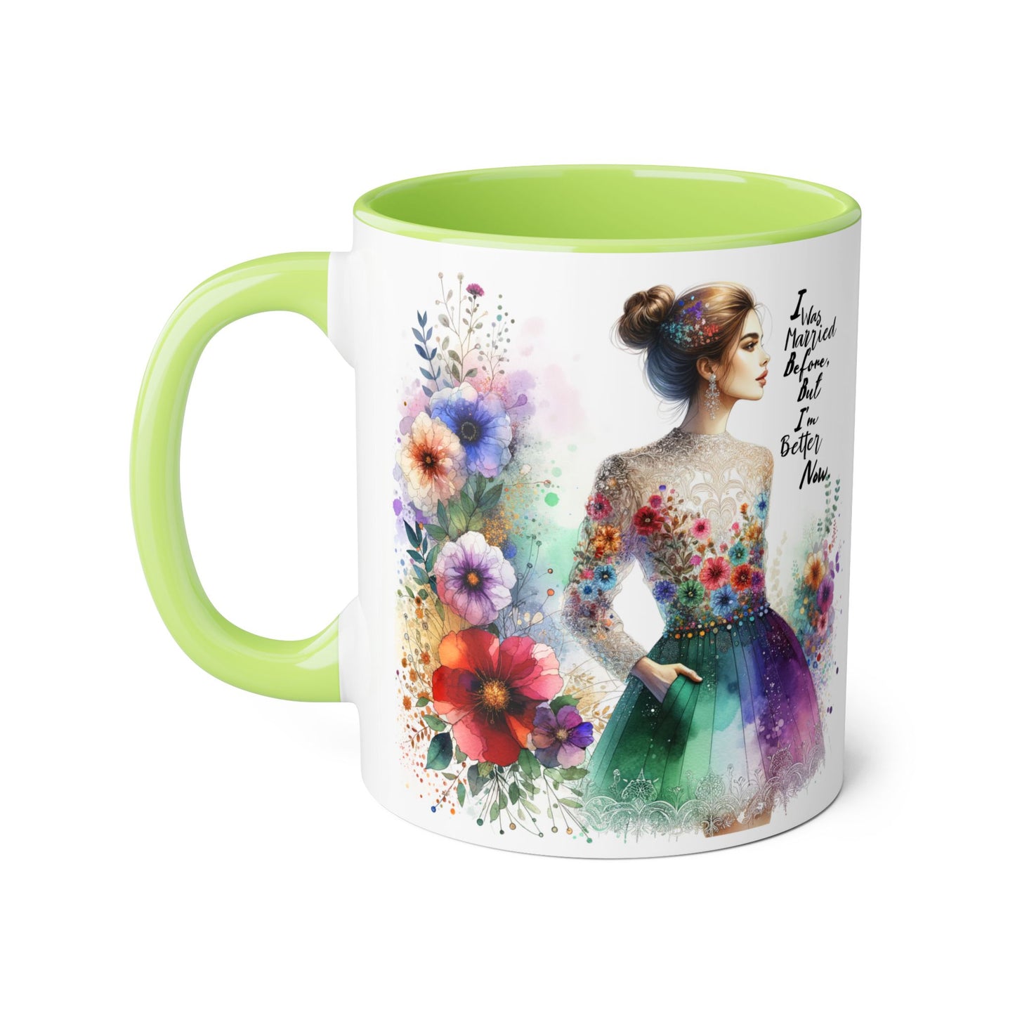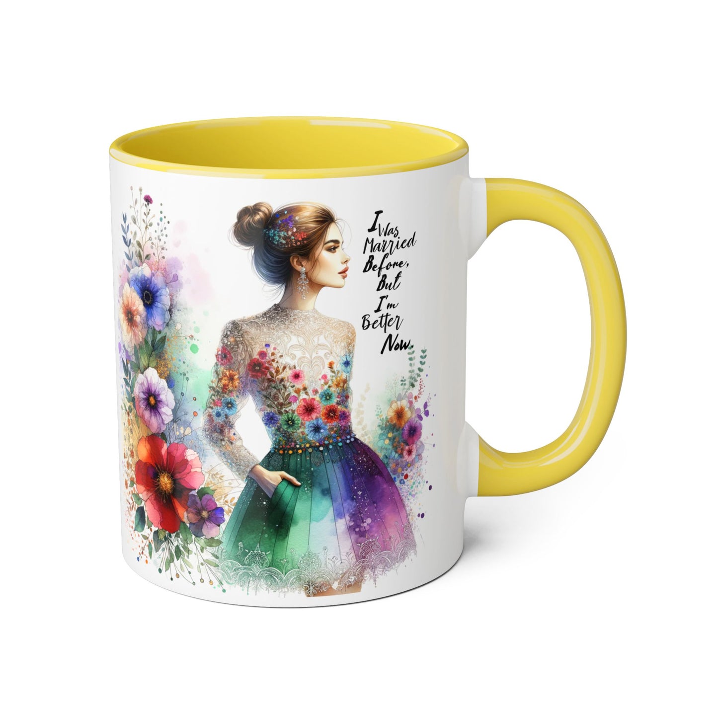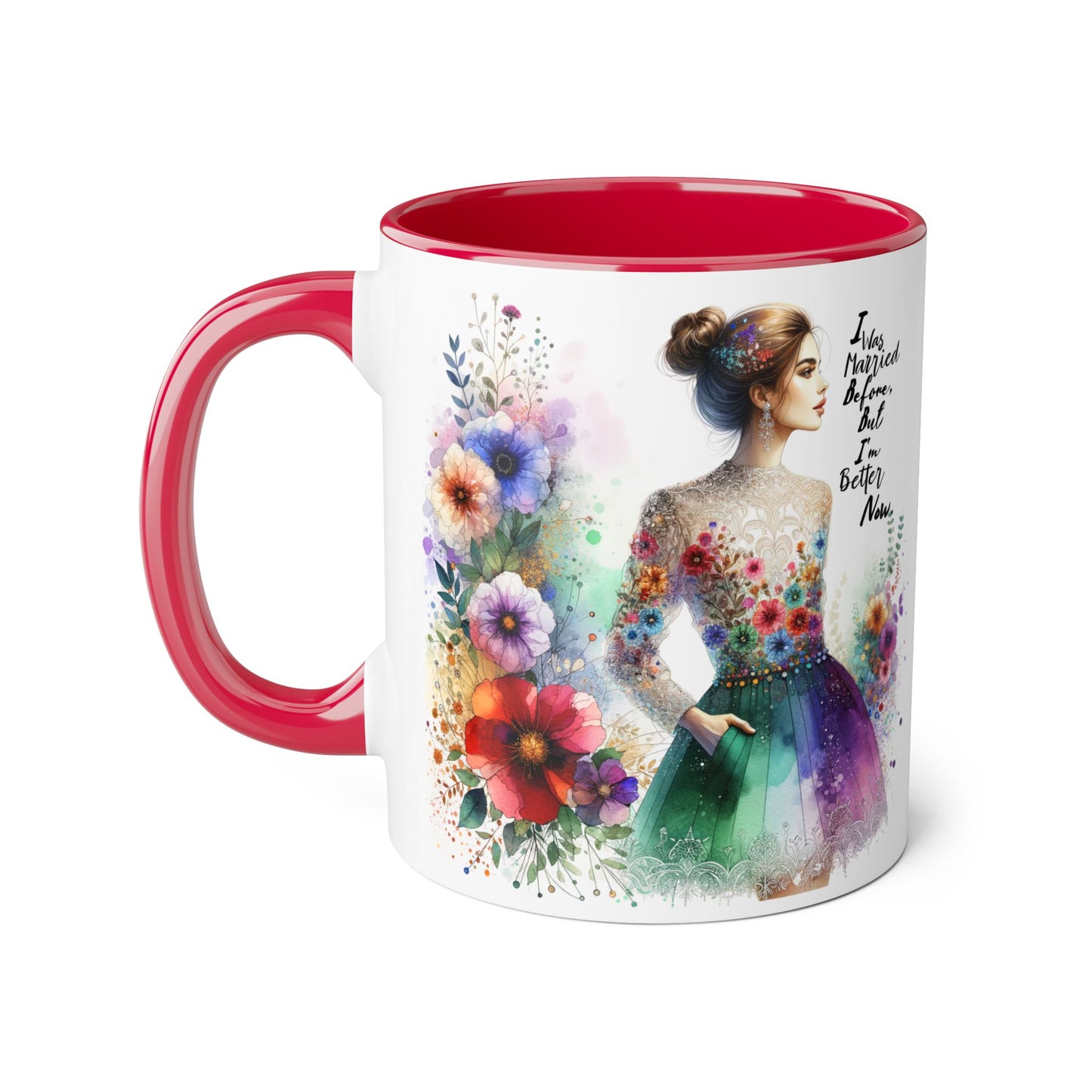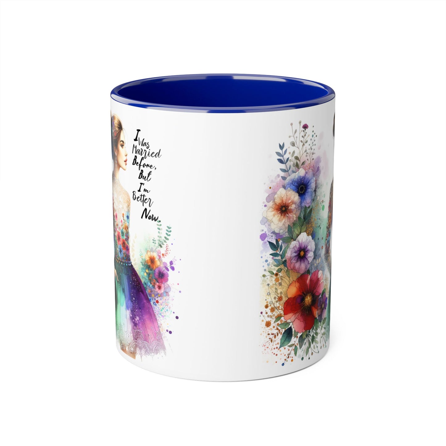 I Was Married Before But I'm Better Now Humoristic Floral Art Accent Mug - Inspiring Gift for Art Lovers, Coffee and Tea Drinkers, Home Decor, Mother's Day, Birthday