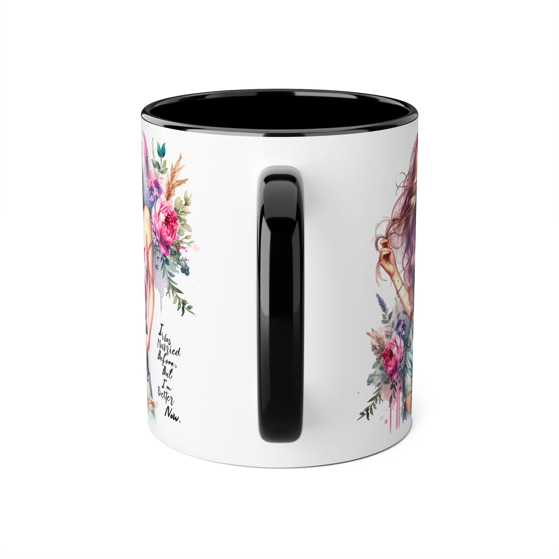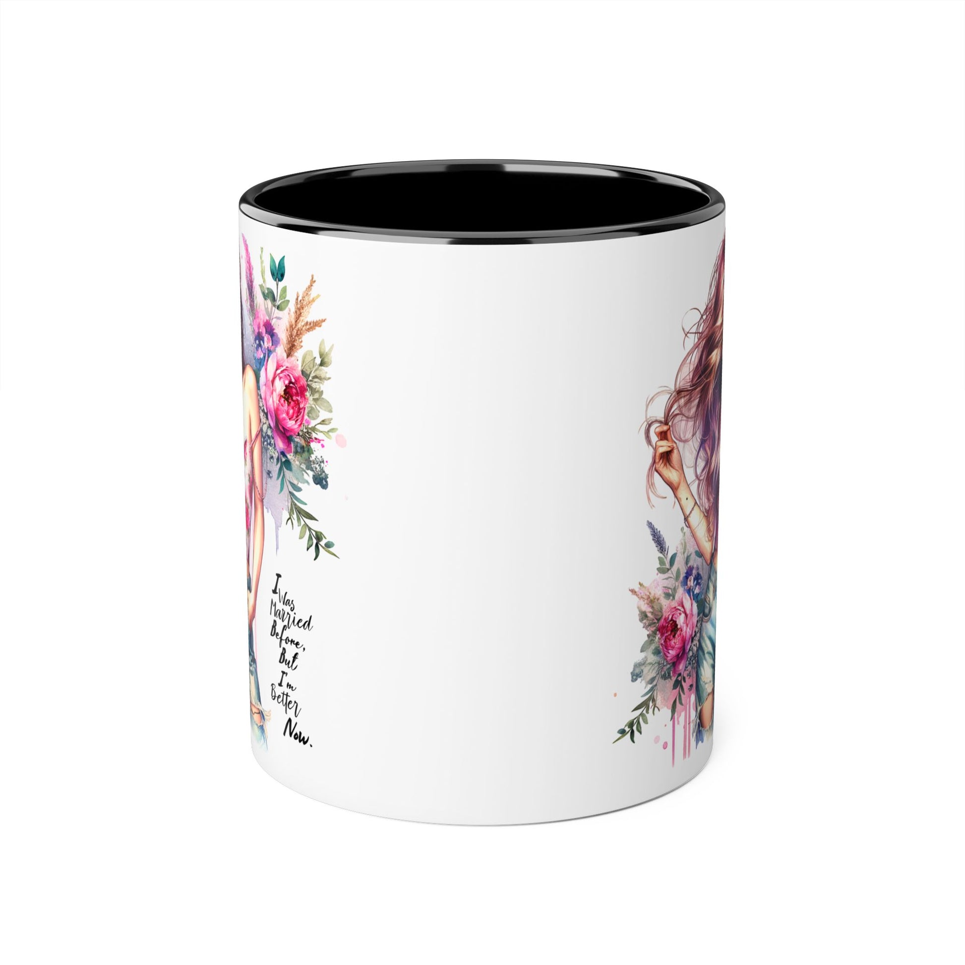 I Was Married Before But I'm Better Now Humoristic Floral Feminine Accent Mug | Inspirational Coffee Cup | Gift for Her, Birthday, Friendship, Self-Care Tea Mug, Home Decor