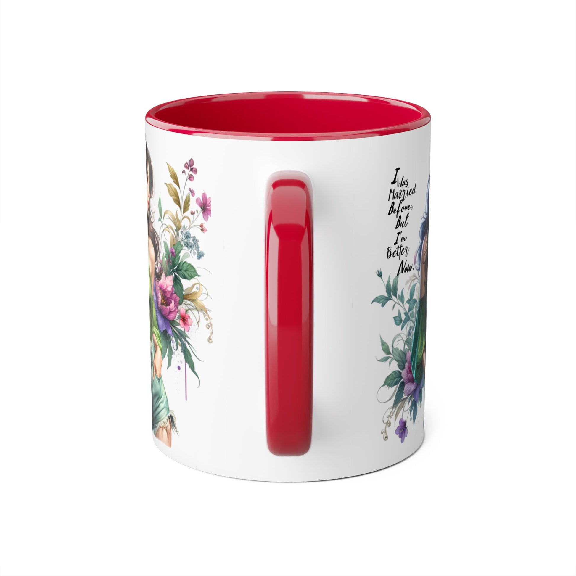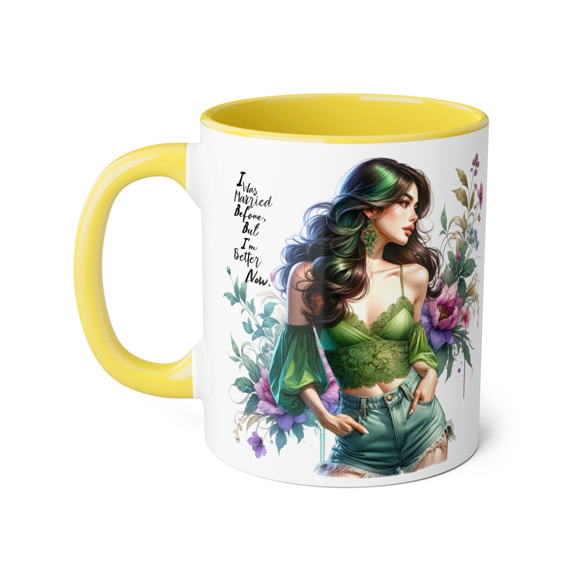 I Was Married Before But I'm Better Now Humoristic Floral Goddess Accent Mug, Inspirational Coffee Cup, Gift for Her, Boho Chic Drinkware, Unique Art Mugs, Home Decor
