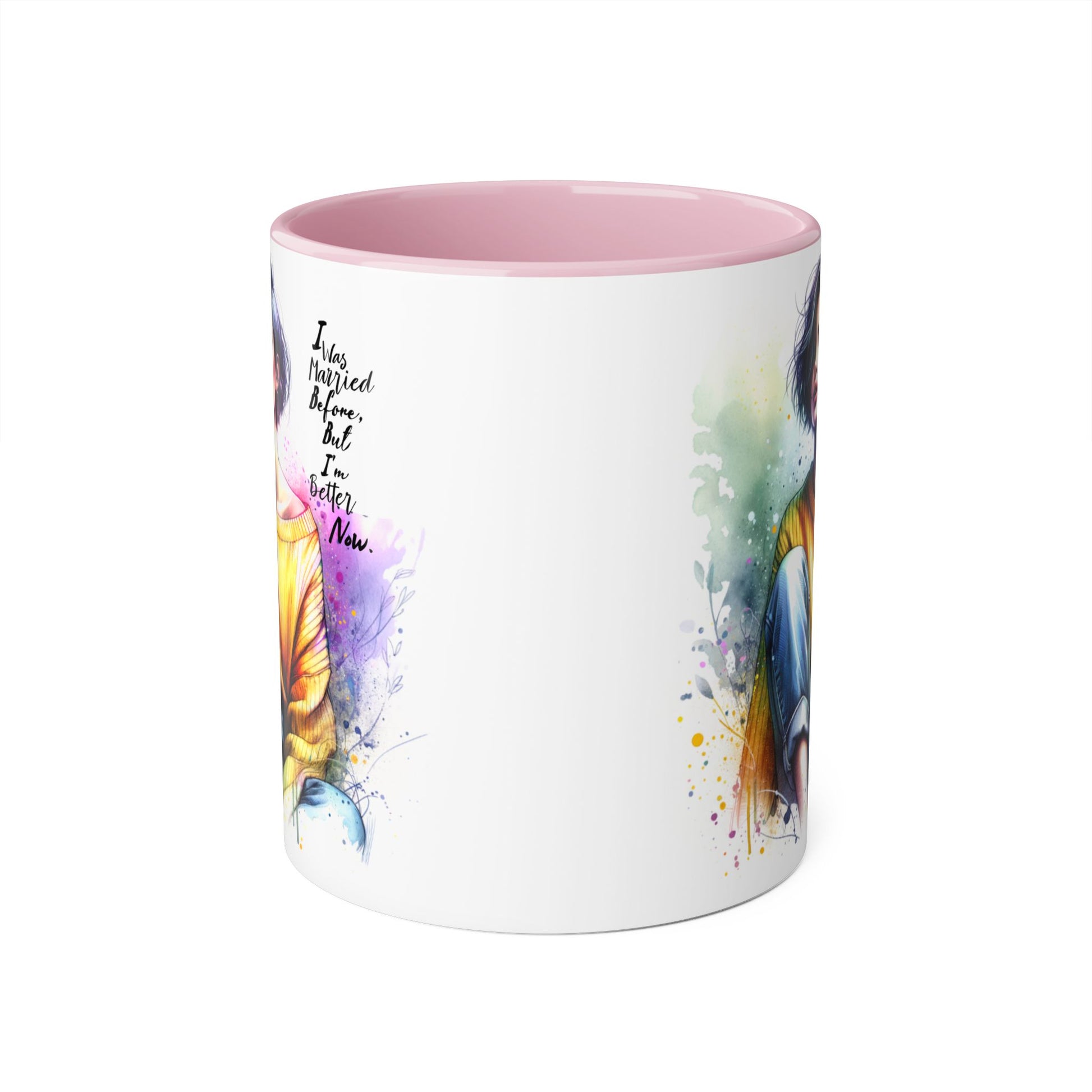 I Was Married Before But I'm Better Now Humoristic Inspirational Art Mug - Custom Accent Coffee Cup for Motivation, Gift for Friends, Positive Vibes, Home Decor, Unique Art