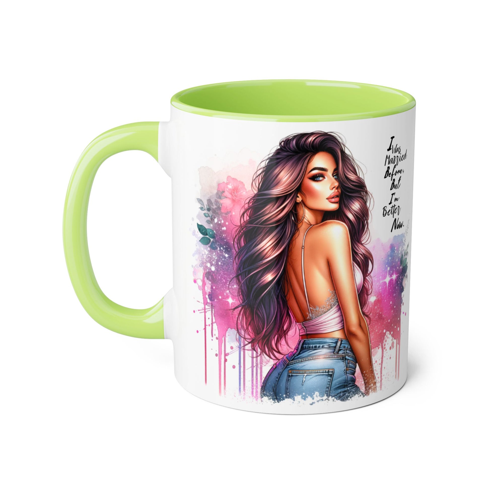 I Was Married Before But I'm Better Now Humoristic Vibrant Quote Mug for Self-Love, Inspirational Coffee Cup, Artistic Accent Mug, Unique Gift for Her, Affirmation Drinkware