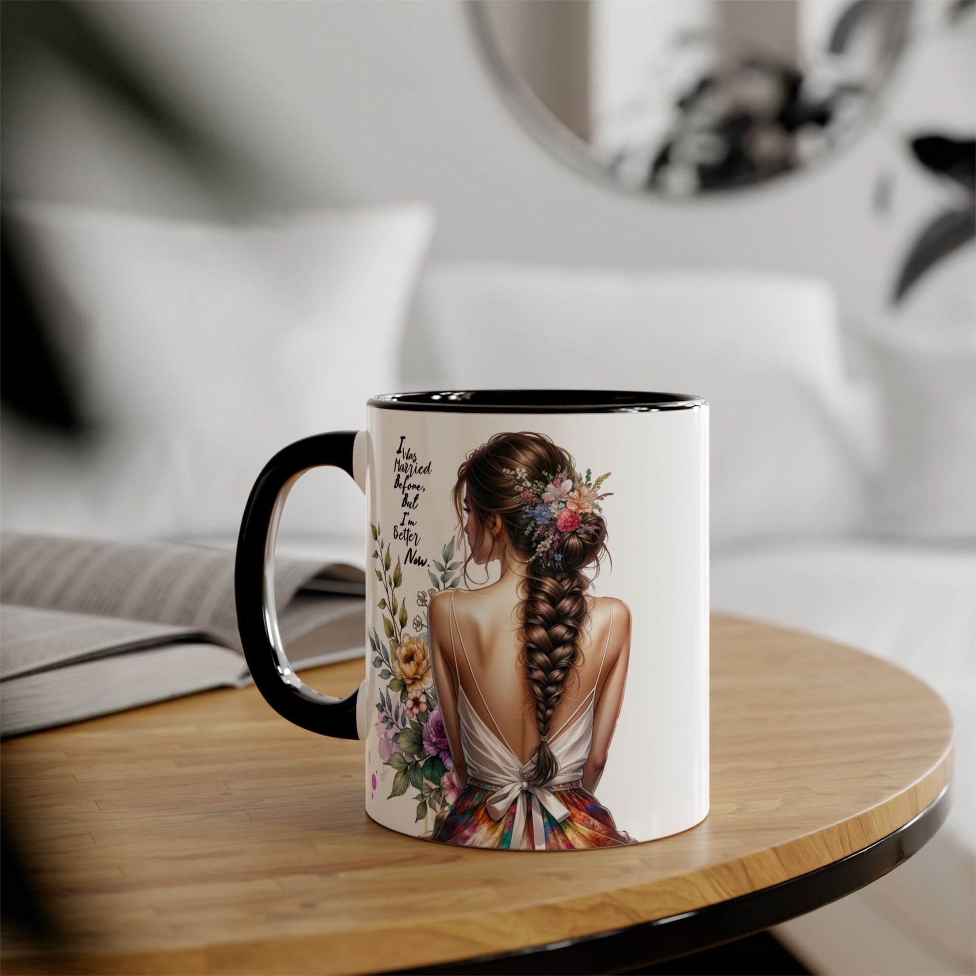 I Was Married Before But I'm Better Now Inspirational Floral Accent Mug - Perfect for Gifts, Home Decor, Coffee Lovers, Motivational Quotes, Self-Improvement