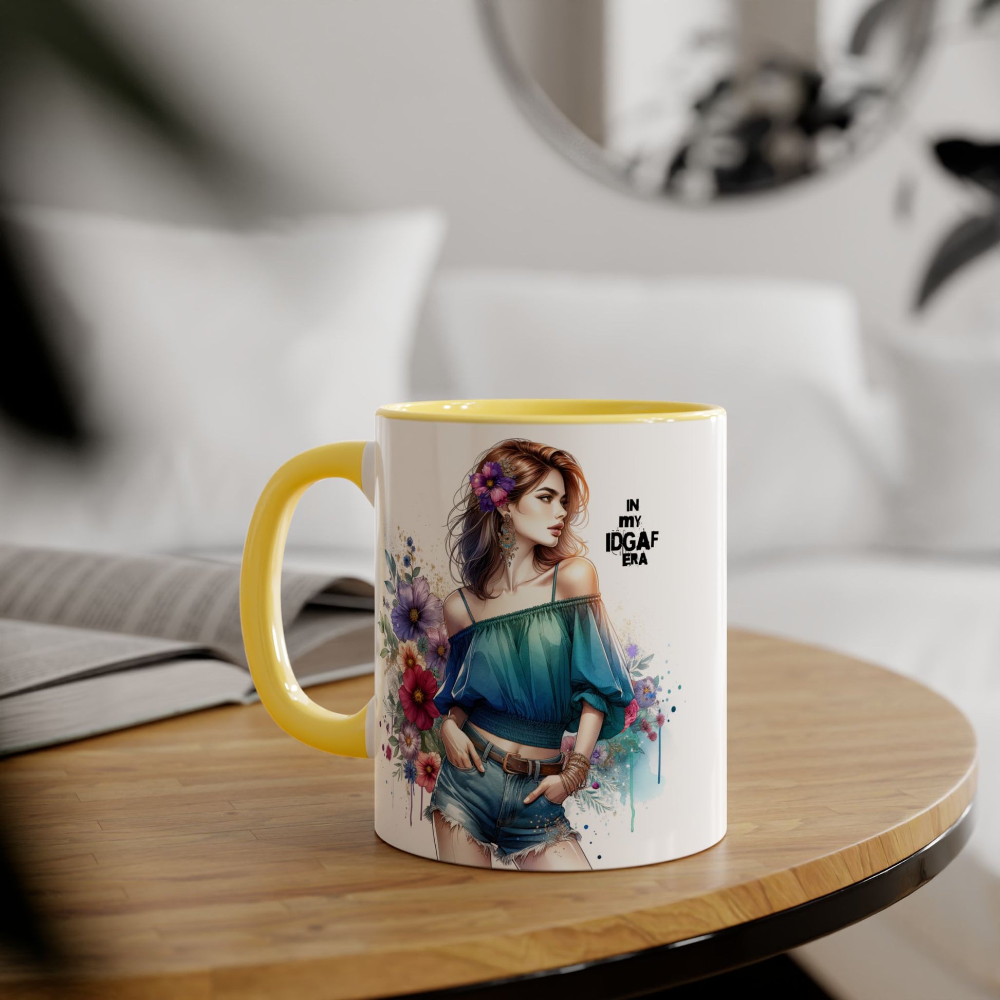 IDGAF Floral Accent Mug - Stylish Coffee Mug for Sassy Souls, Gift for Friends, Unique Home Decor, Perfect for Birthdays, Fun Collectible