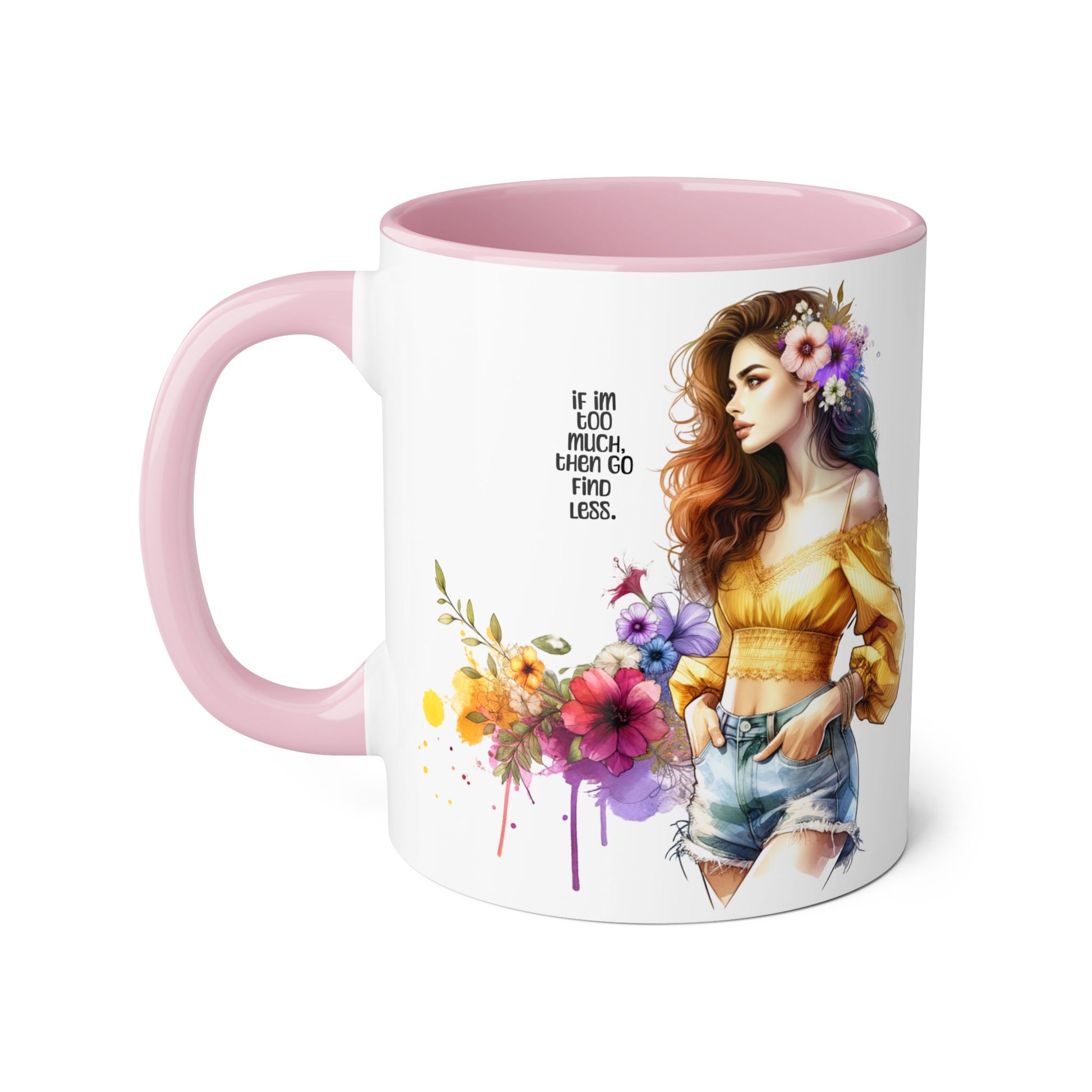 If I'm Too Much, Then Go Find Less Bohemian Accent Mugs, Inspirational Coffee Cup, Floral Art Mug, Unique Gift for Her, Cute Kitchen Decor, Perfect for Birthdays, Self-Care