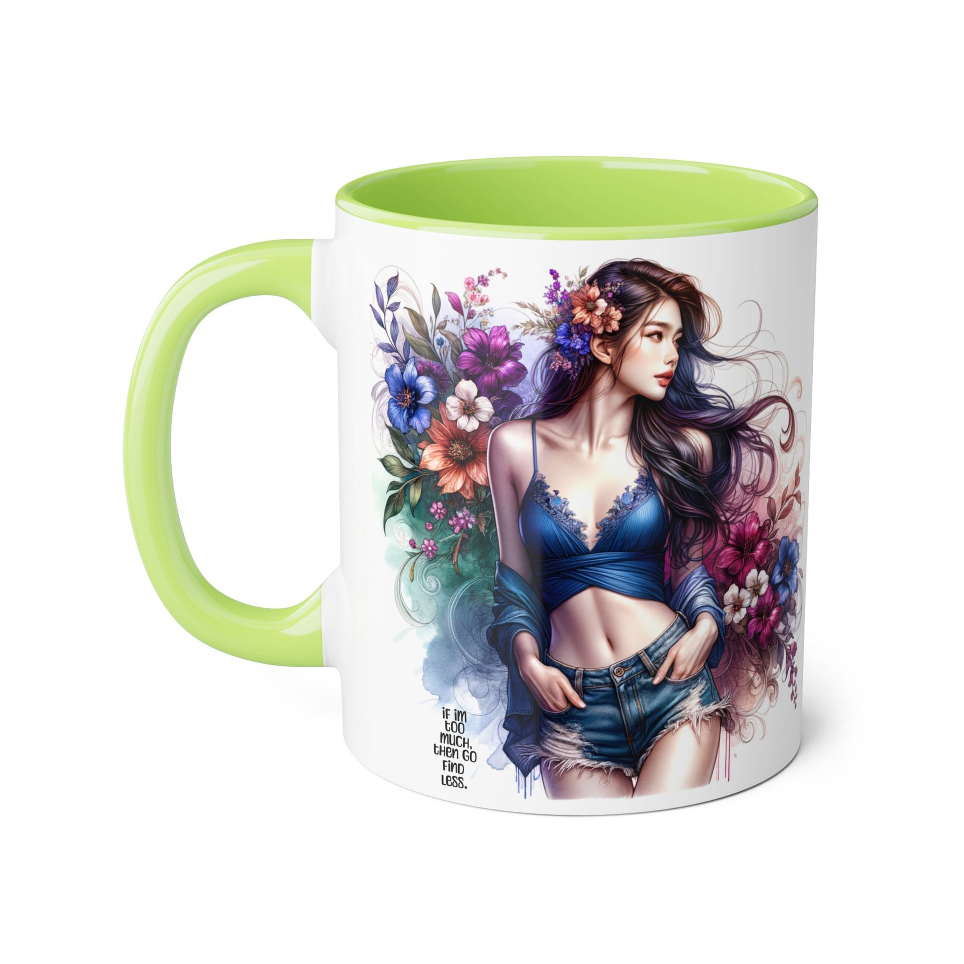 If I'm Too Much, Then Go Find Less Floral Art Accent Mugs, 11oz - Perfect Gift for Flower Lovers, Coffee Lovers, Home Decor, Birthday Gifts, Art Enthusiasts
