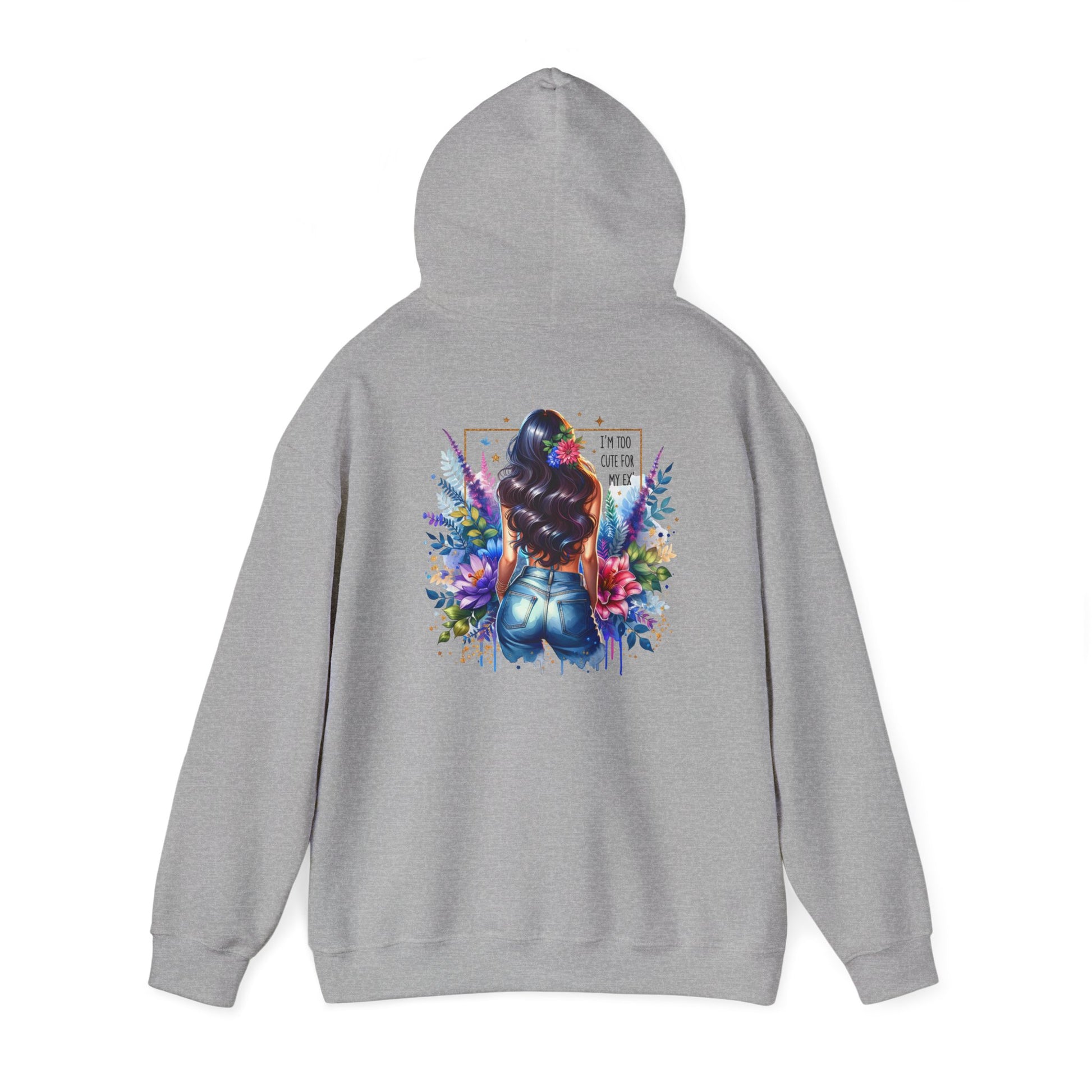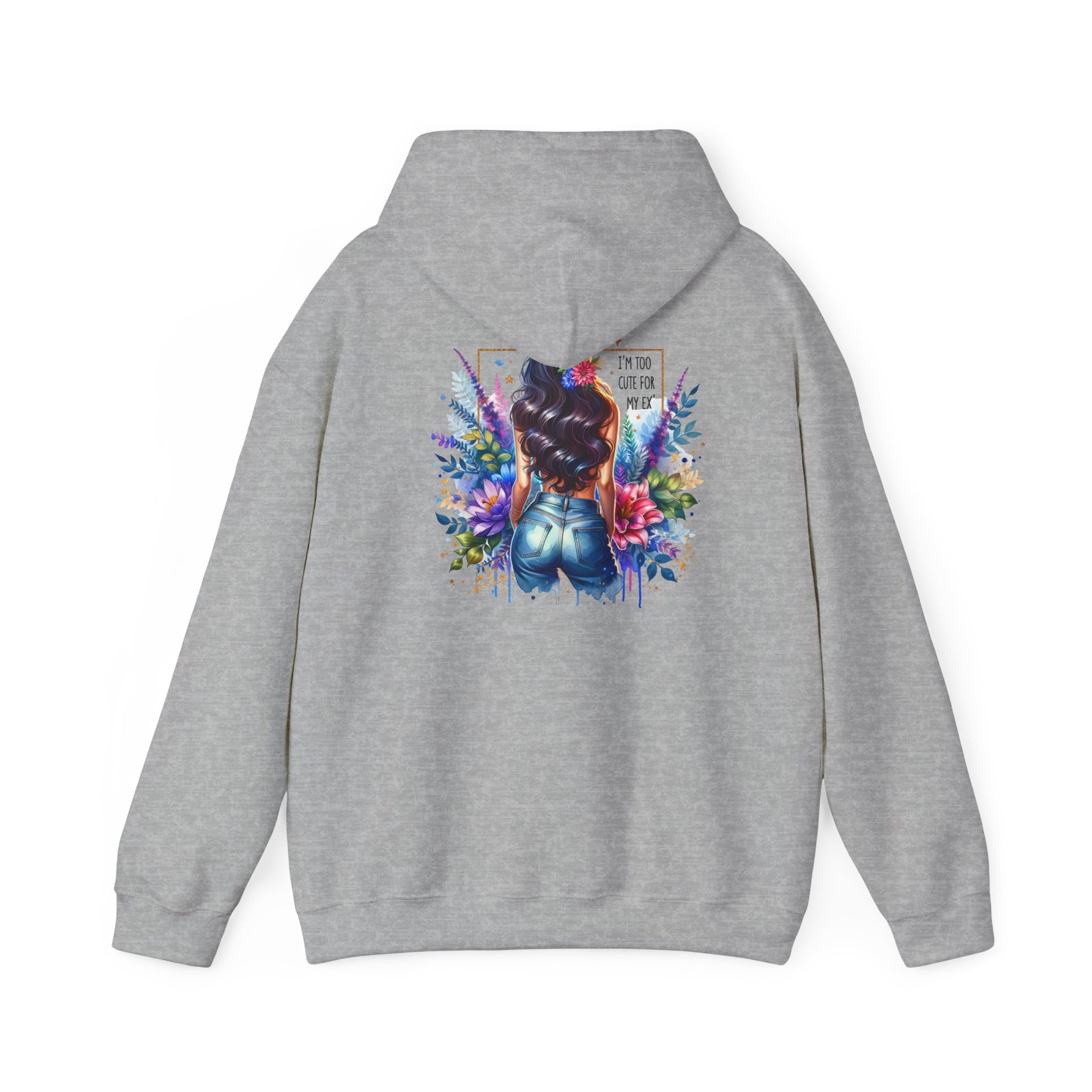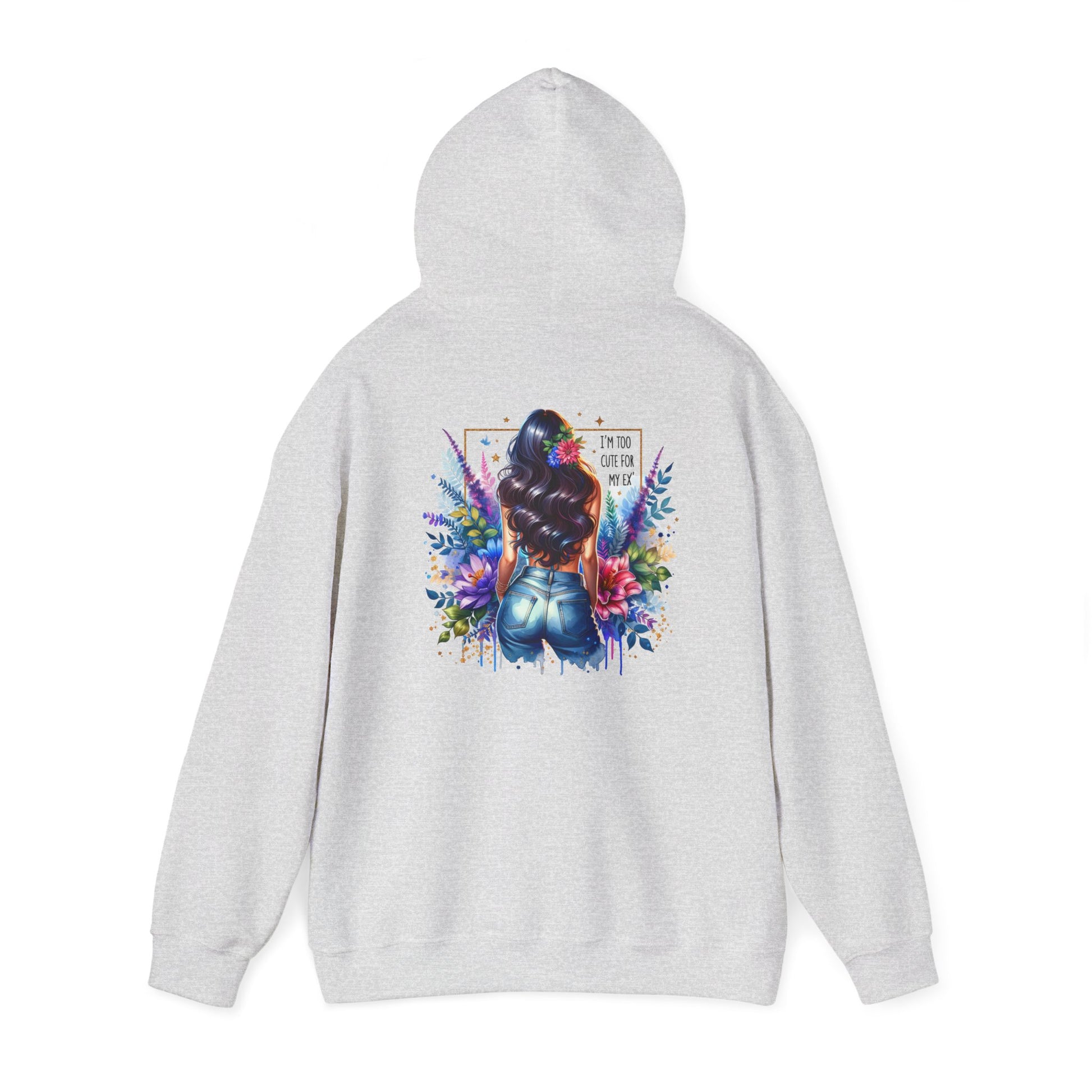 I'm Too Cute For My Ex Vibrant Art Hooded Sweatshirt - Cozy Unisex Sweatshirt, Floral Design, Gift for Her, Fashionable Layer, Casual Wear, Stylish Comfort