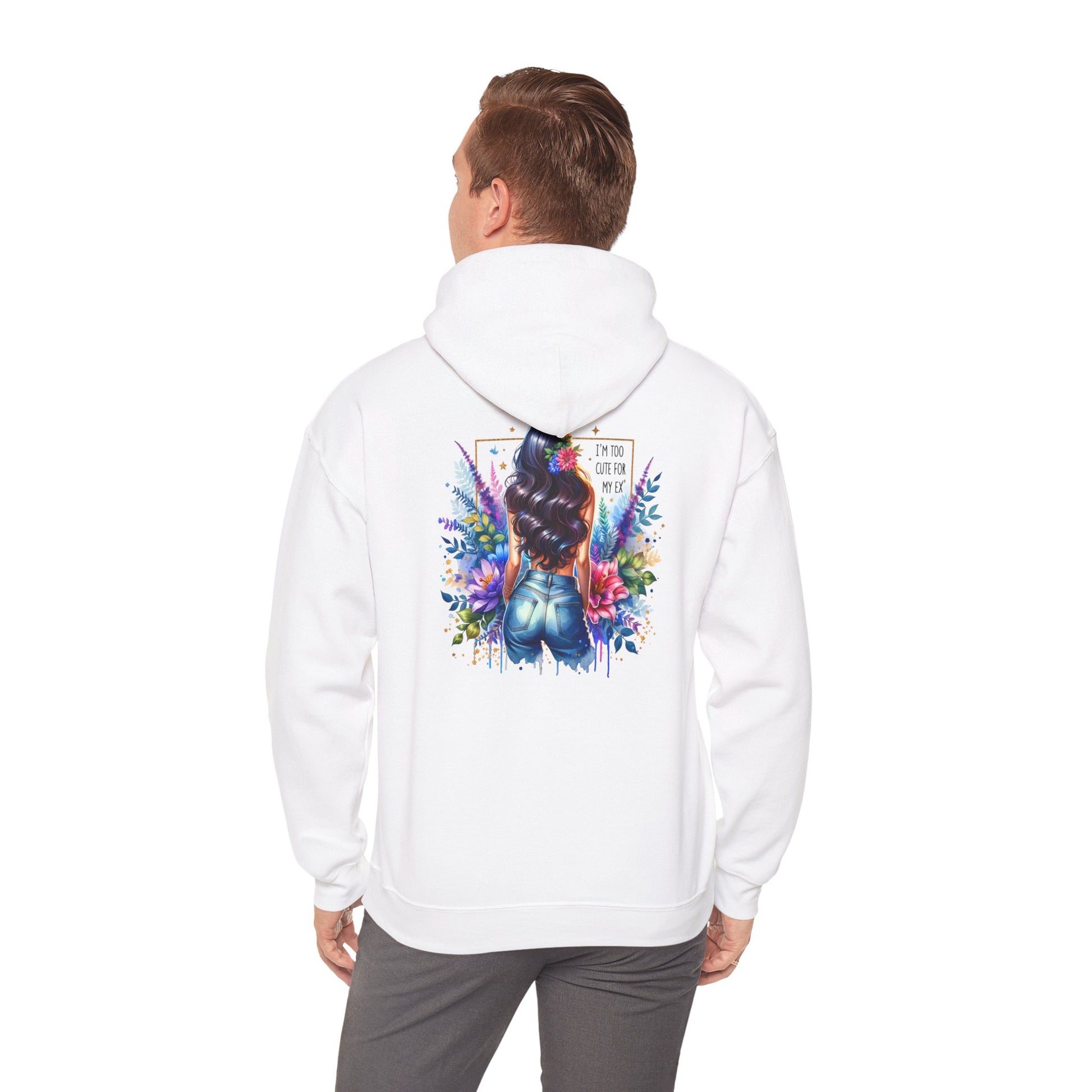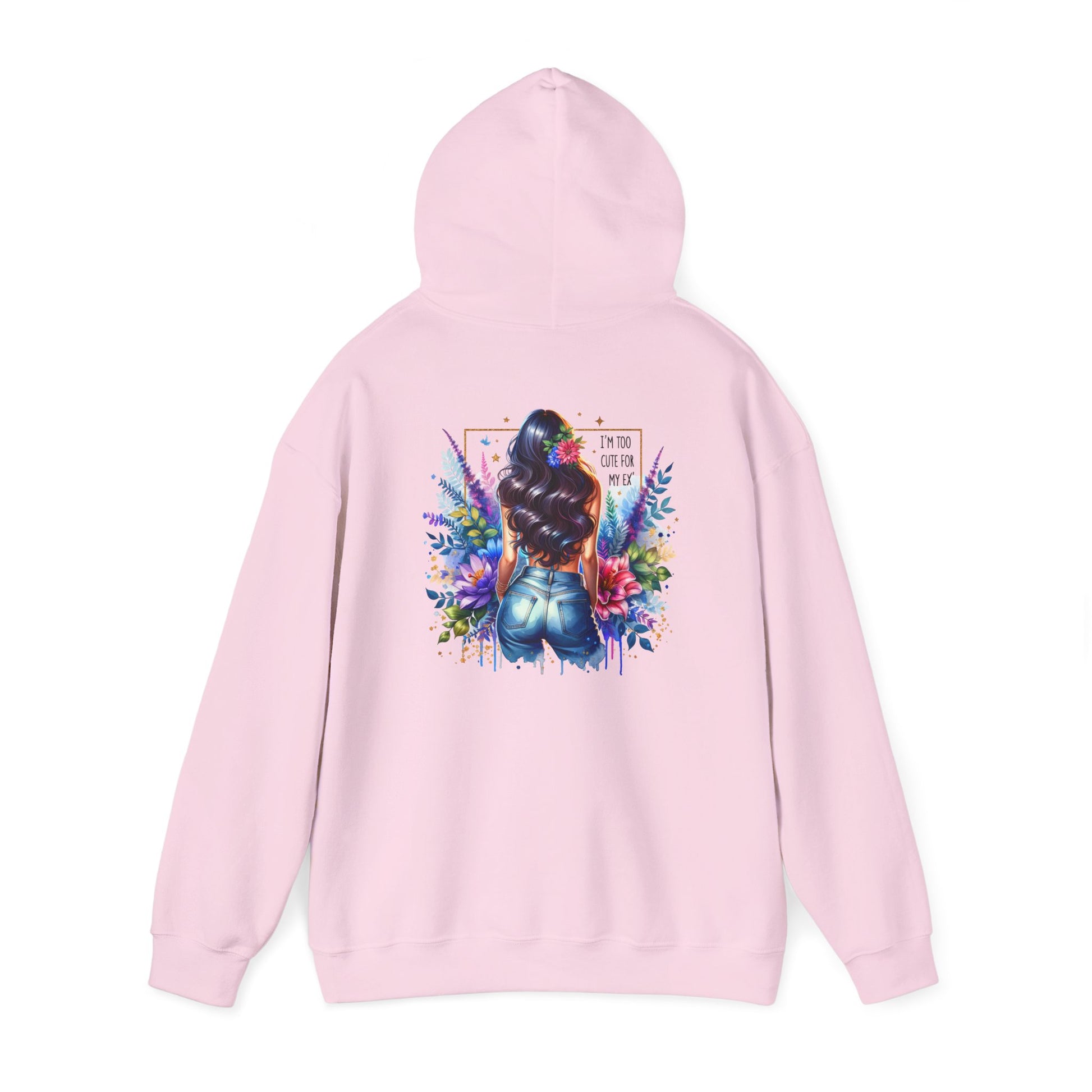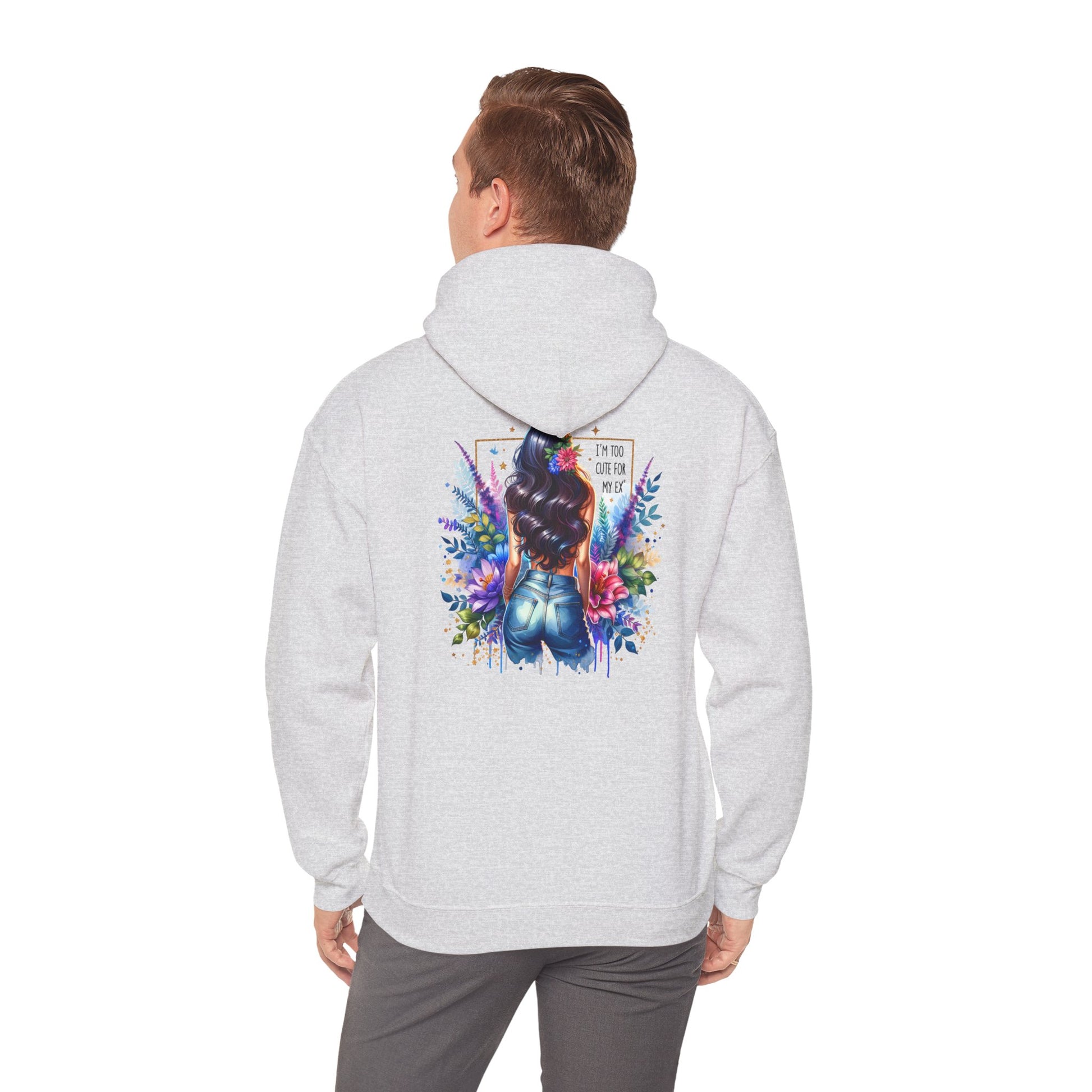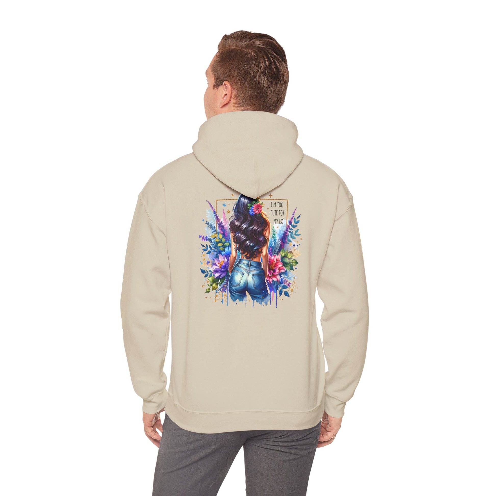 I'm Too Cute For My Ex Vibrant Art Hooded Sweatshirt - Cozy Unisex Sweatshirt, Floral Design, Gift for Her, Fashionable Layer, Casual Wear, Stylish Comfort
