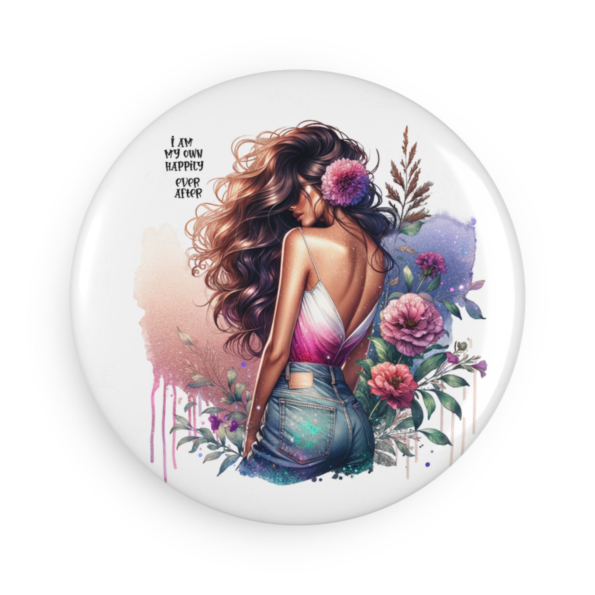 Inspirational Round Button Magnet - 'I Am My Own Happily Ever After '