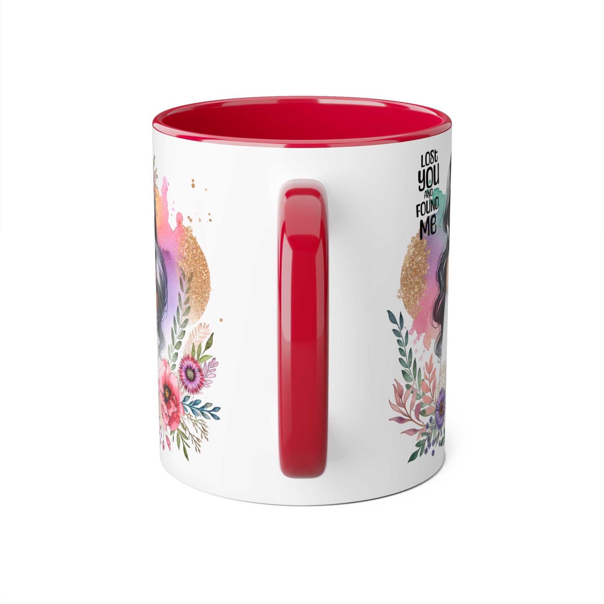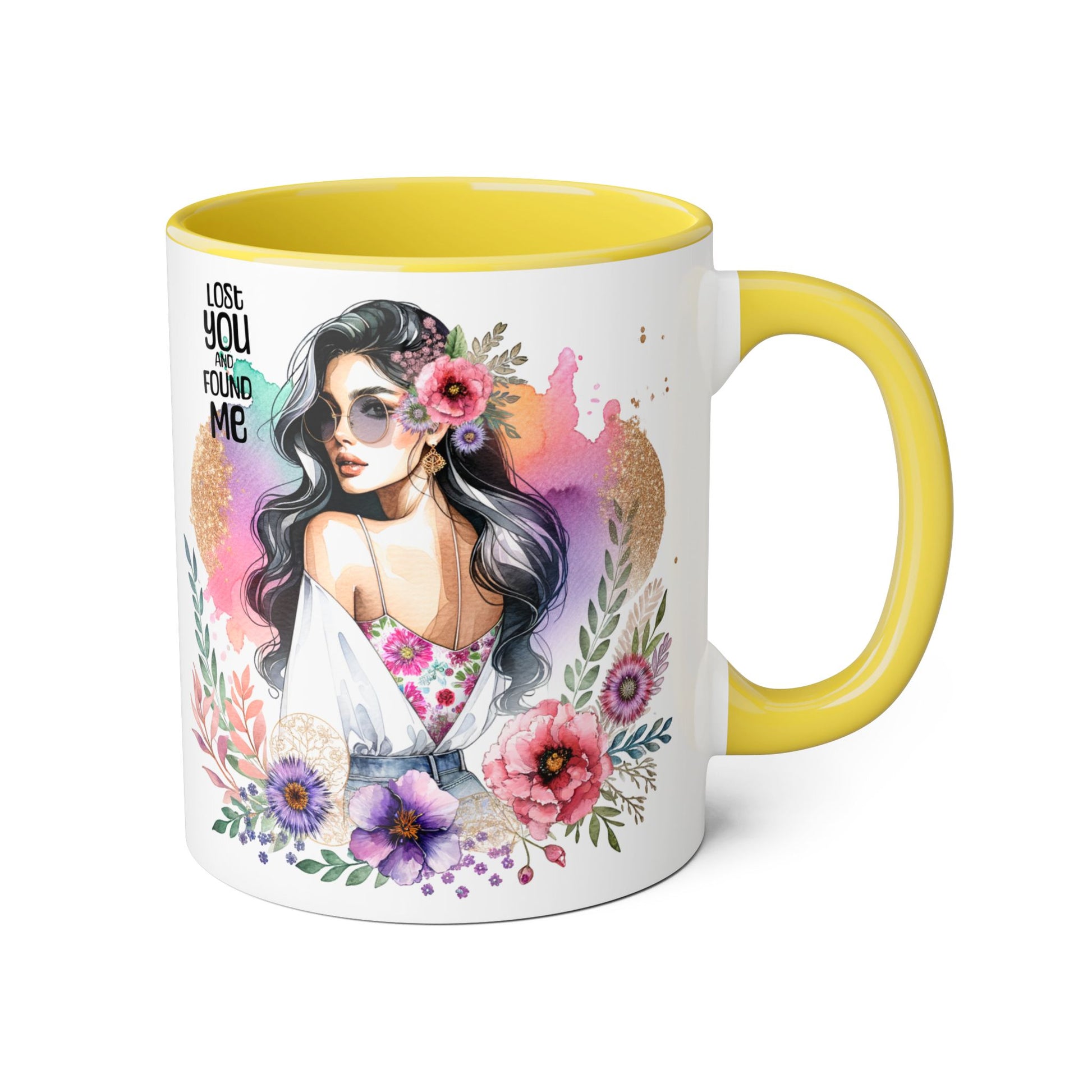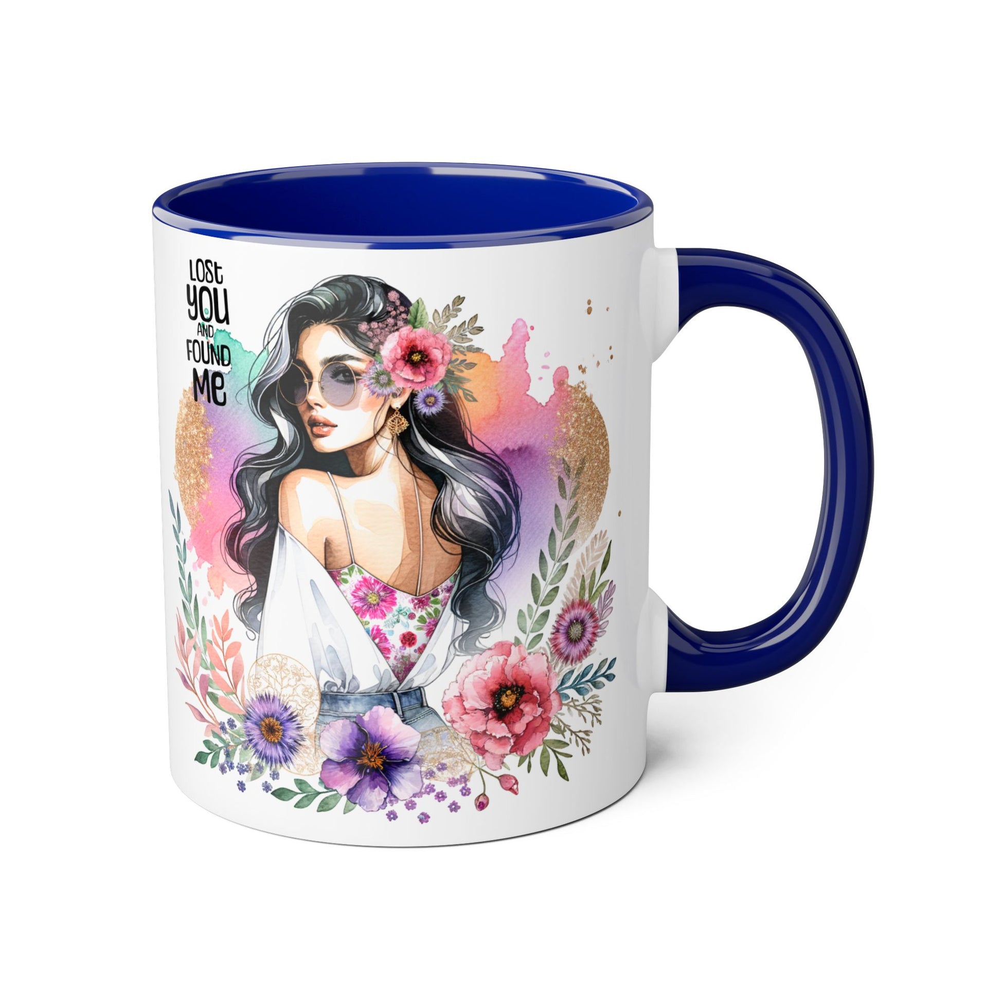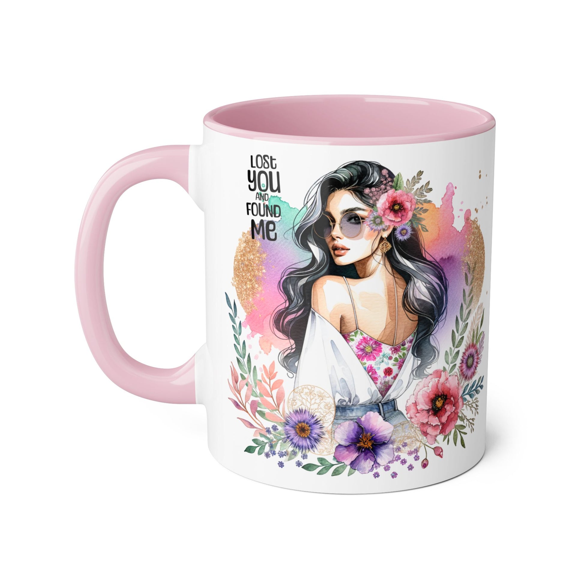 Lost You and Found Me Bohemian Floral Accent Mug, Inspirational Coffee Cup, Gift for Her, Self-Care Essentials, Unique Home Decor, Personalized Drinkware